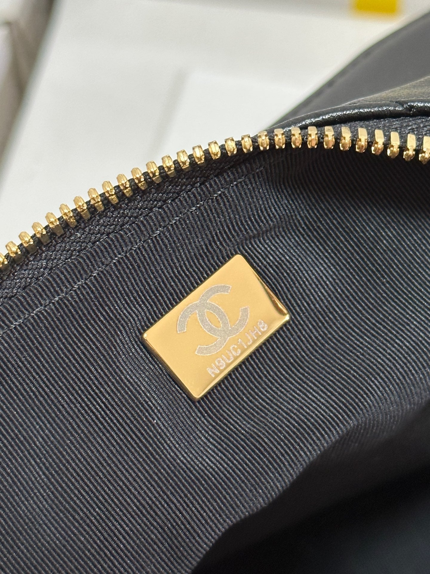 QUILTED HOBO CARGO BAG 31 IN BLACK CALFSKIN GOLD CHAIN