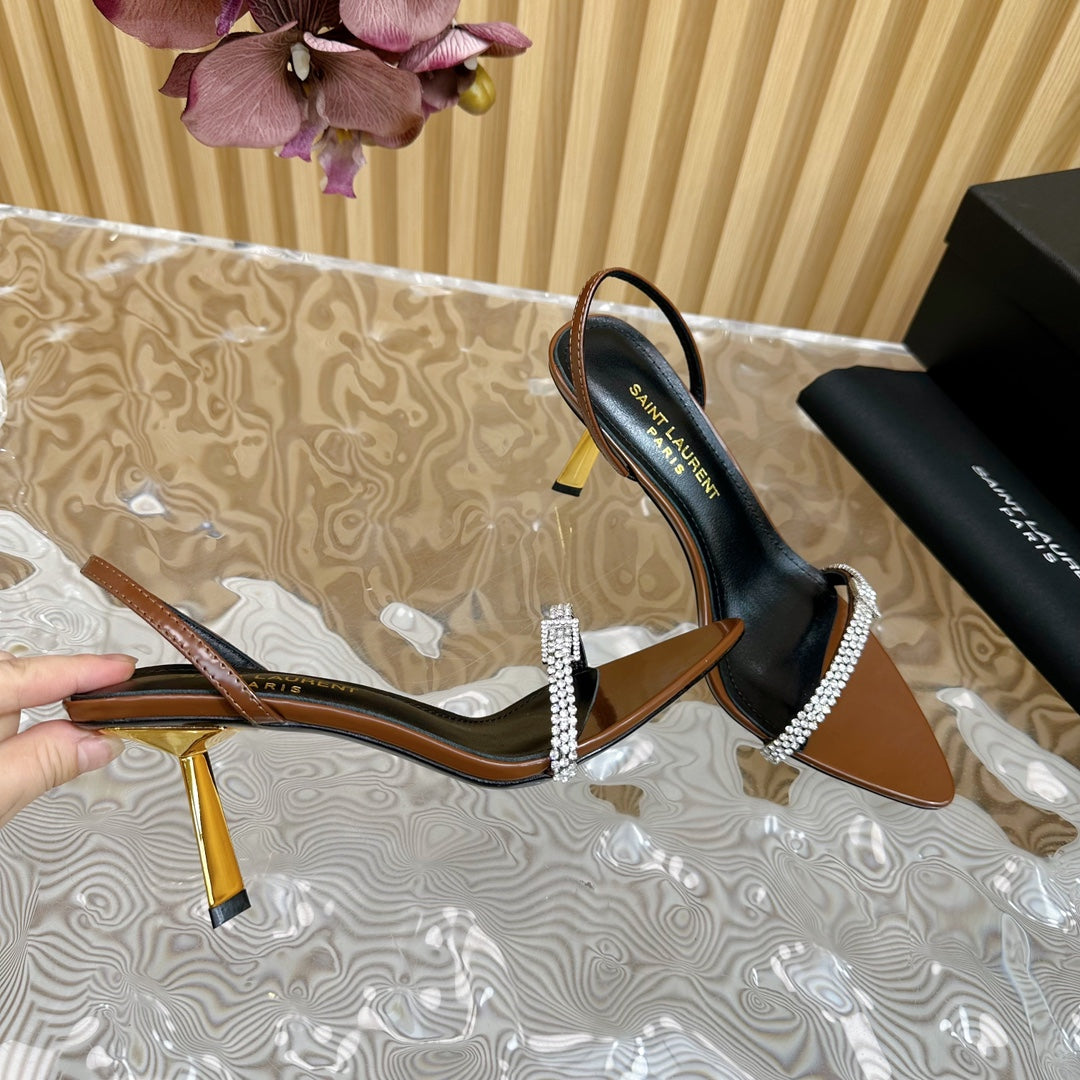 RENDEZ-VOUS SANDALS 70 IN SATIN CREPE BROWN LEATHER