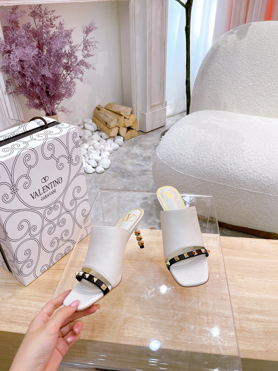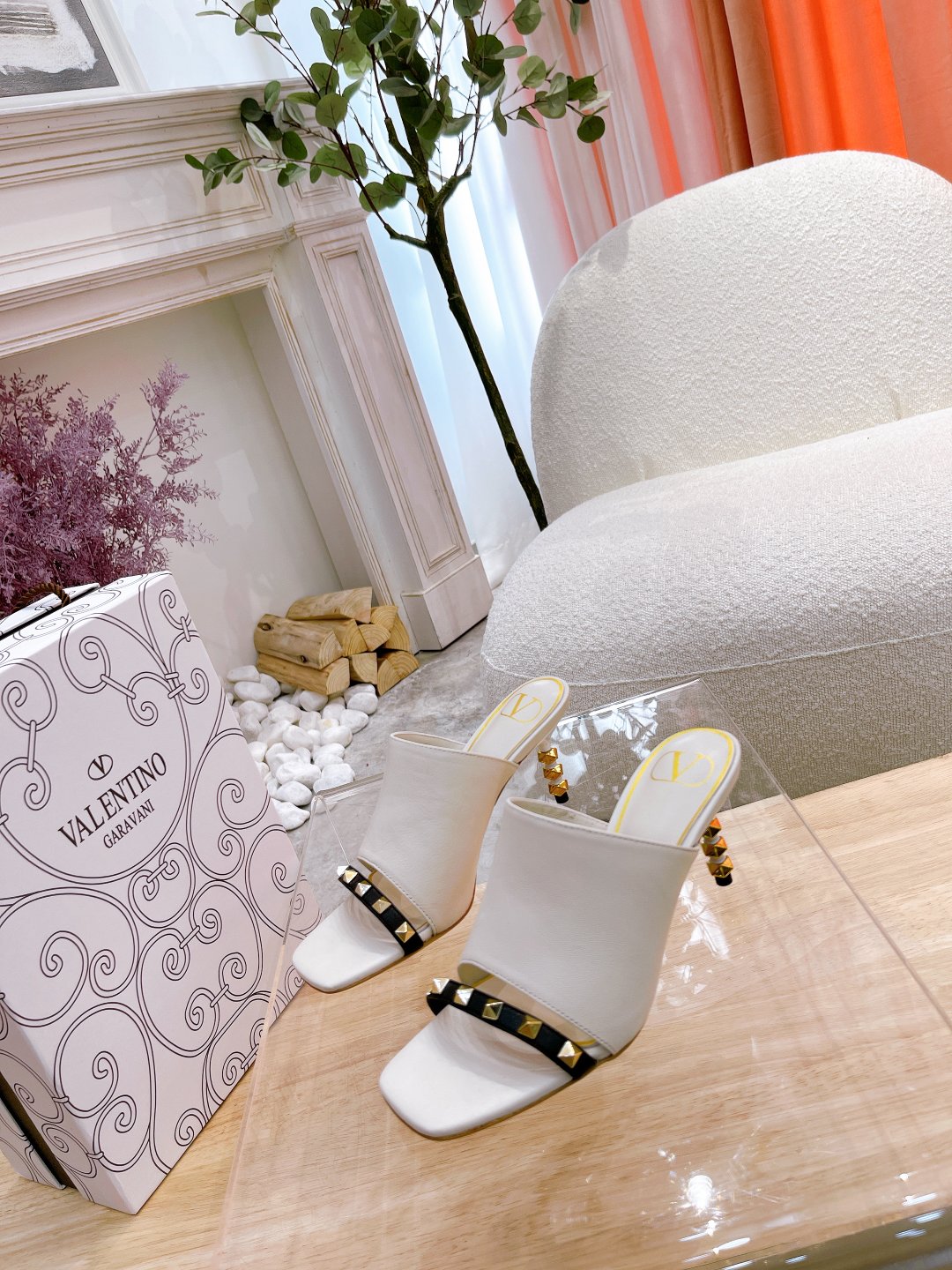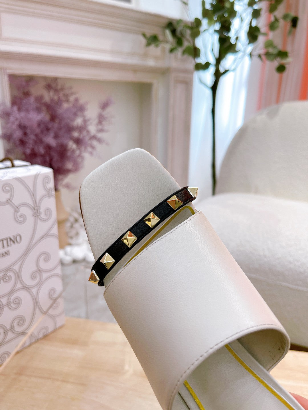 ROCKSTUD TOWER-HEEL MULES IN WHITE CALFSKIN 7 CM