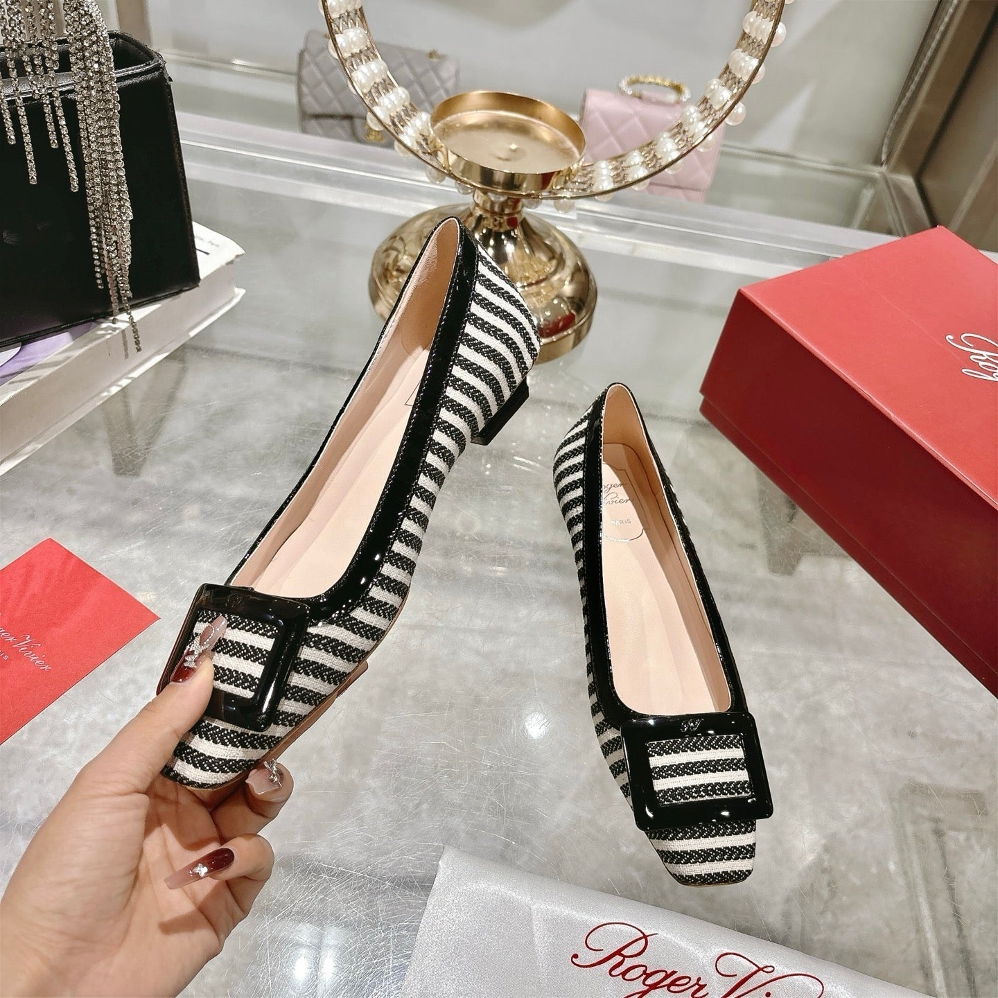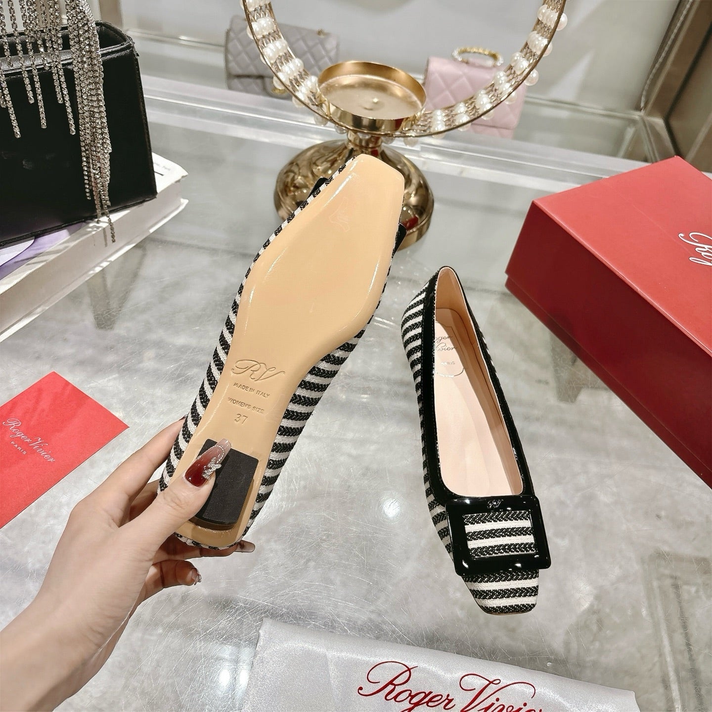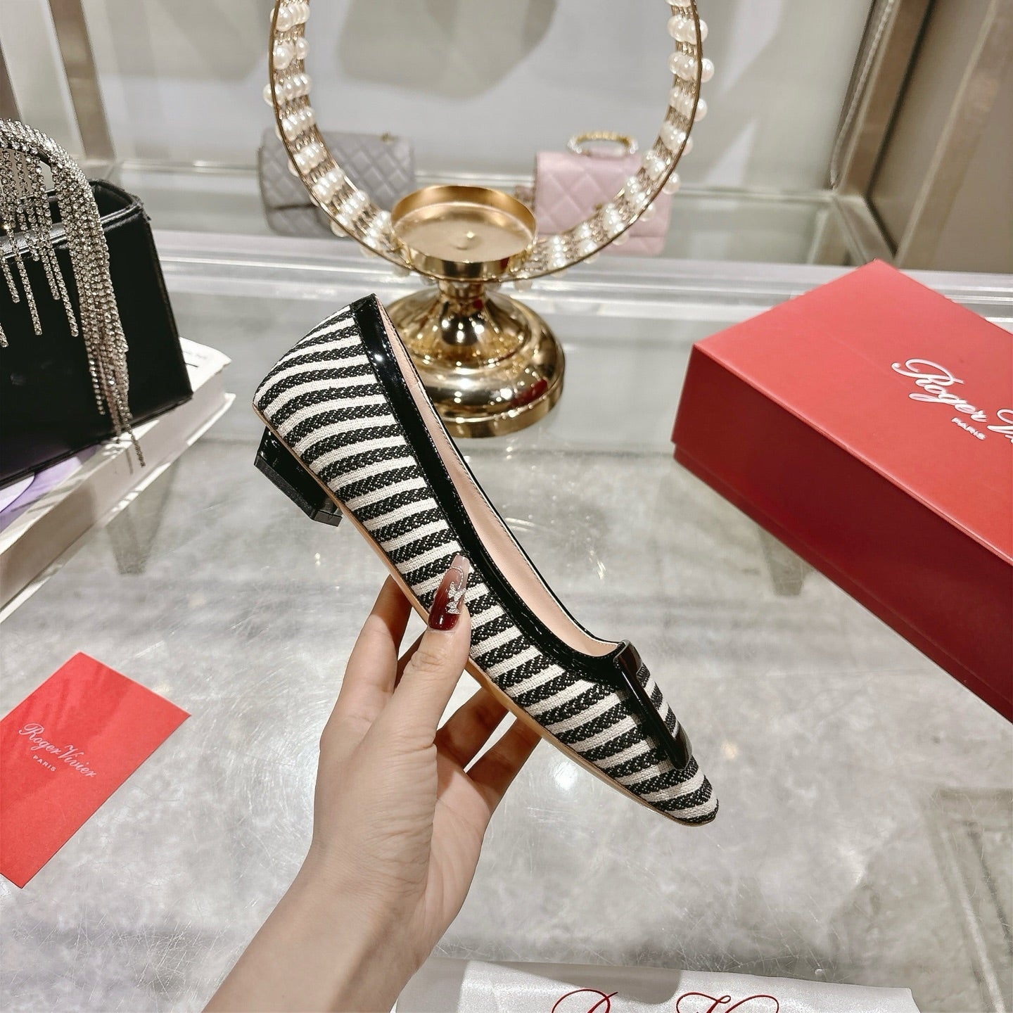 ROGER VIVIER 25S TROMPETTE BALLERINAS 25MM IN BLACK PLAID PATTERN CANVAS