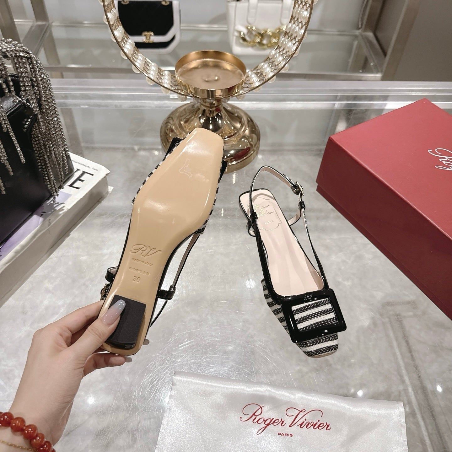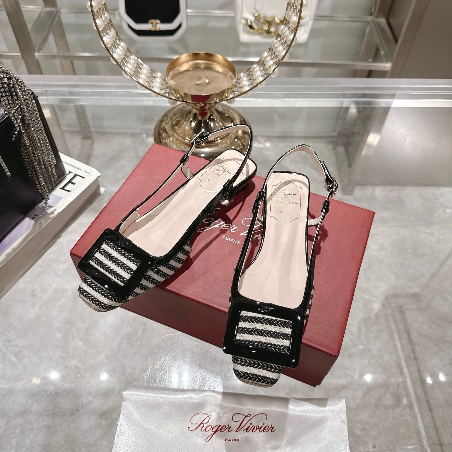 ROGER VIVIER 25S VIVIER SLINGBACK 25MM IN BLACK PLAID PATTERN CANVAS