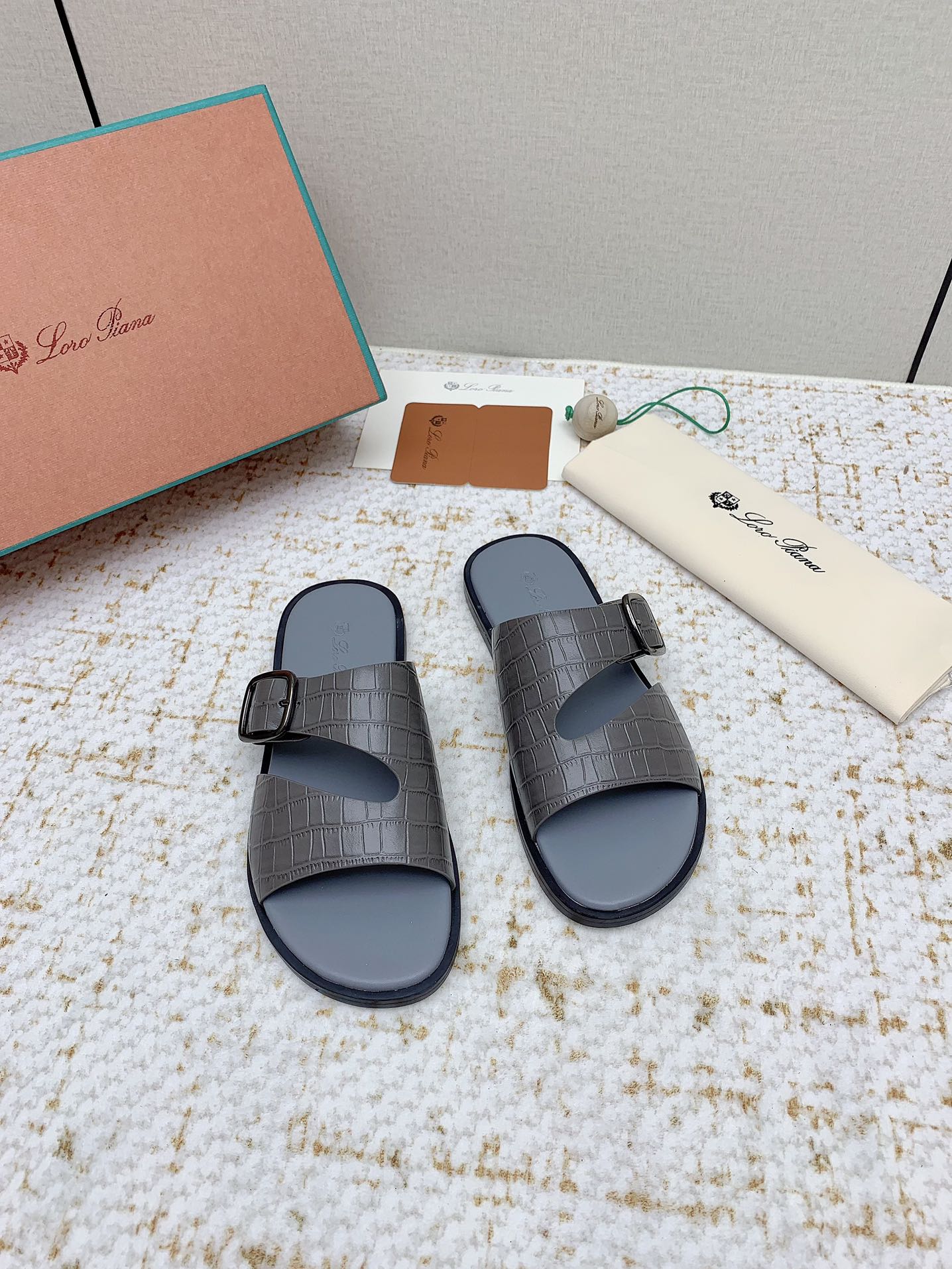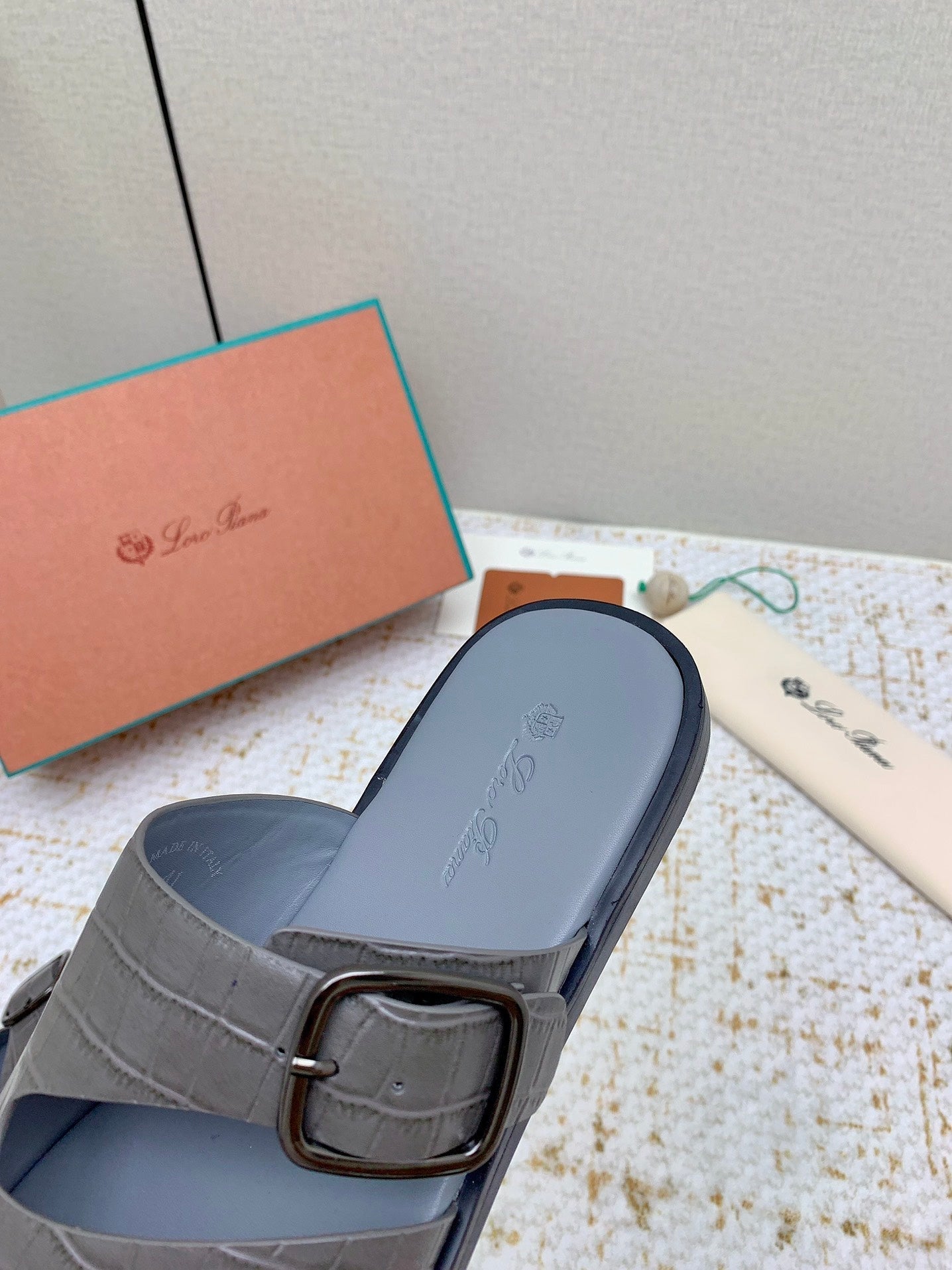 SANDALS IN DARK GRAY SNAKE EMBOSSED CALFSKIN