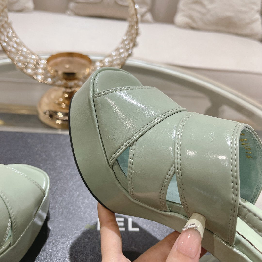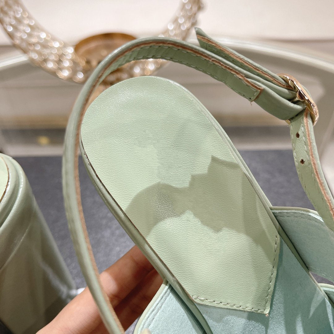 sandals light turquoise patent crumpled lambskin