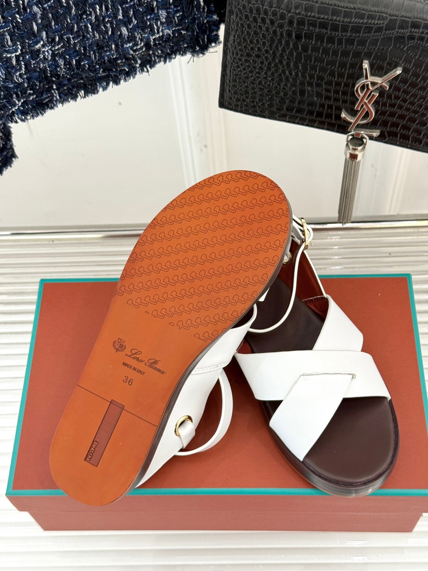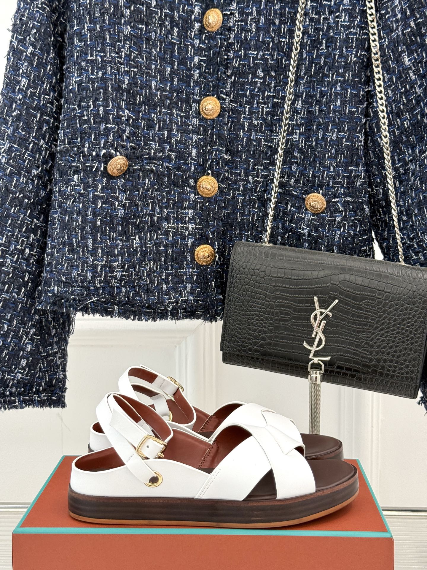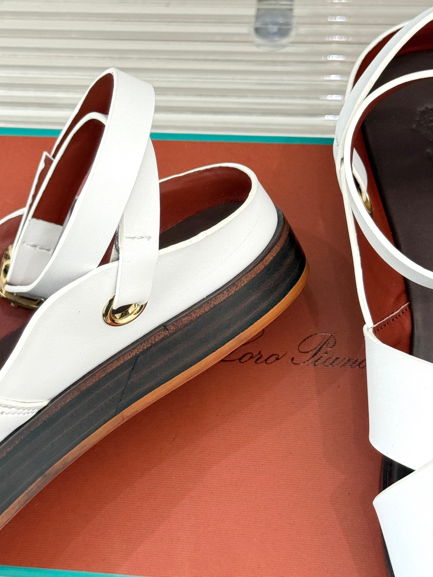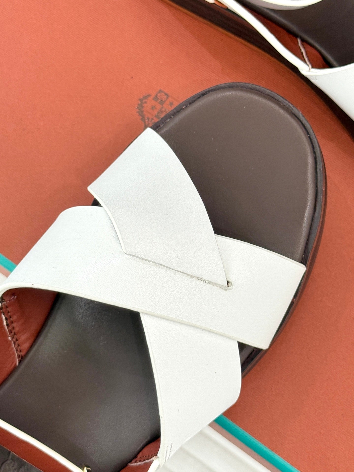 SANDALS THICK SOLE CROSS STRAP IN WHITE AND BROWN CALFSKIN