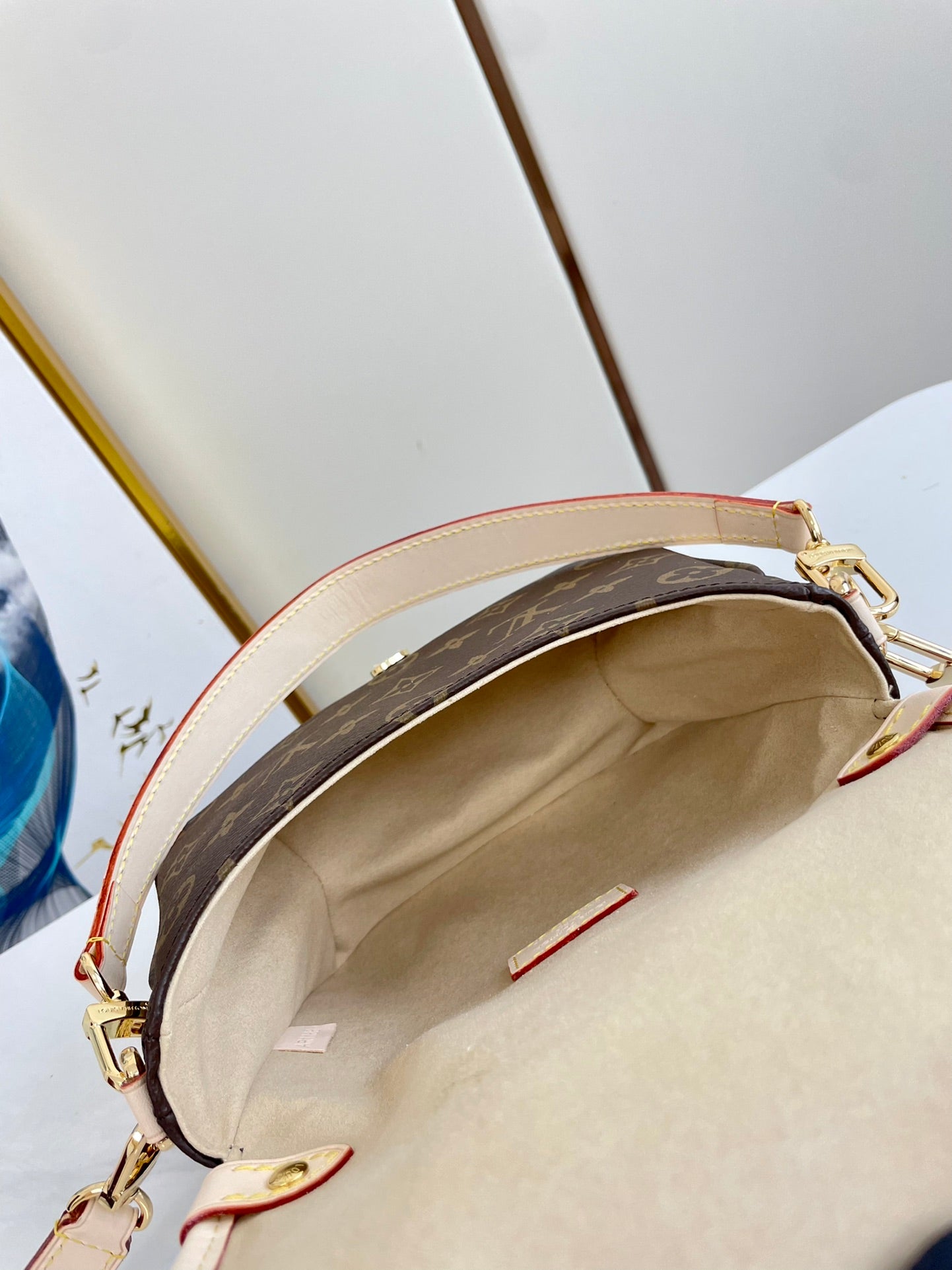SAUMUR BB 20 BROWN MONOGRAM CANVAS AND LEATHER TRIM GOLD HARDWARE