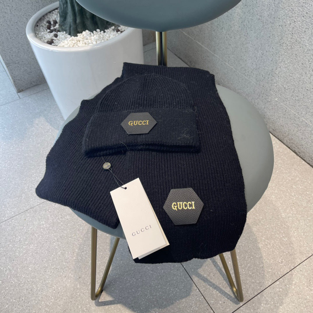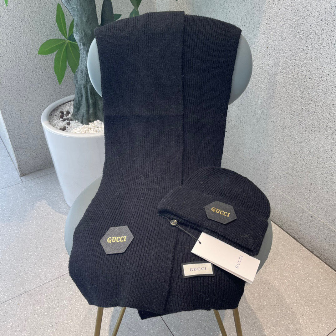 SET SCARF AND HAT IN BLACK WOOL 414805