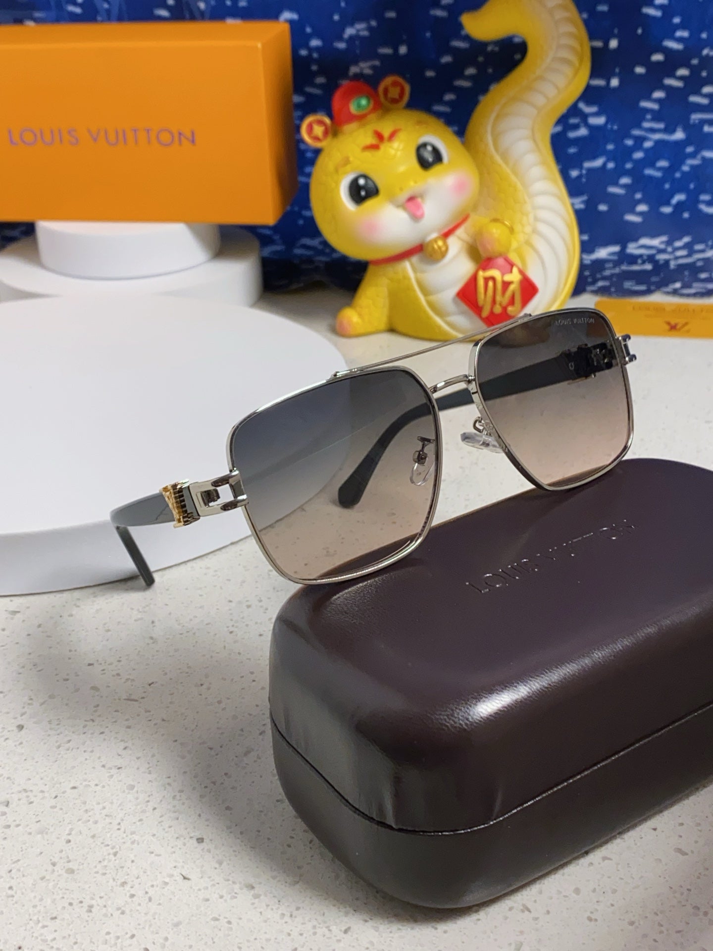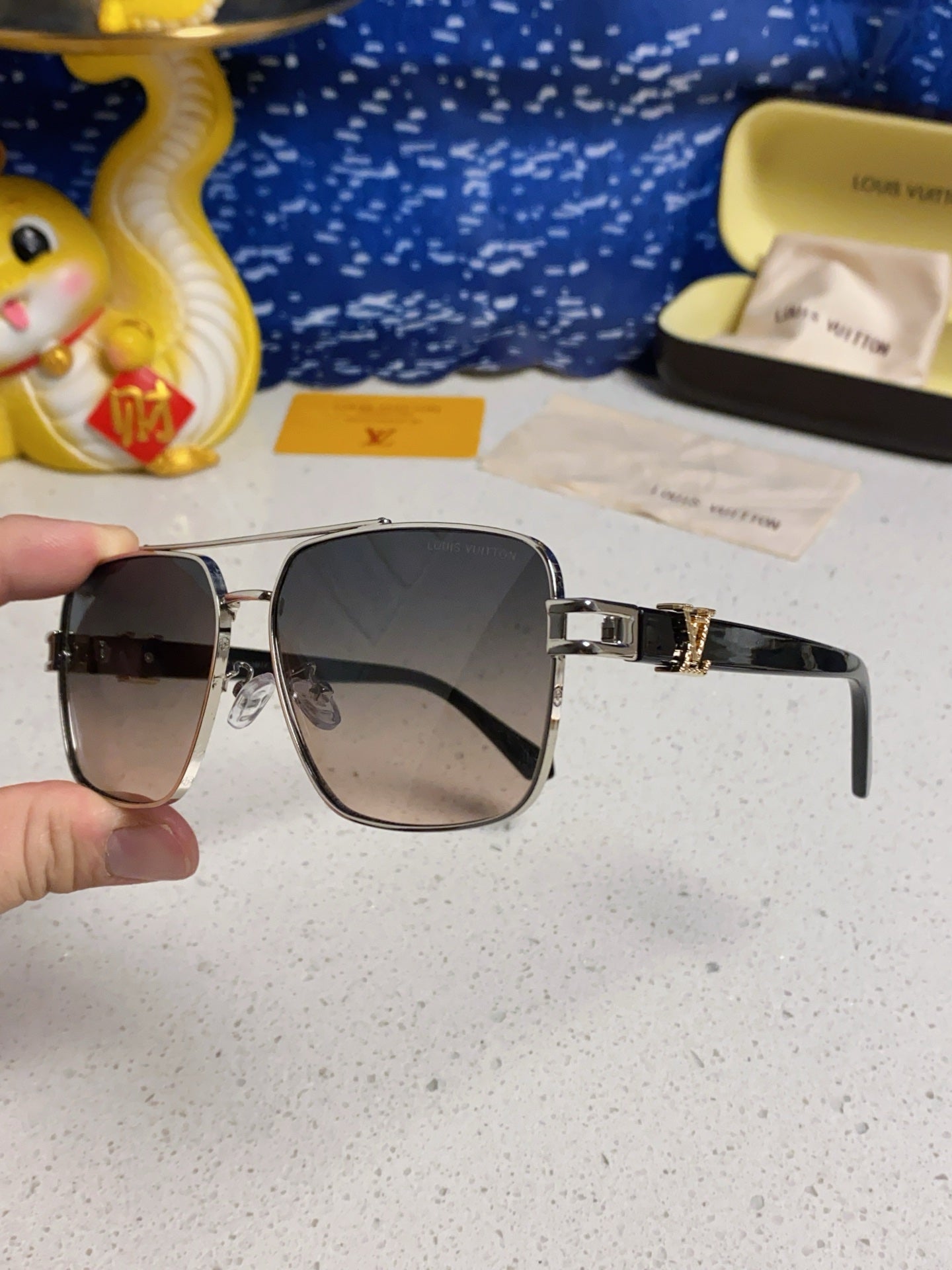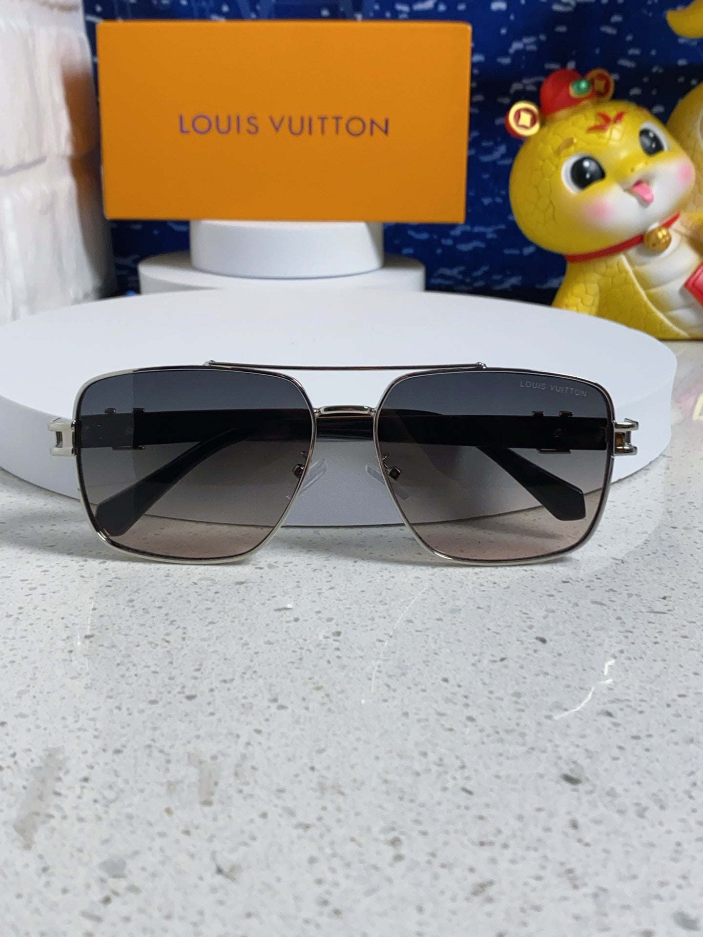 SIGNATURE SQUARE SUNGLASSES 567474 IN SILVER METAL GREY SMOKE LENSES