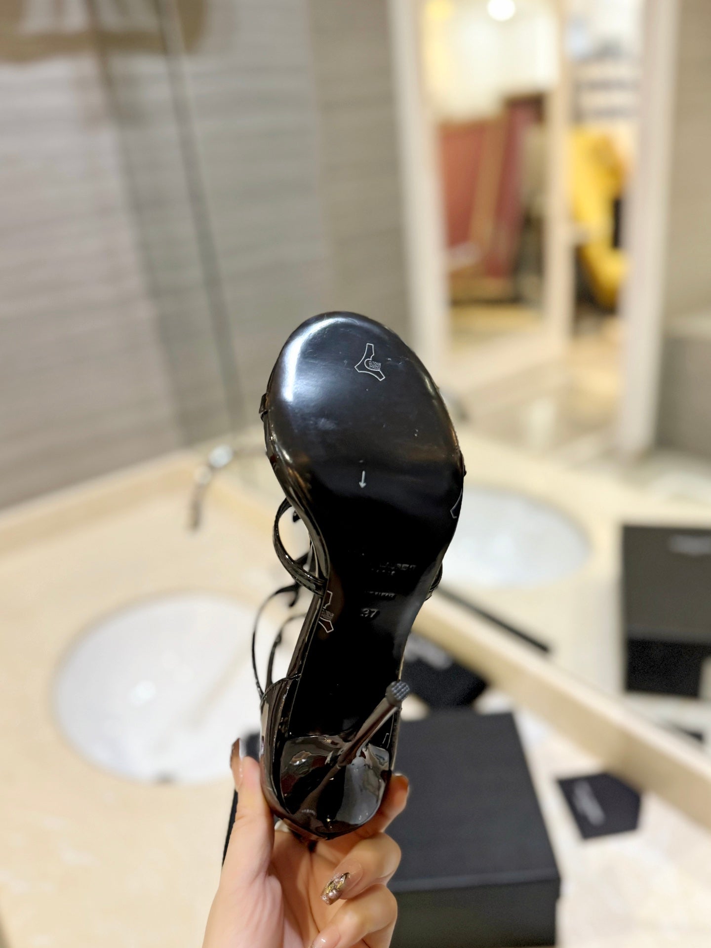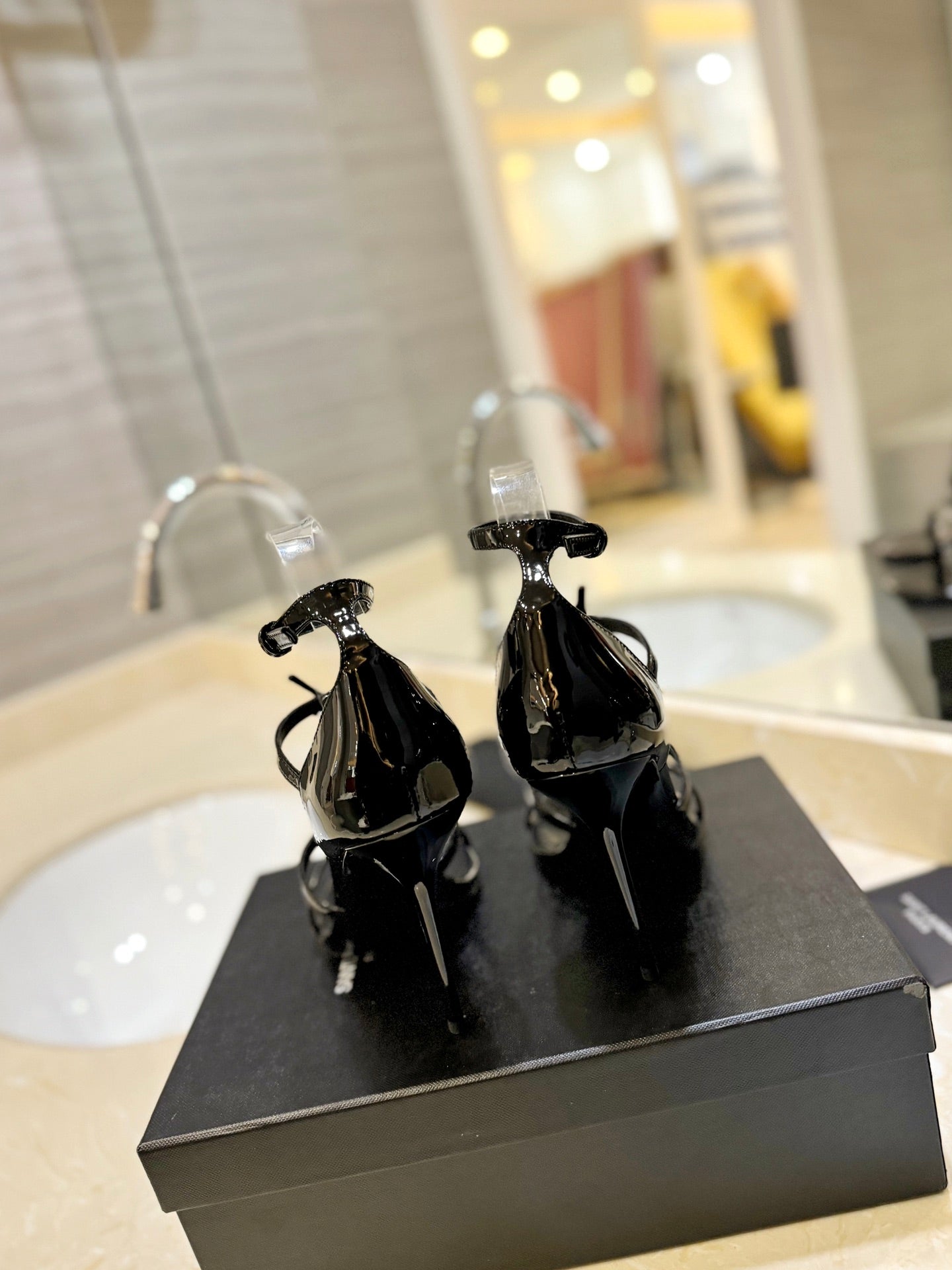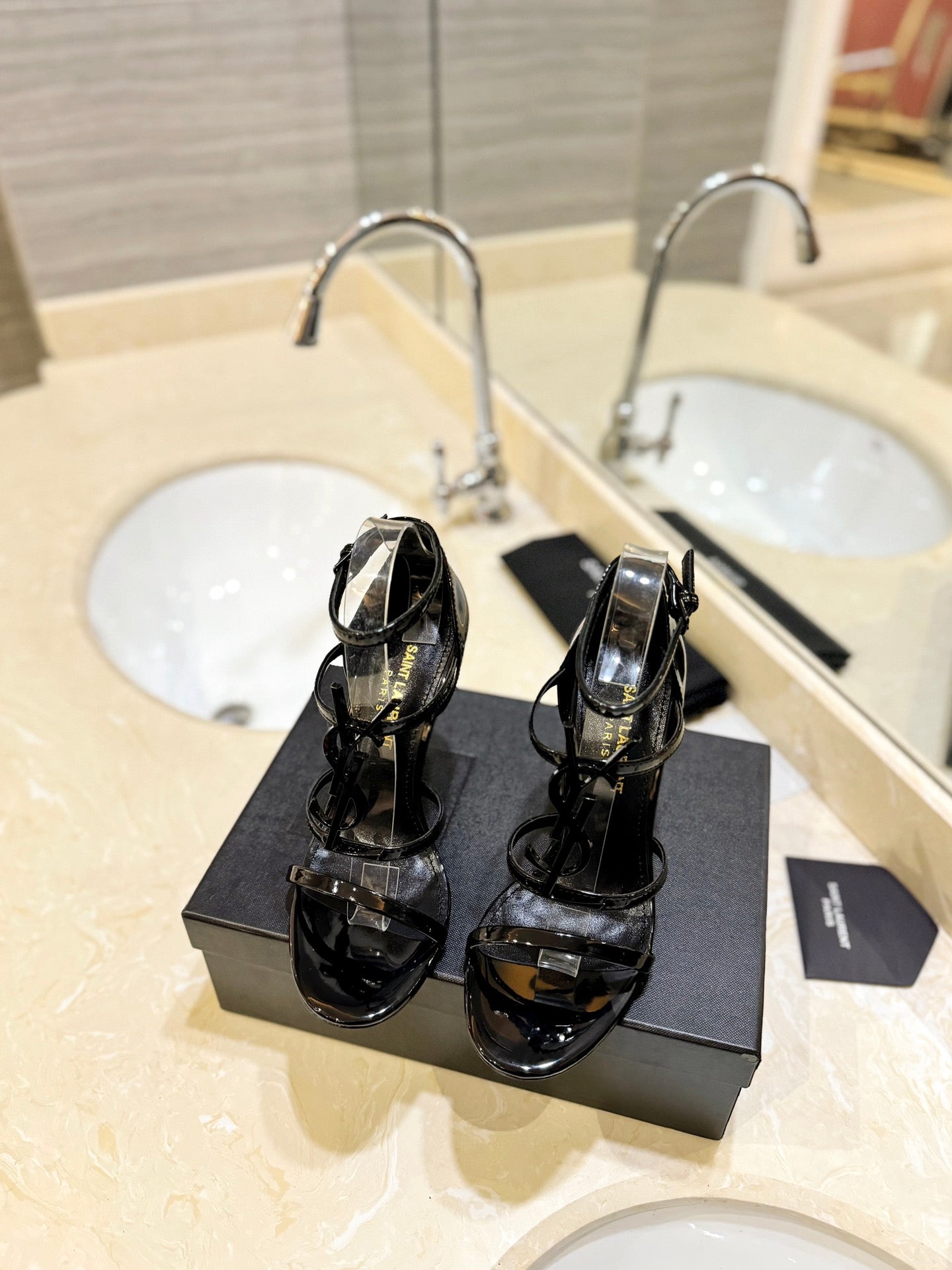 SL CASSANDRA HEELED SANDALS BLACK POLISHED CALFSKIN