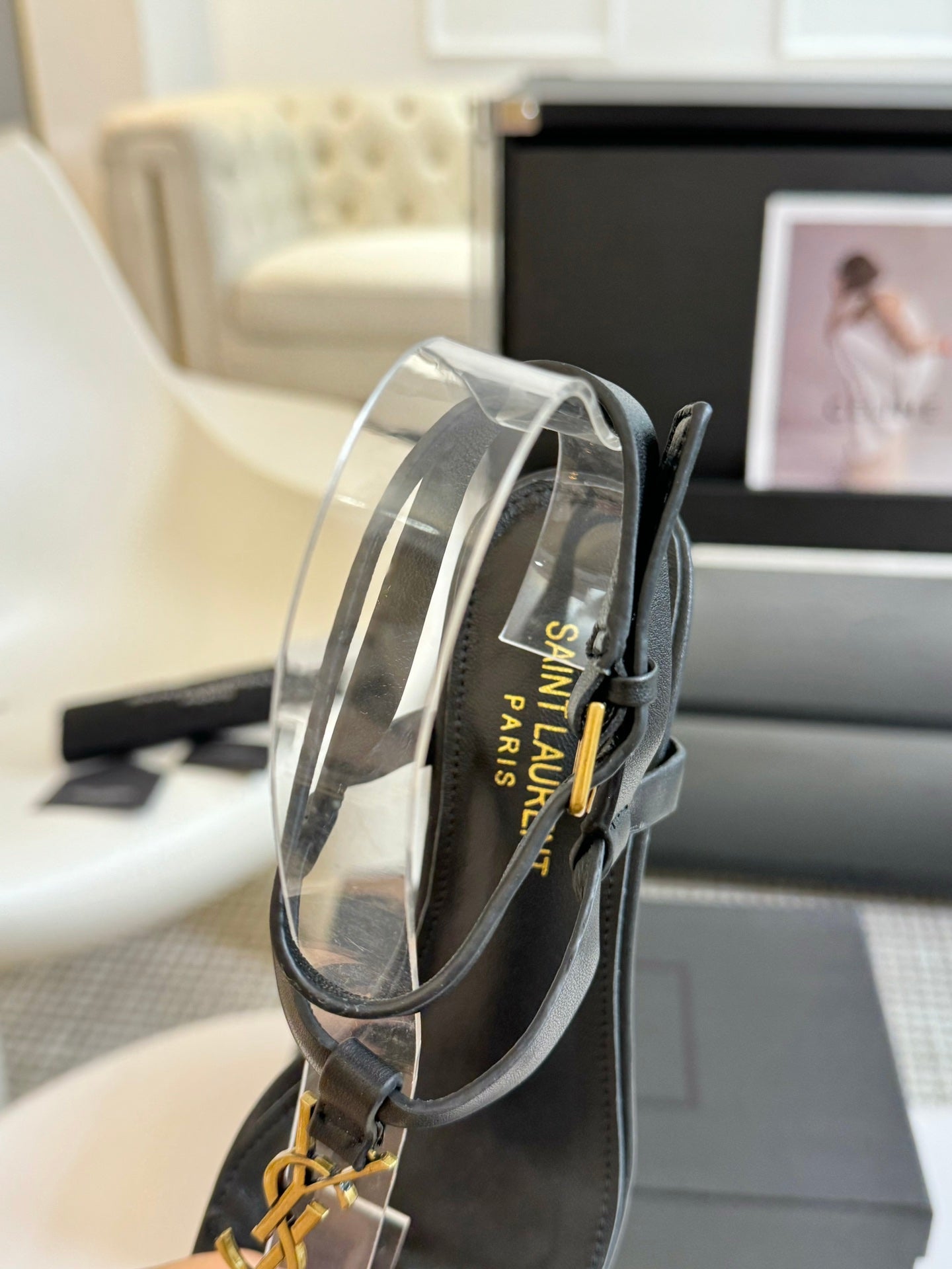 SL CASSANDRA MID-HEEL SANDAL BLACK CALFSKIN