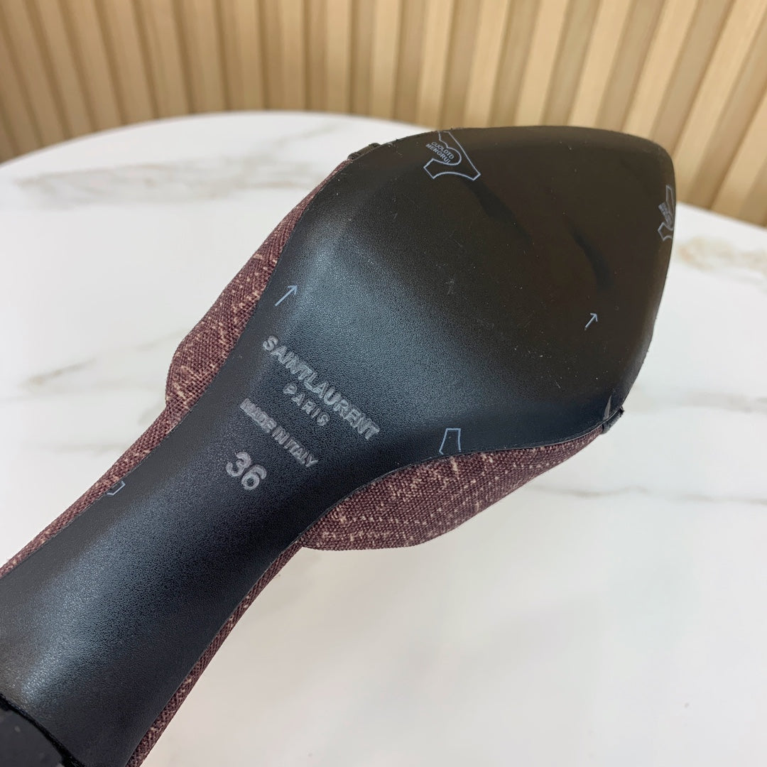 SL CHAIN ATTACH HEELED MULES BROWN DENIM