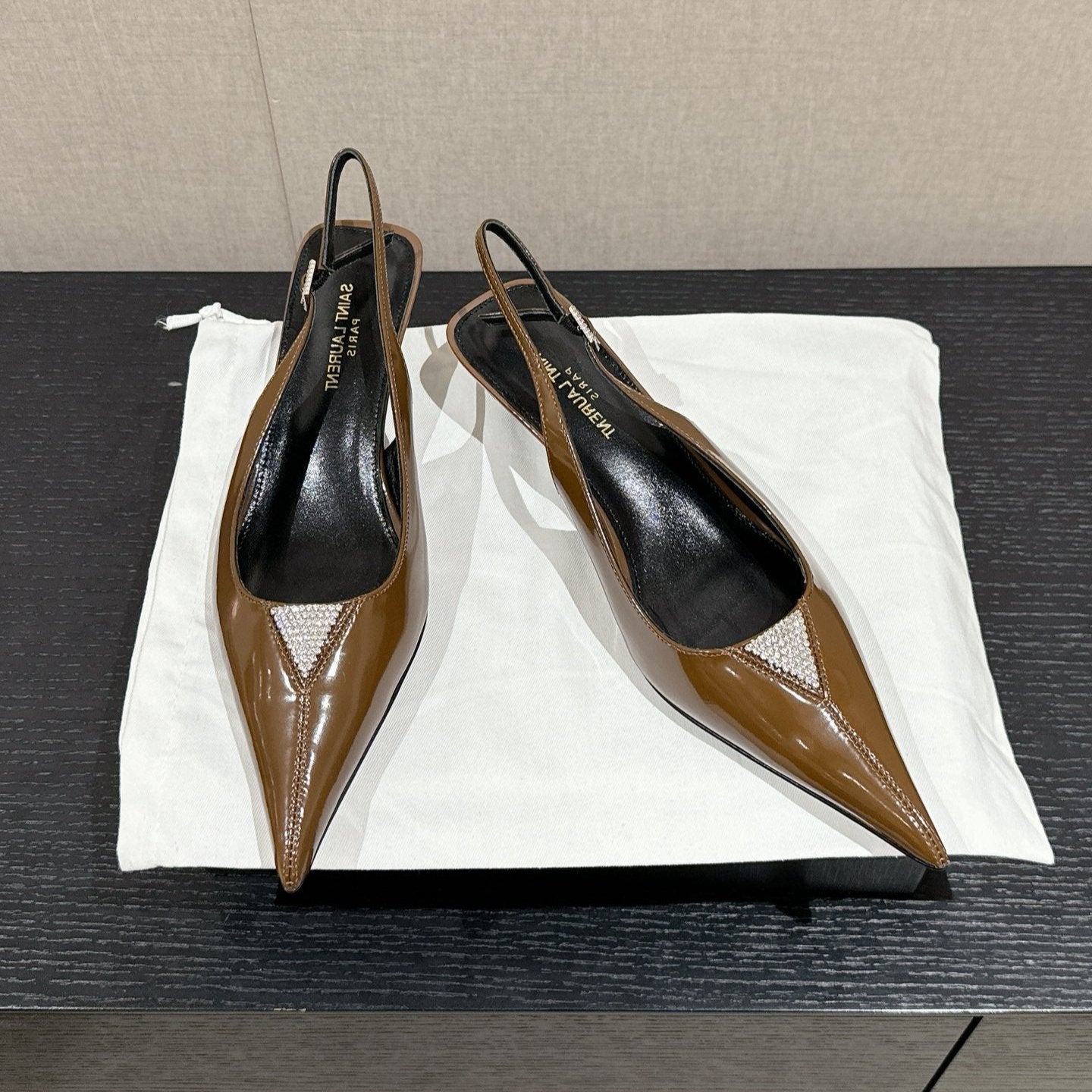 SL CHERISH CRYSTAL SLINGBACK ASH BROWN CALFSKIN