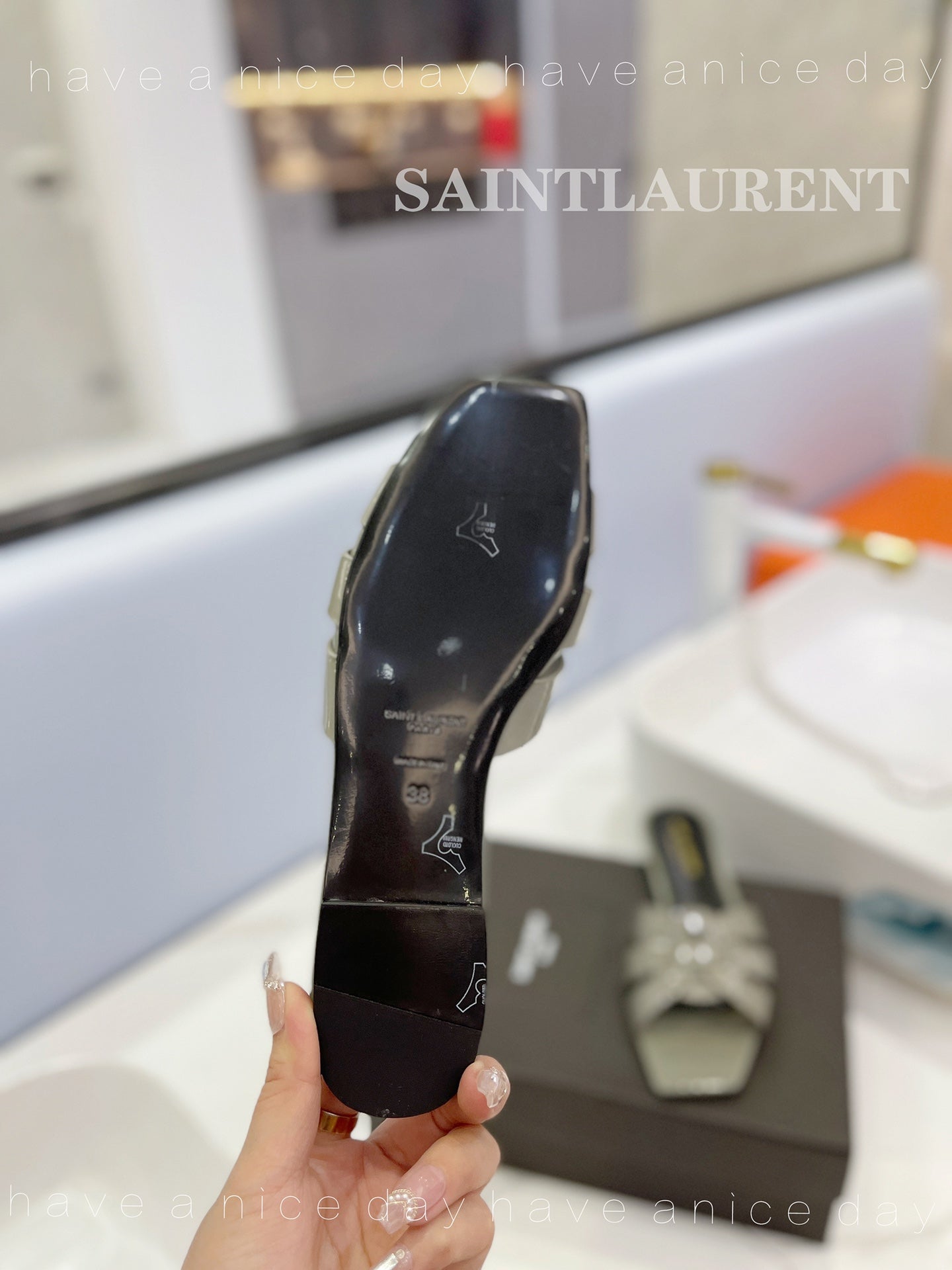 SL TRIBUTE SLIPPERS GLOSSY SAGE CALFSKIN