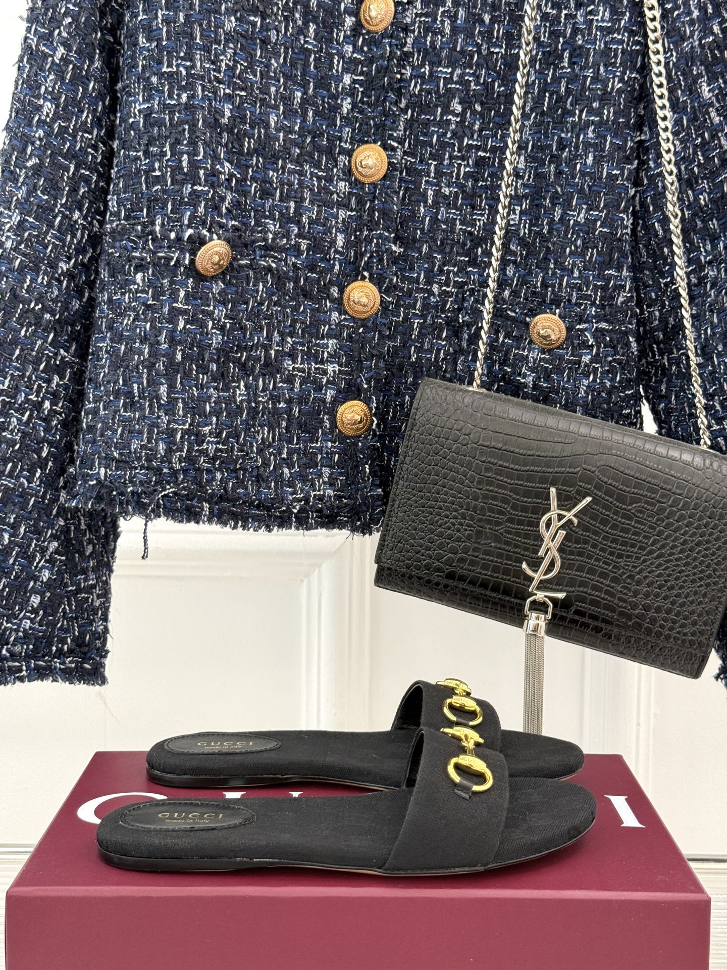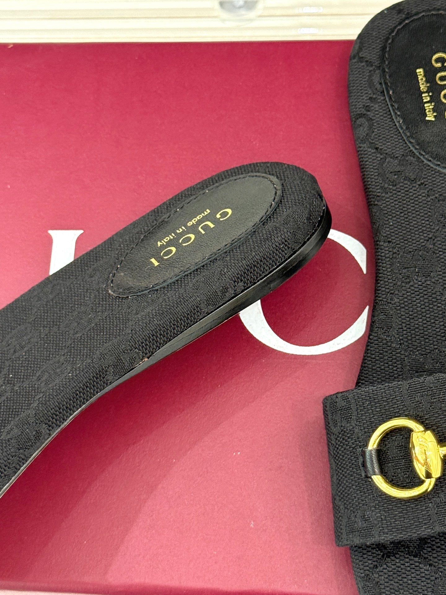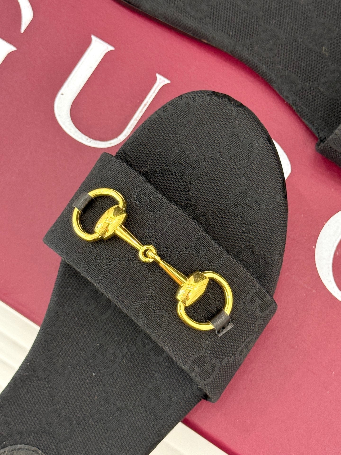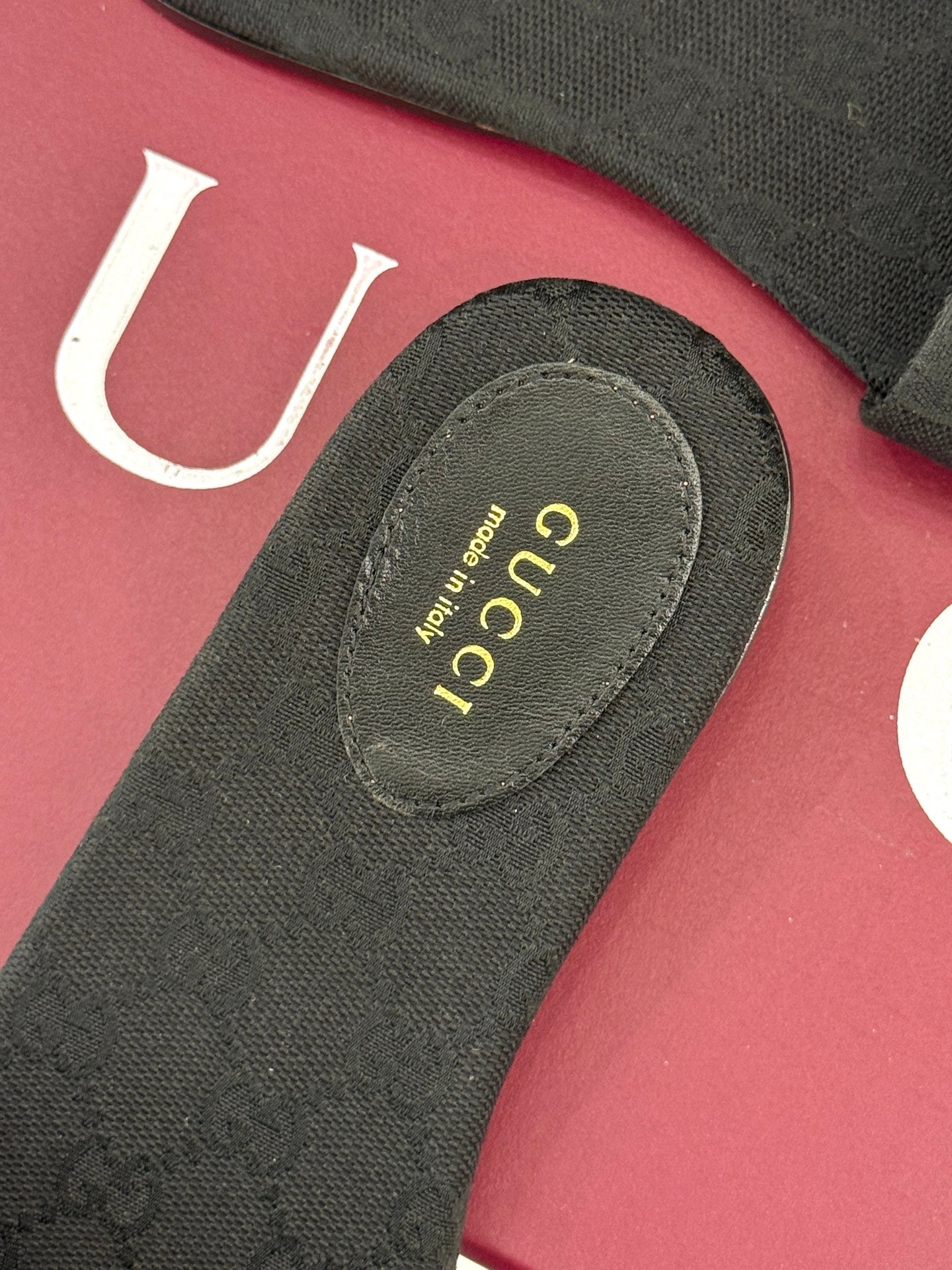 SLIDE SANDALS IN BLACK FABRIC EMBOSSED LOGO