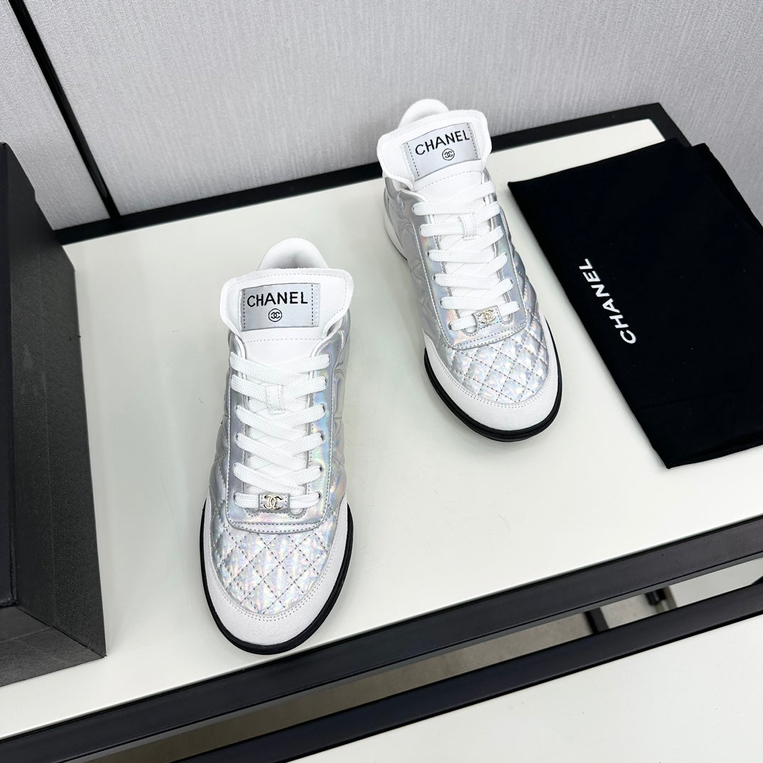SPORTS SHOES IN GLOSSY SILVER CALFSKIN