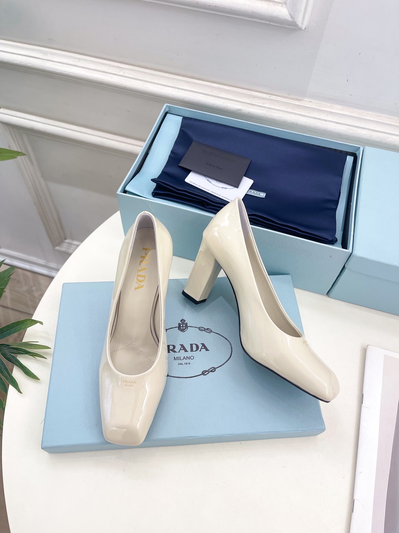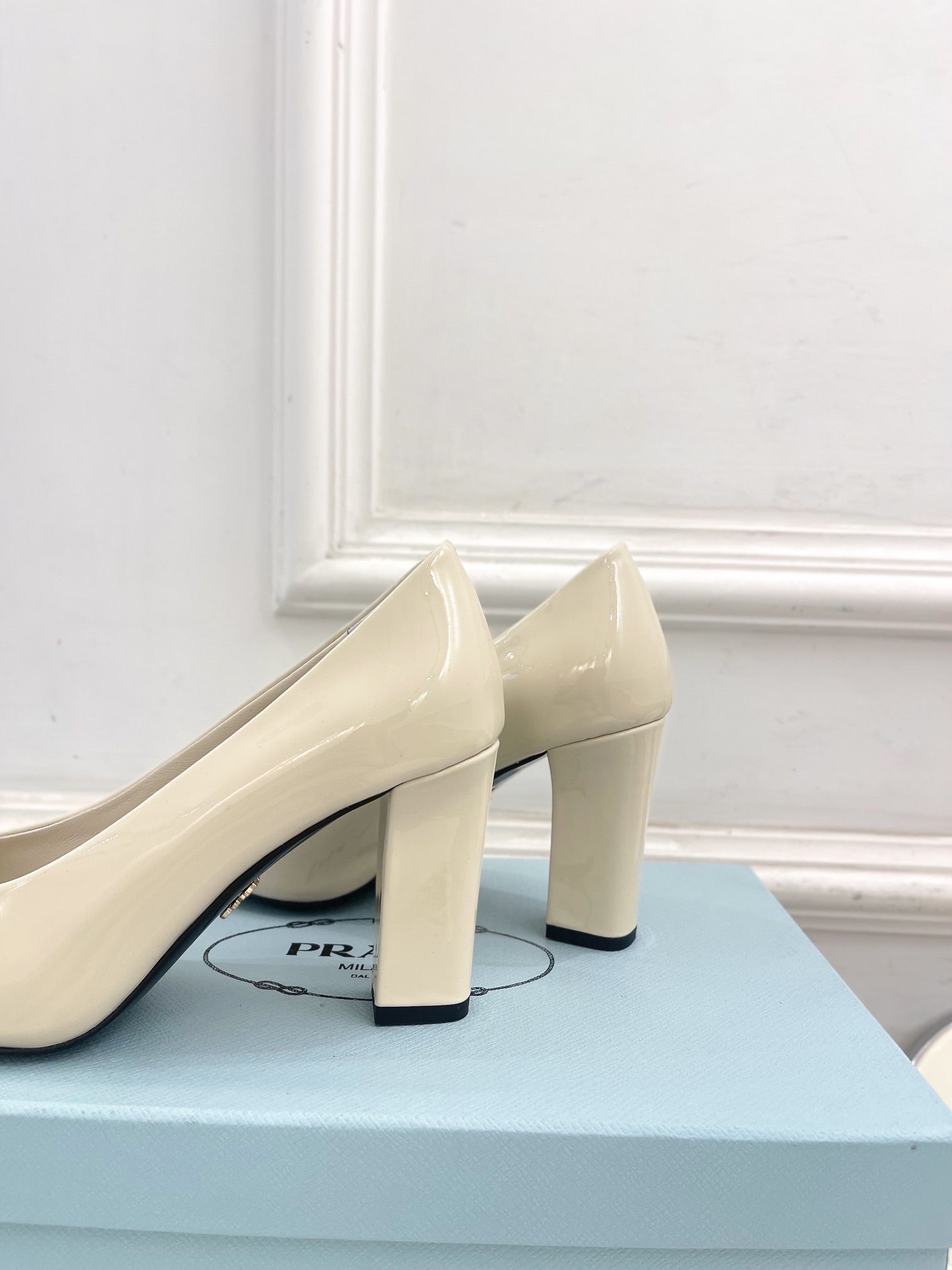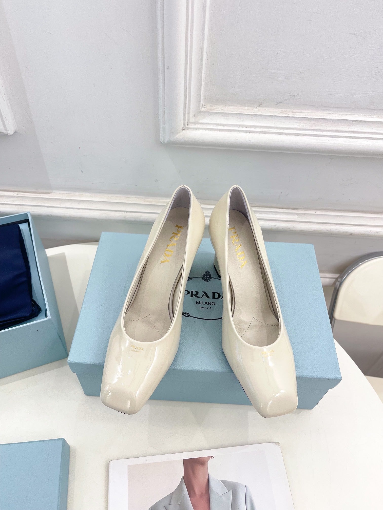 SQUARE TOE HIGH PUMPS IN WHITE GLOSSY CALFSKIN