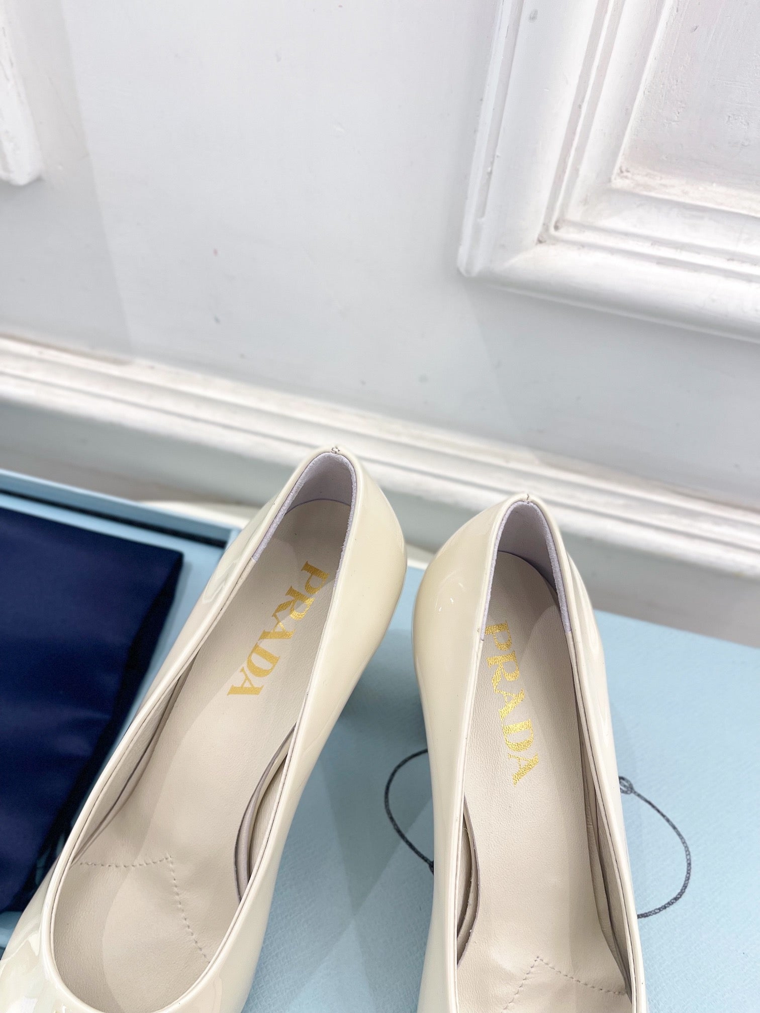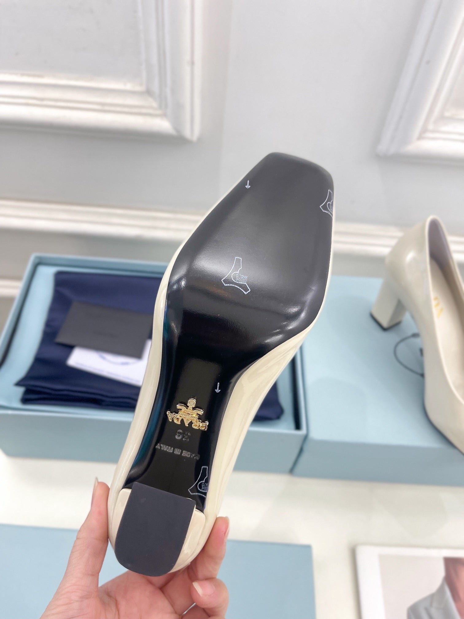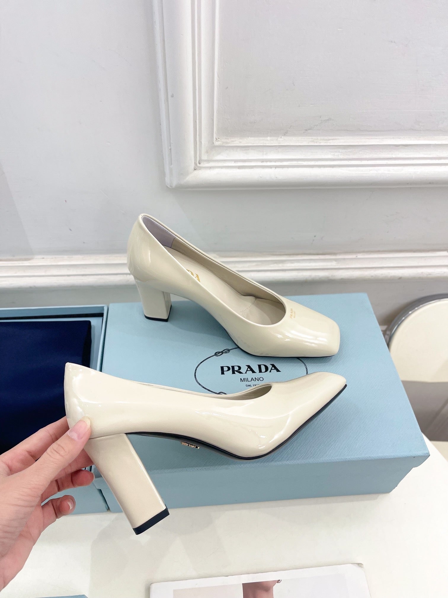 SQUARE TOE HIGH PUMPS IN WHITE GLOSSY CALFSKIN