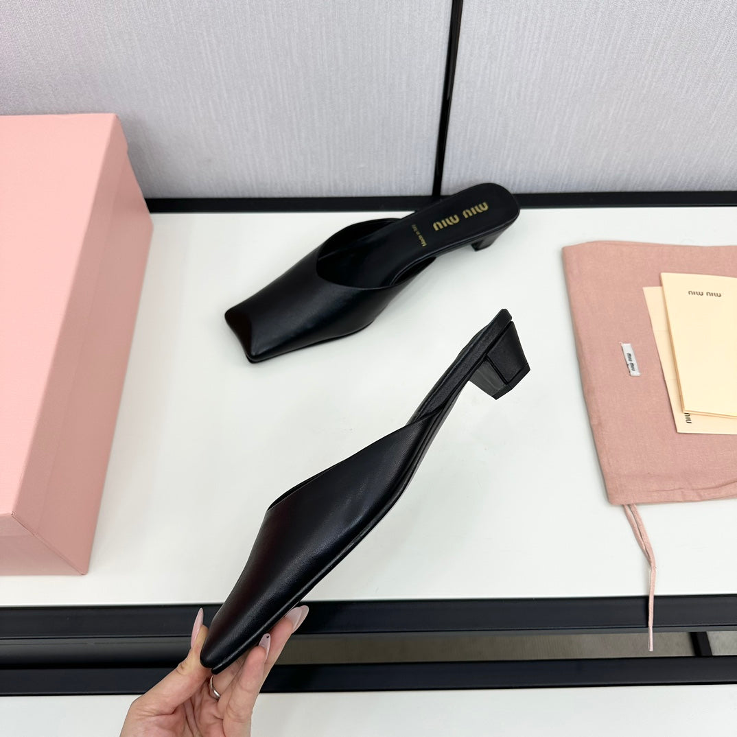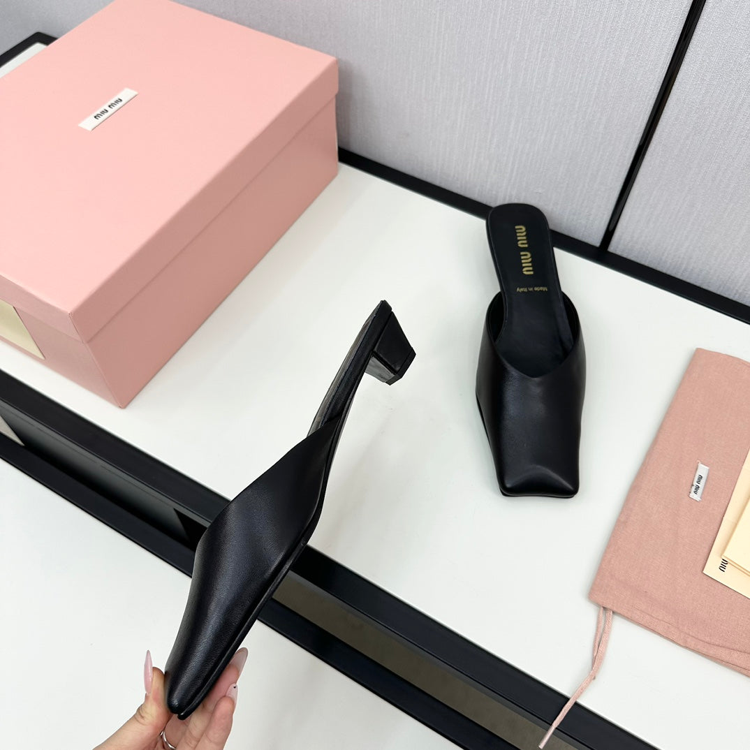 SQUARE TOE MULES BLACK SHEEPSKIN