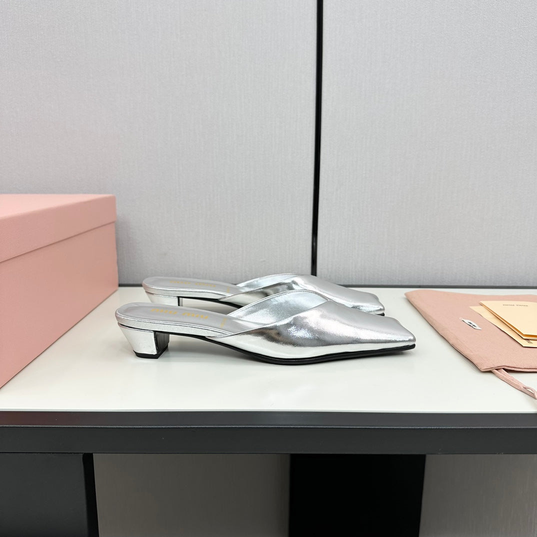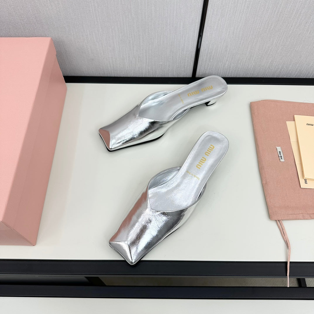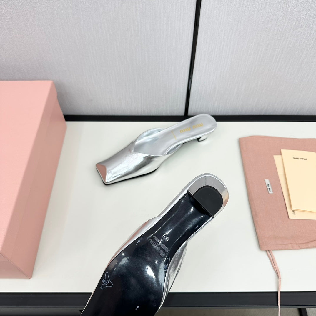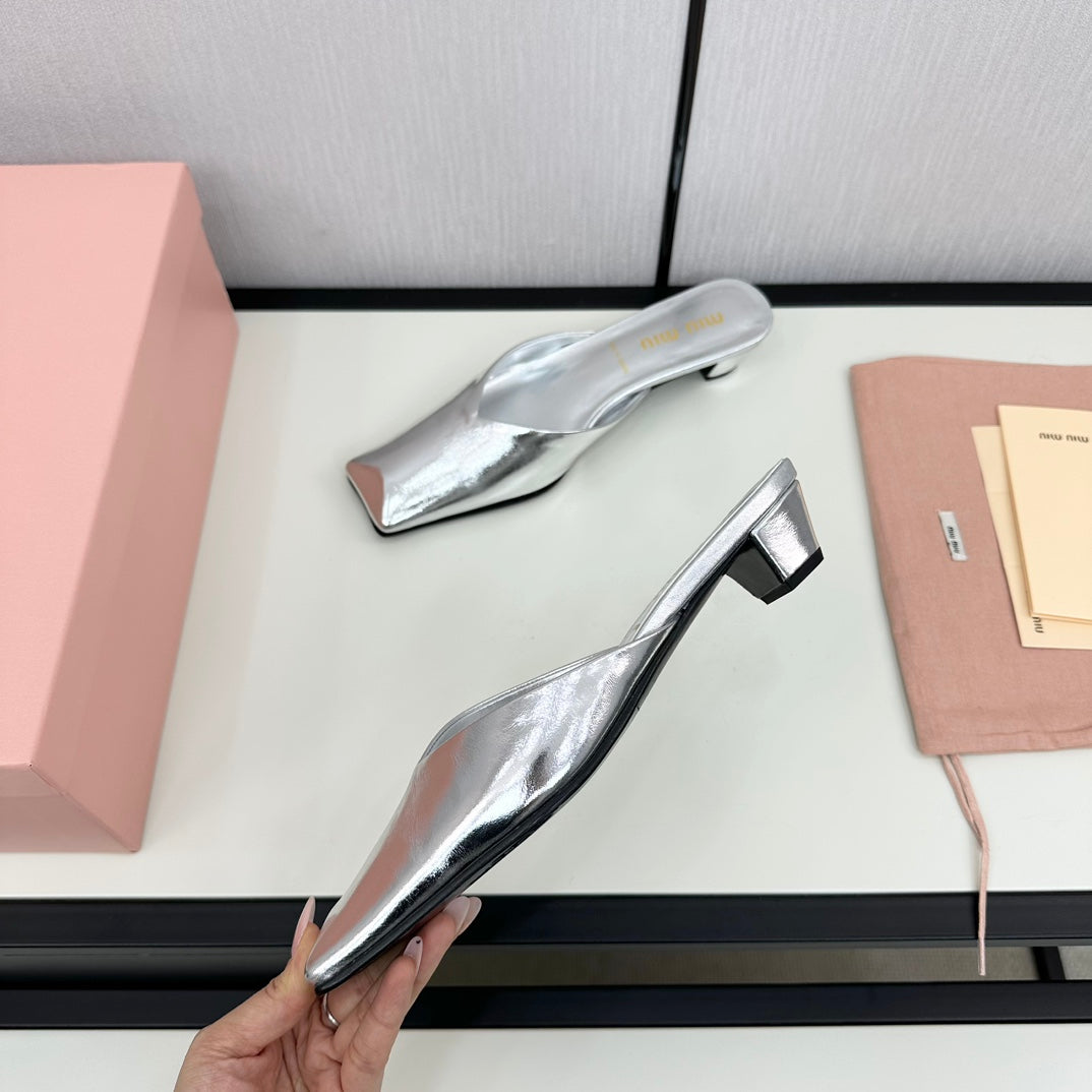 SQUARE TOE MULES SILVER SHEEPSKIN