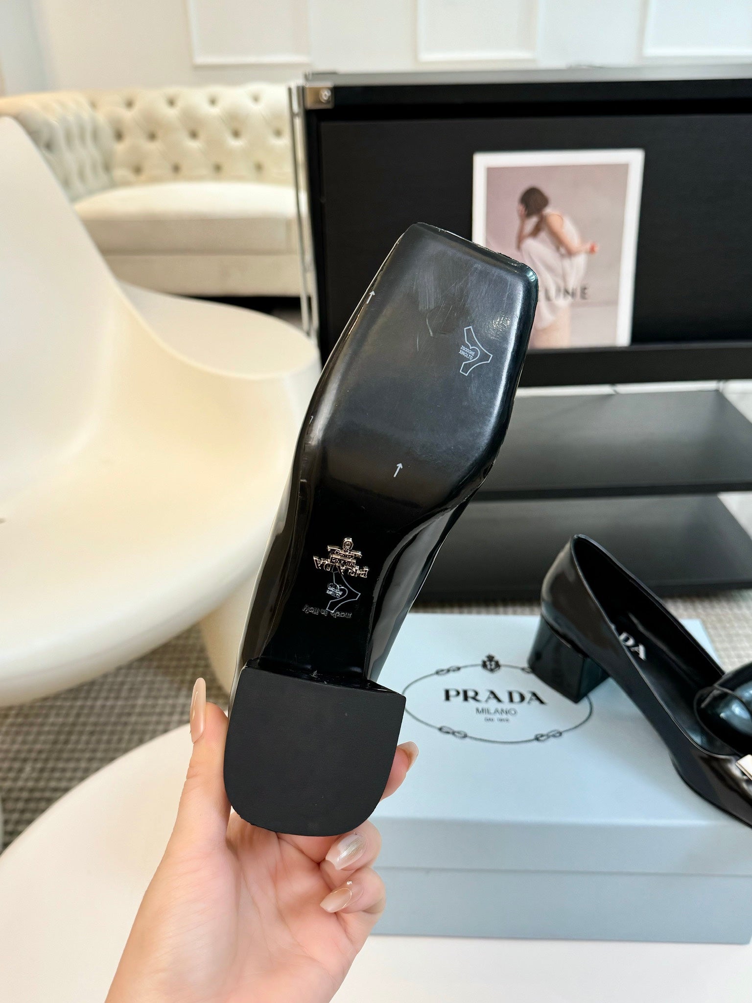 SQUARE TOE PUMPS IN BLACK GLOSSY CALFSKIN ATTACHED BOW