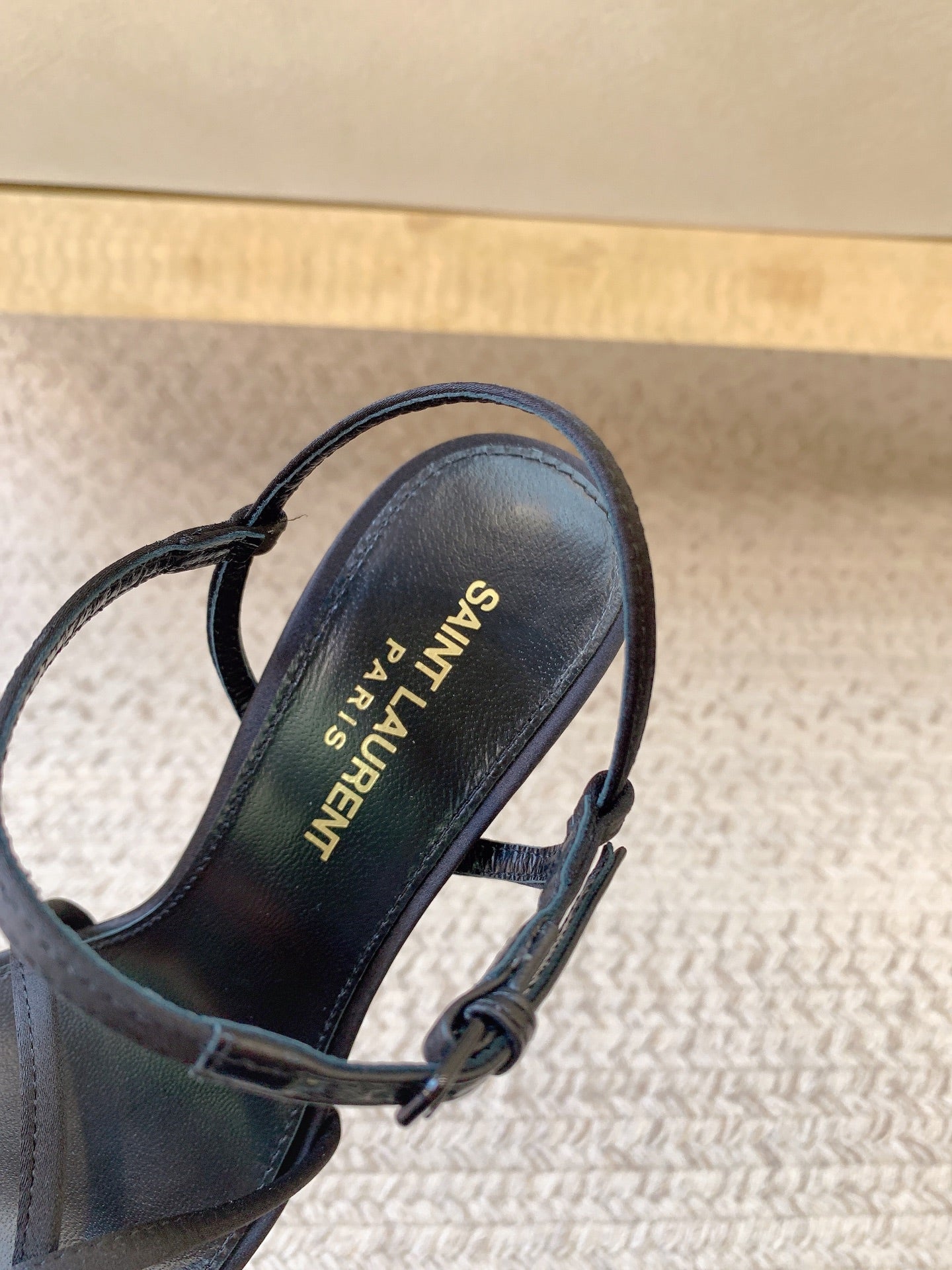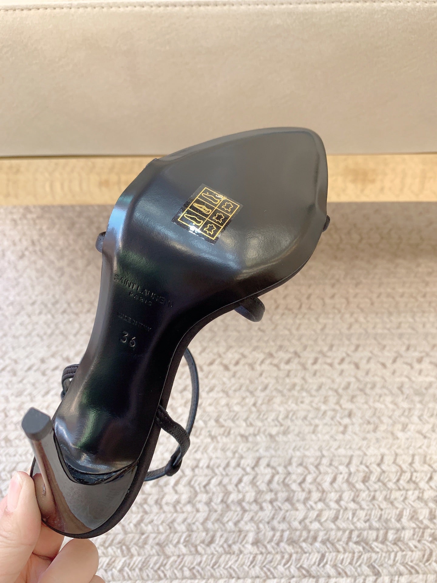 STRAPPY HIGH HEEL SANDALS IN BLACK SILK