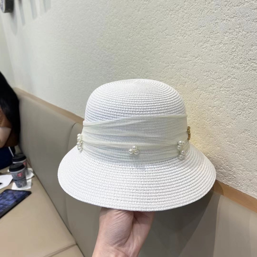 STRAW HAT BOW WITH PEARL WHITE 672700