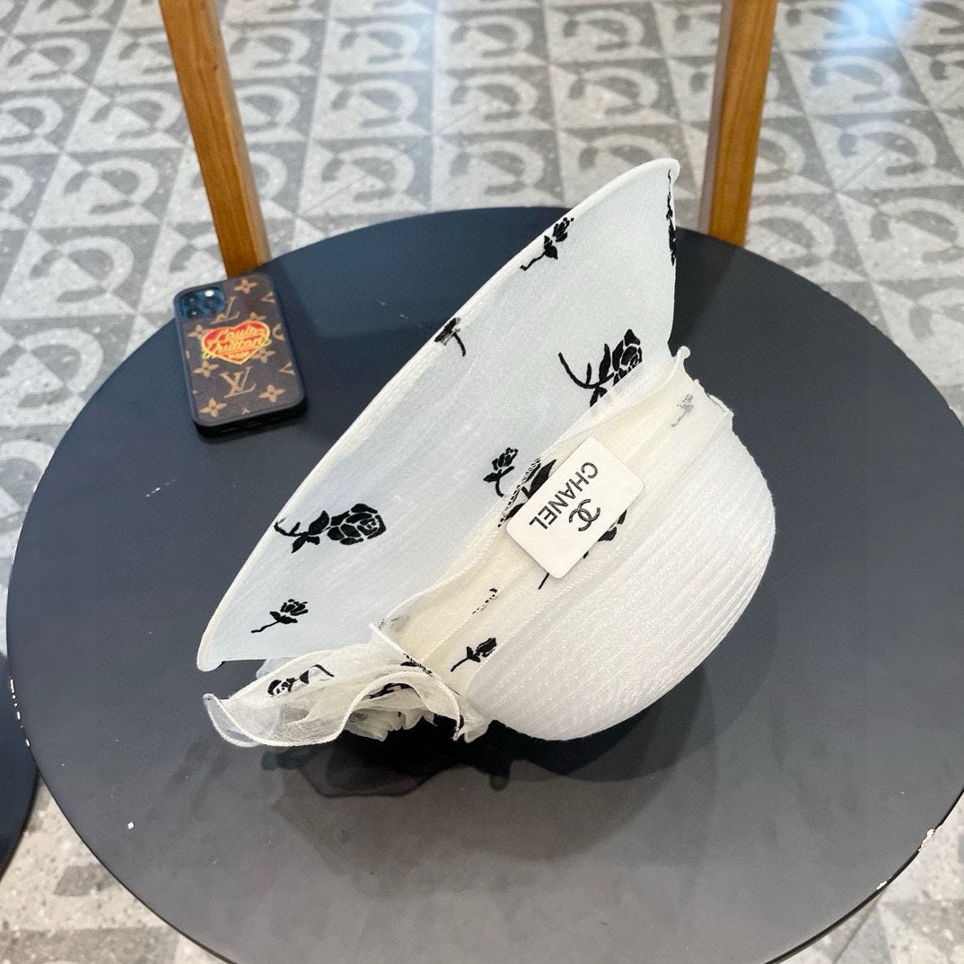 STRAW HAT WITH CHIFFON FLOWER WHITE 672758