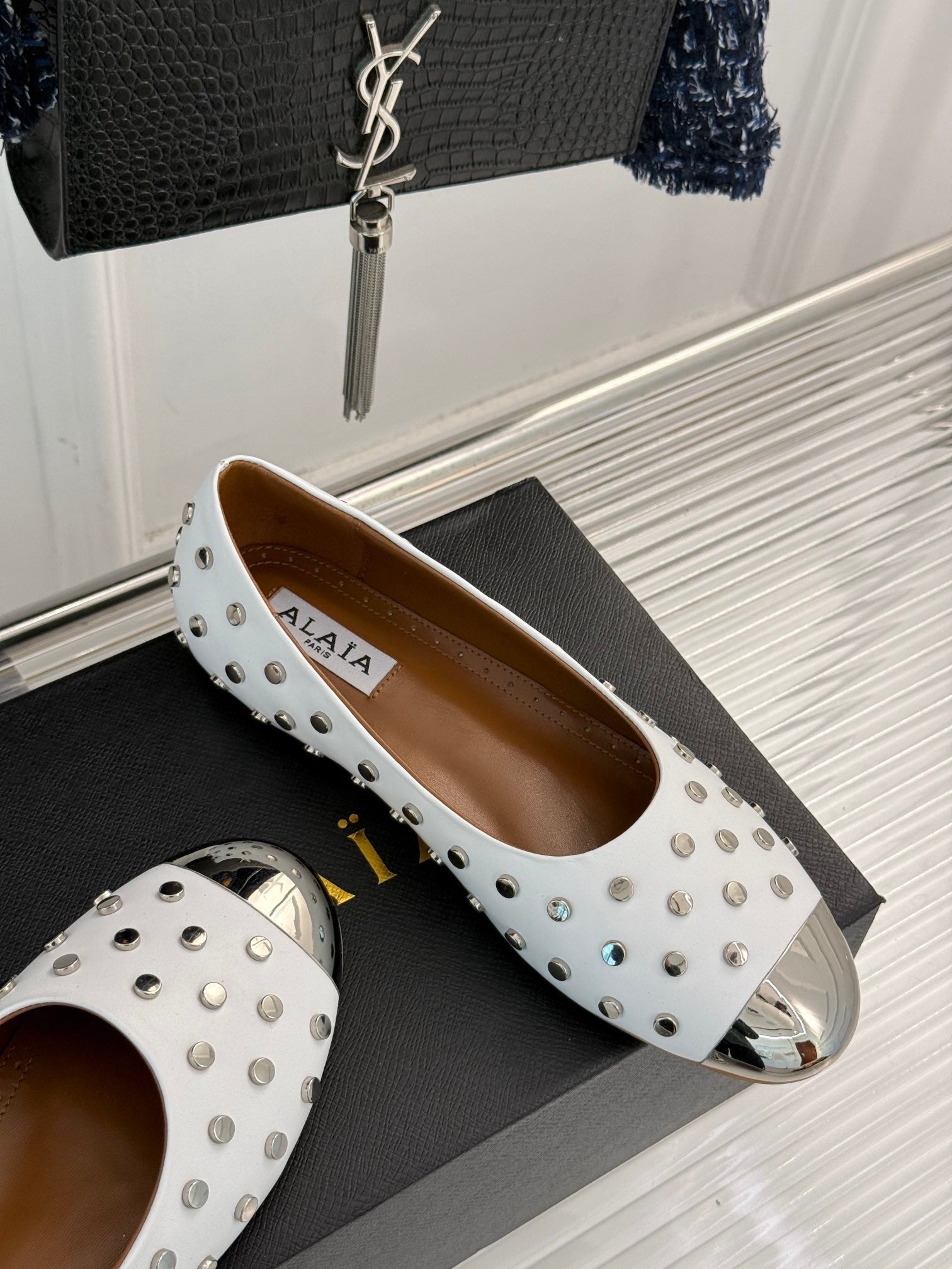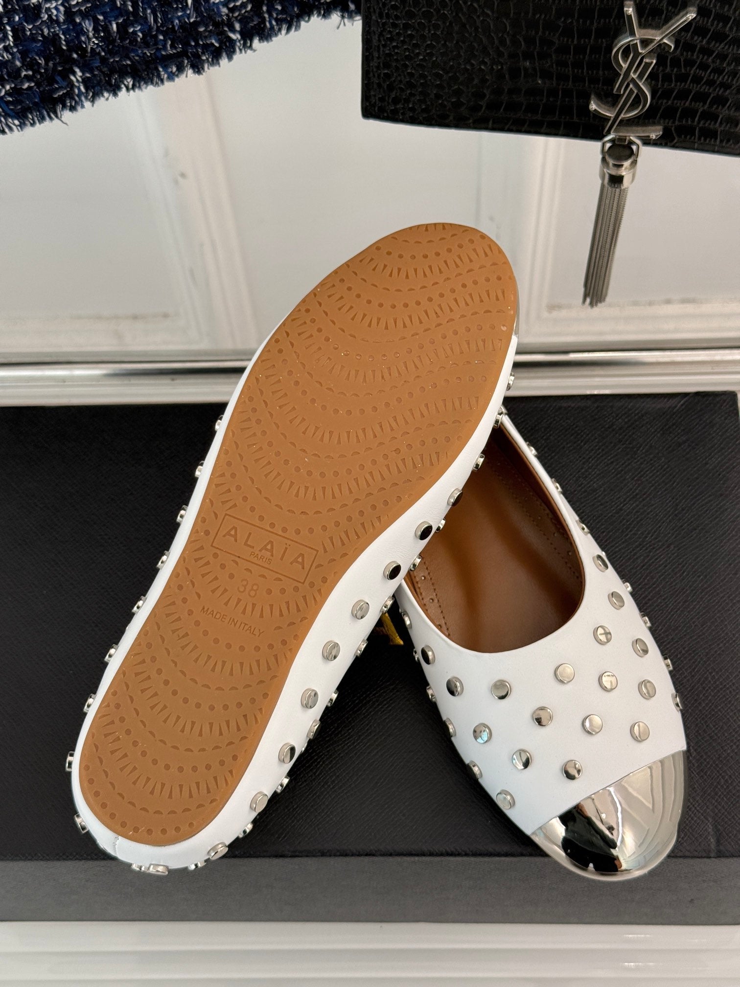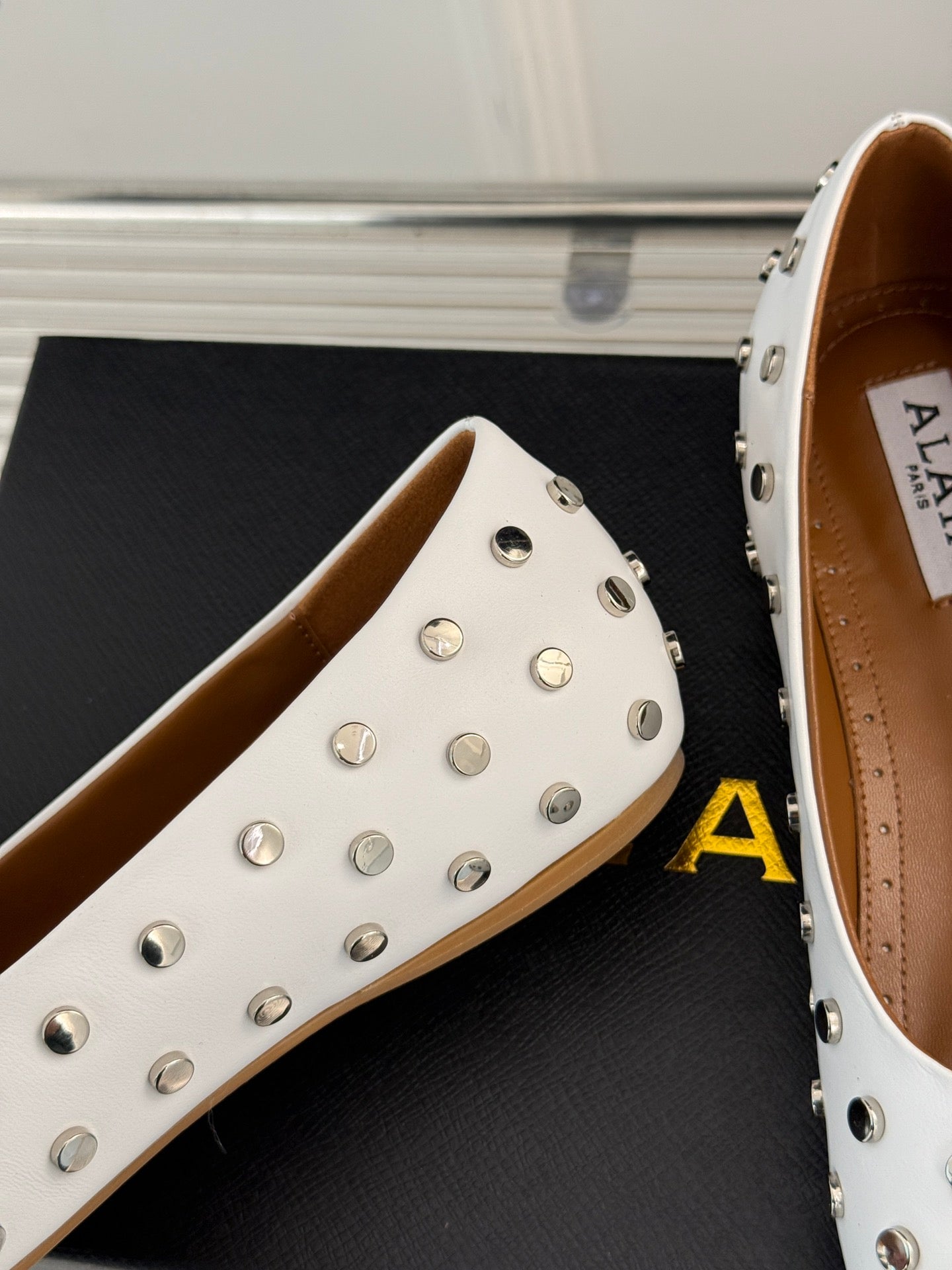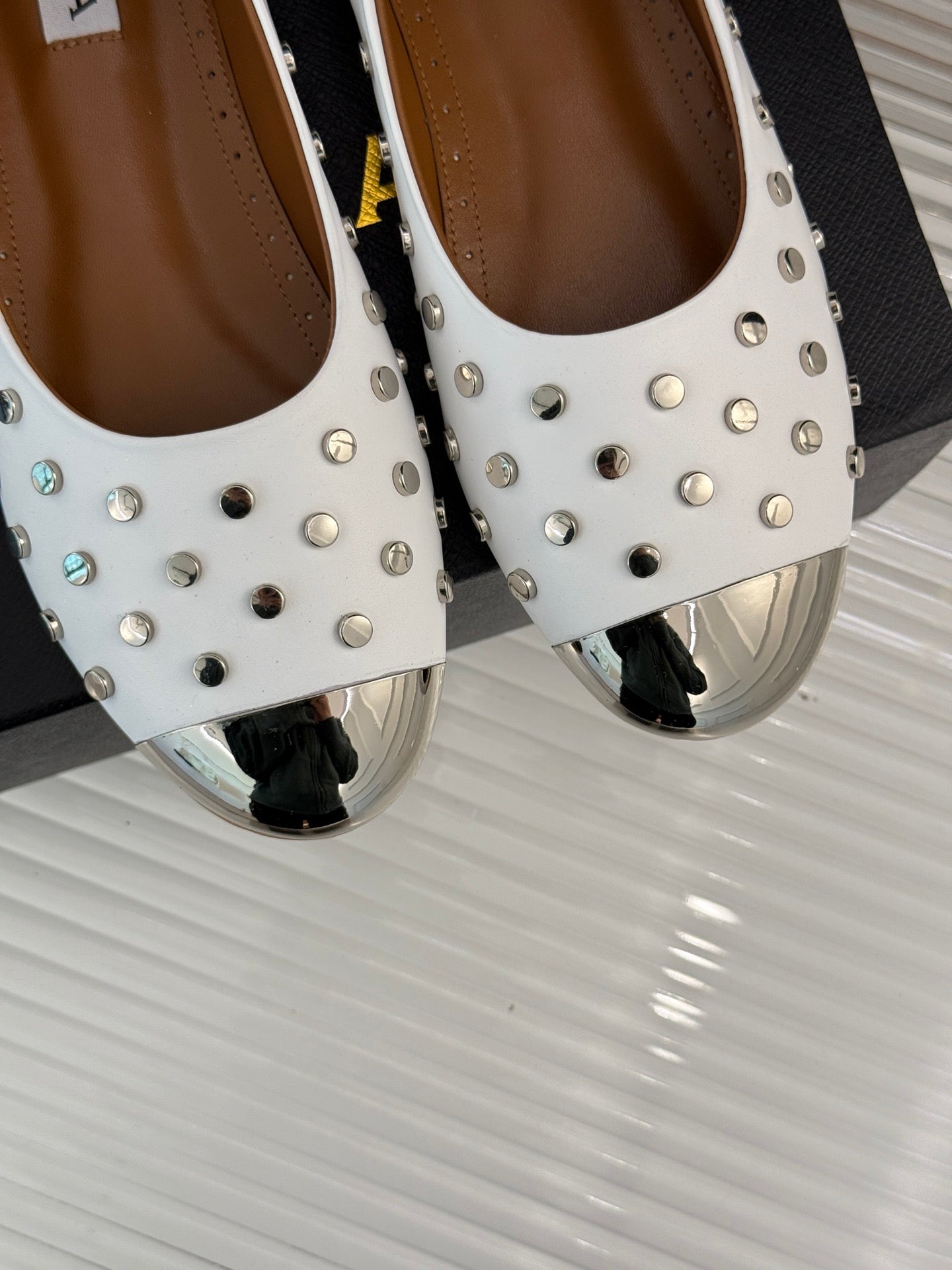 • Material: Calfskin with metal studded toes