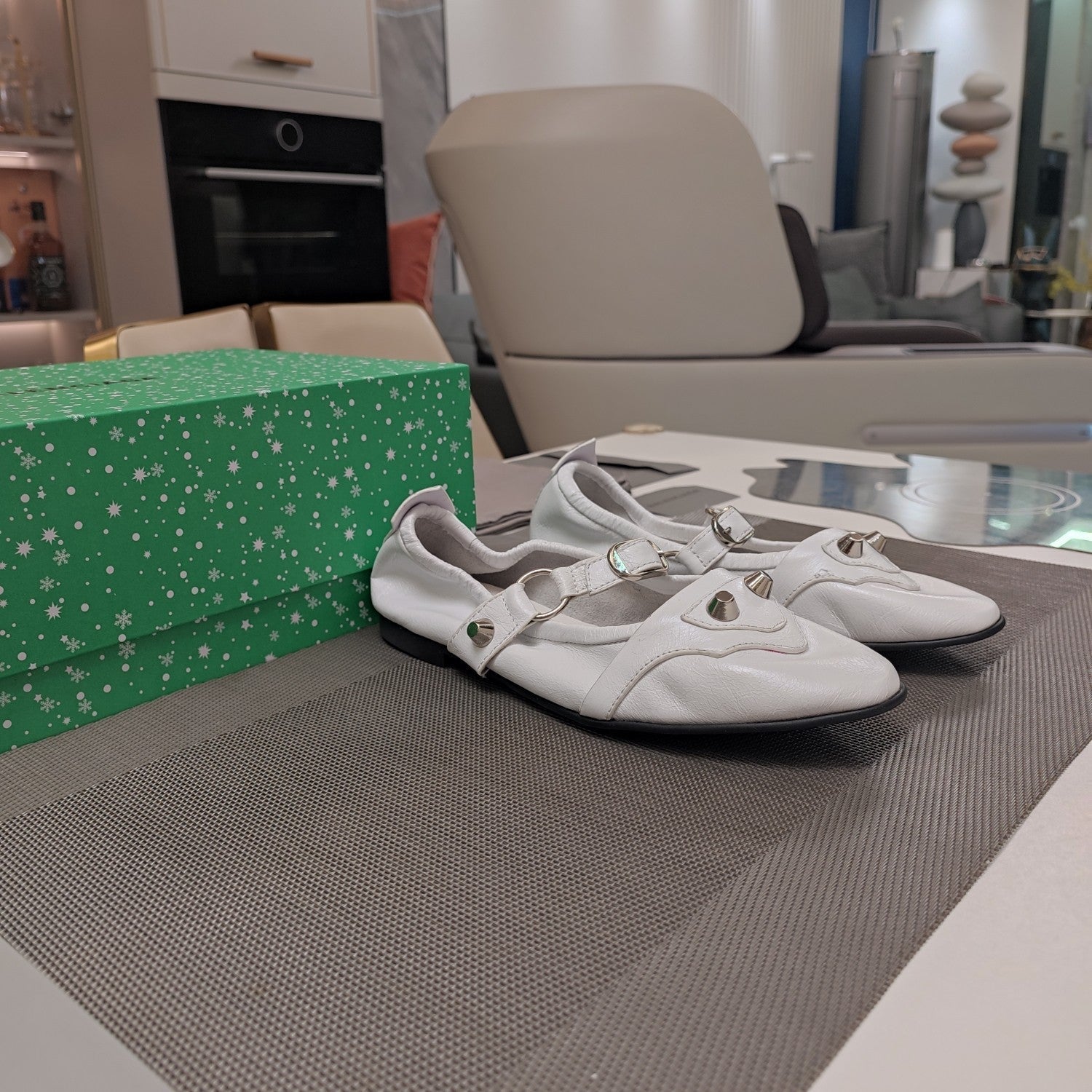 STUDDED MARY JANE FLATS IN WHITE SHINY LAMBSKIN