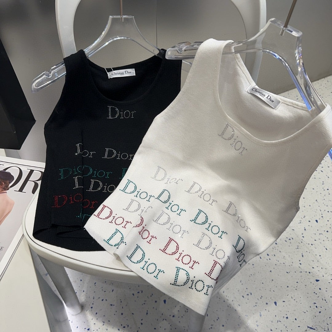 TANK TOP 624520 IN BLACK COTTON RIBBED CRYSTAL LOGO