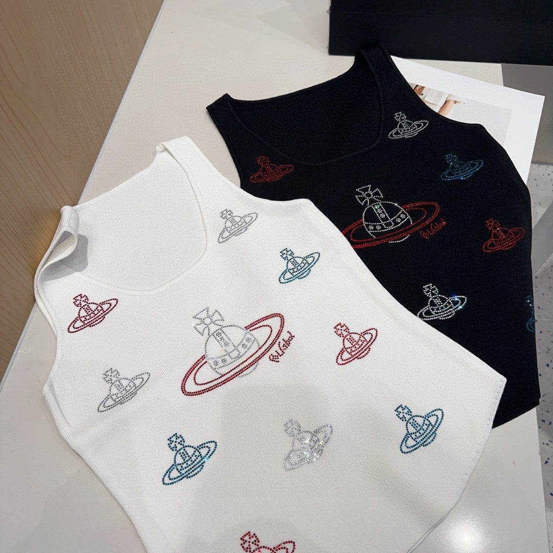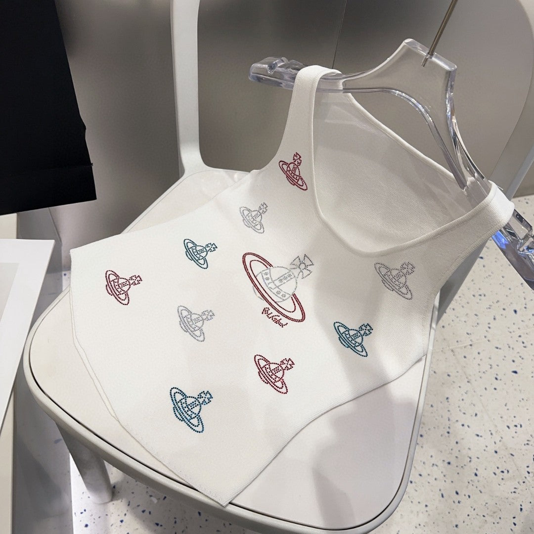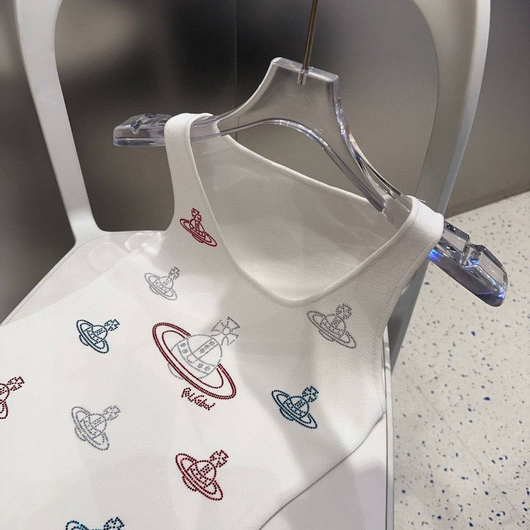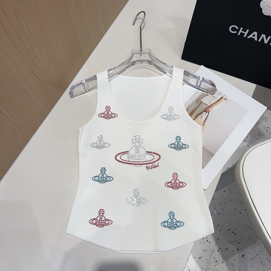 TANK TOP 639167 IN WHITE COTTON RIBBED KNIT EMBOSSED CRYSTAL