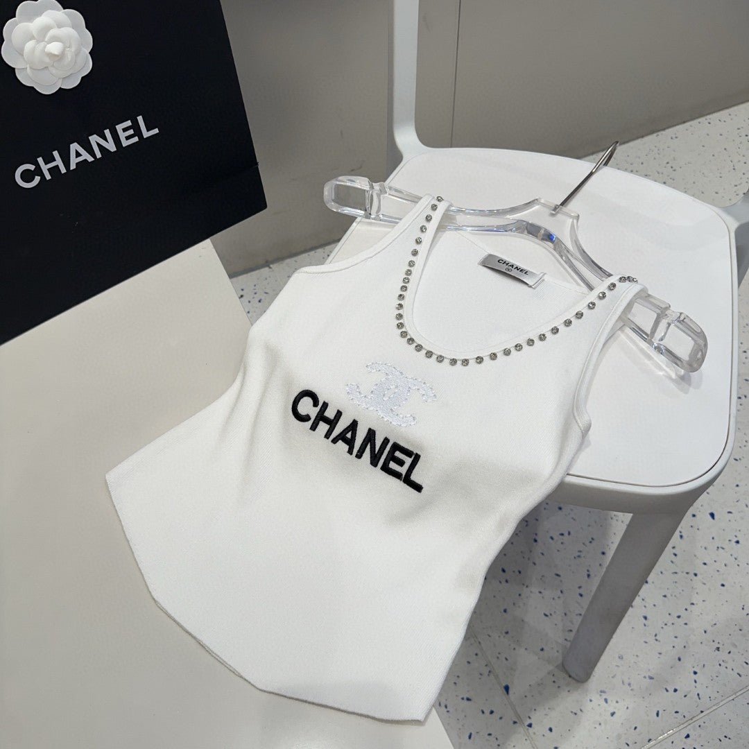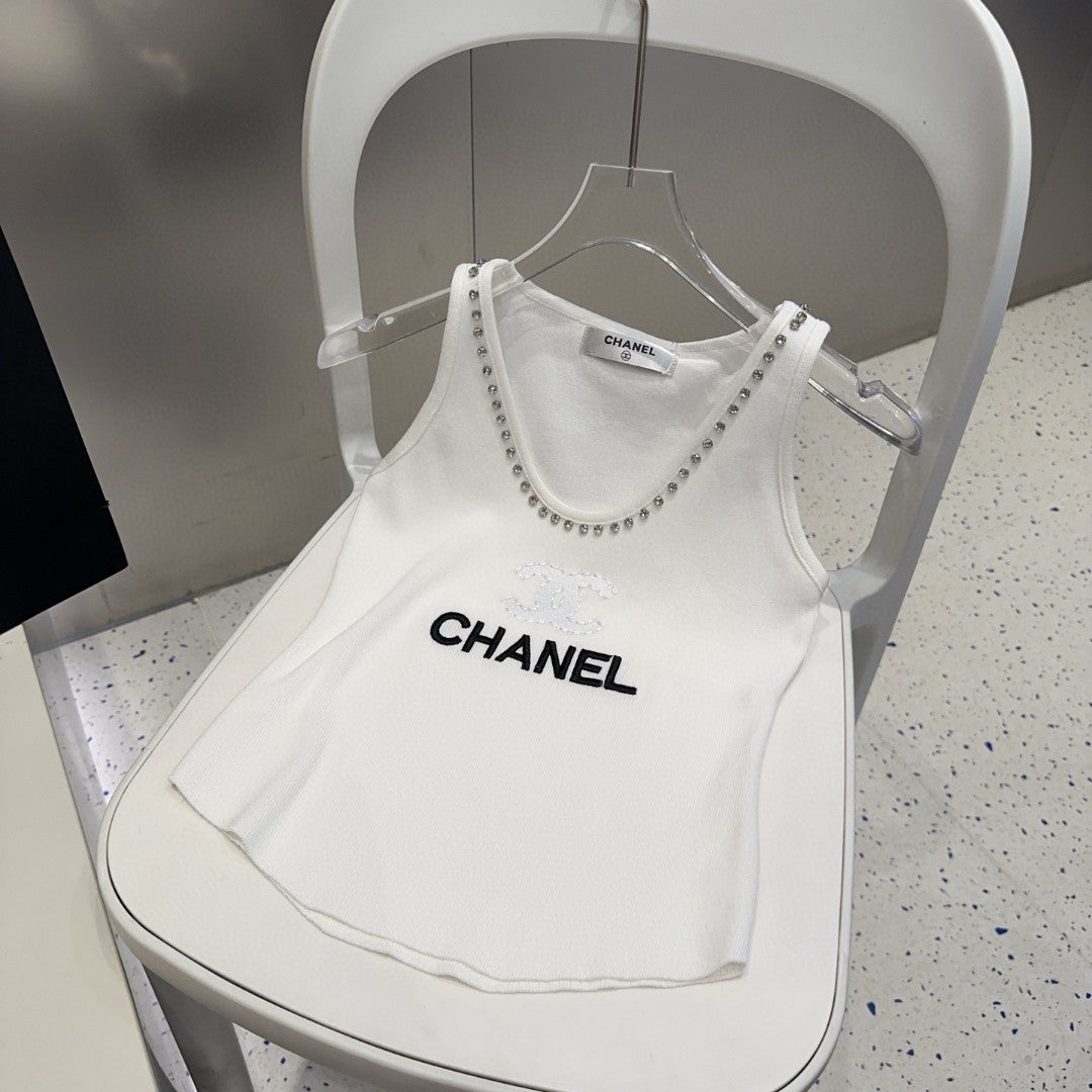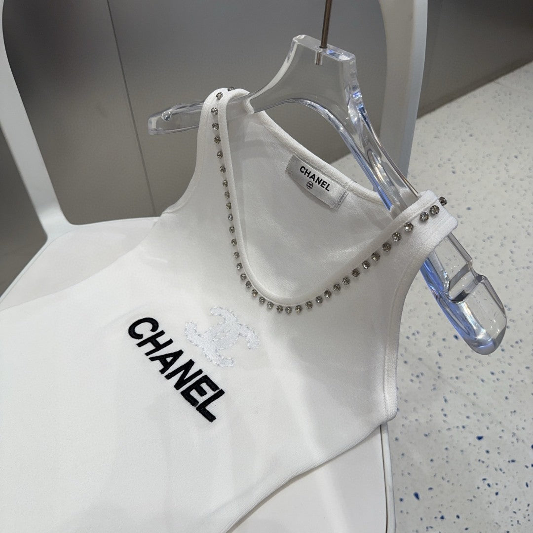 TANK TOP 640622 IN WHITE COTTON CRYSTAL ON TRIM