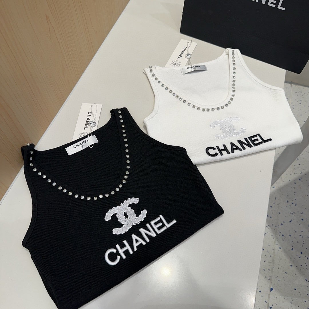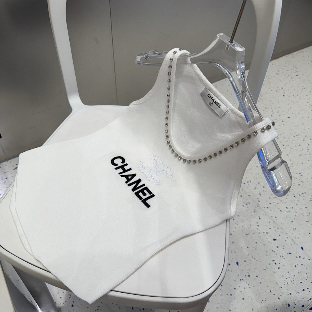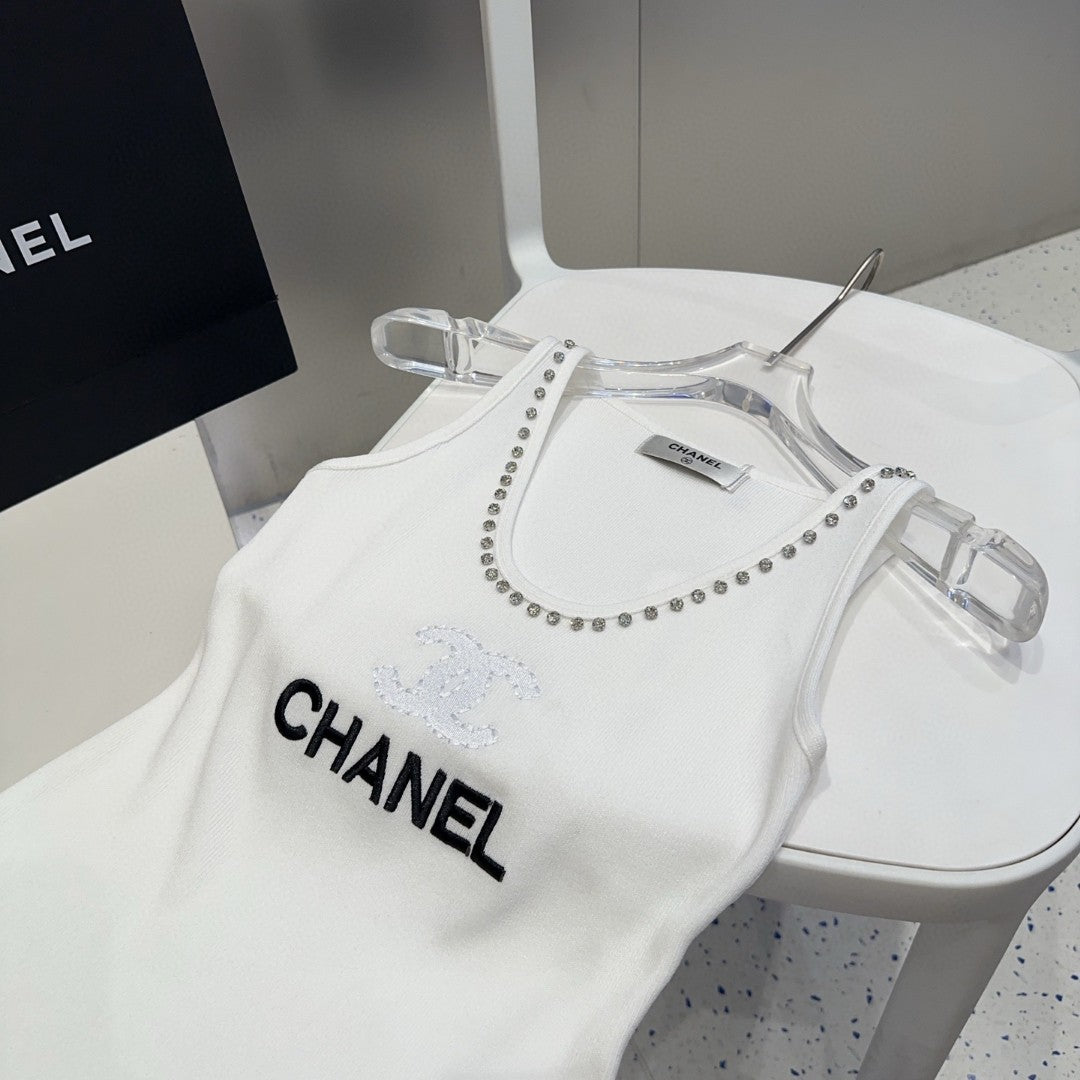 TANK TOP 640622 IN WHITE COTTON CRYSTAL ON TRIM
