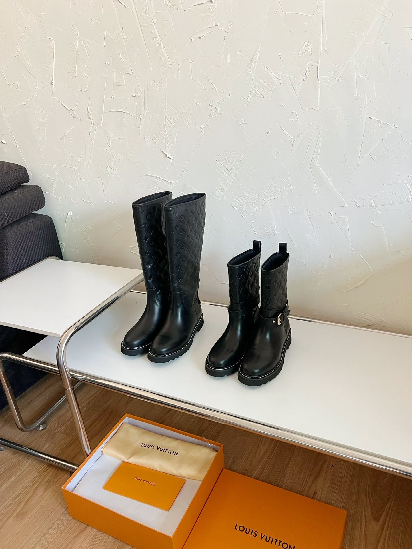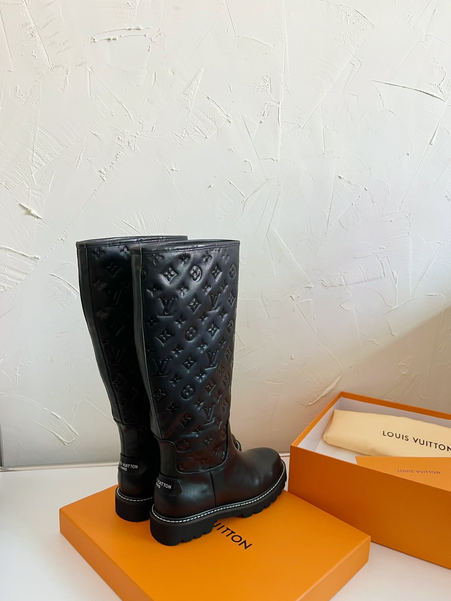 TERRITORY FLAT HIGH BOOT IN BLACK EMBOSSED CALFSKIN