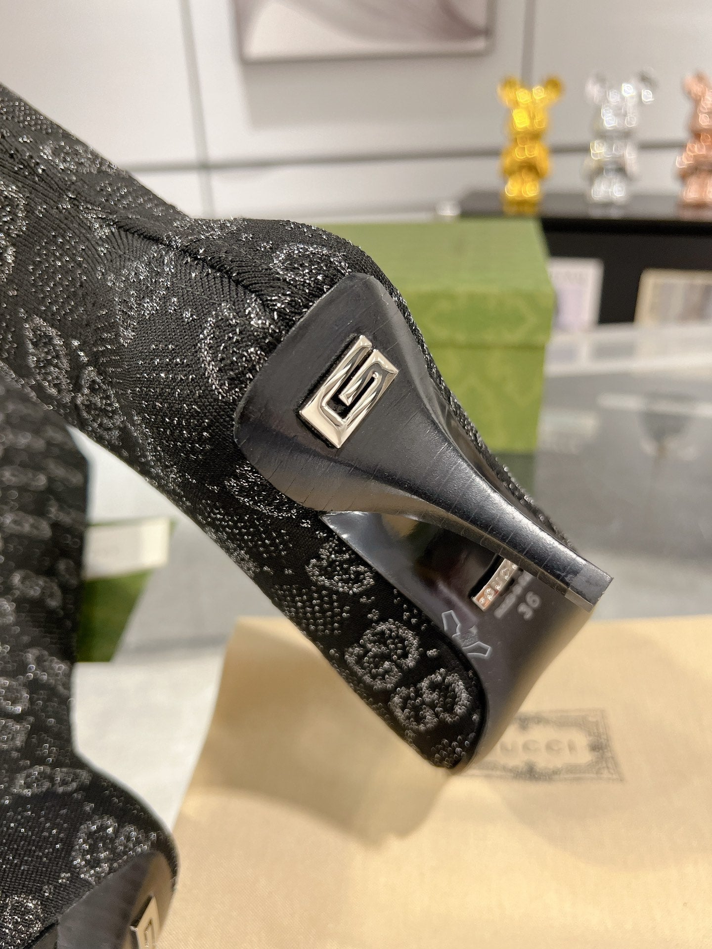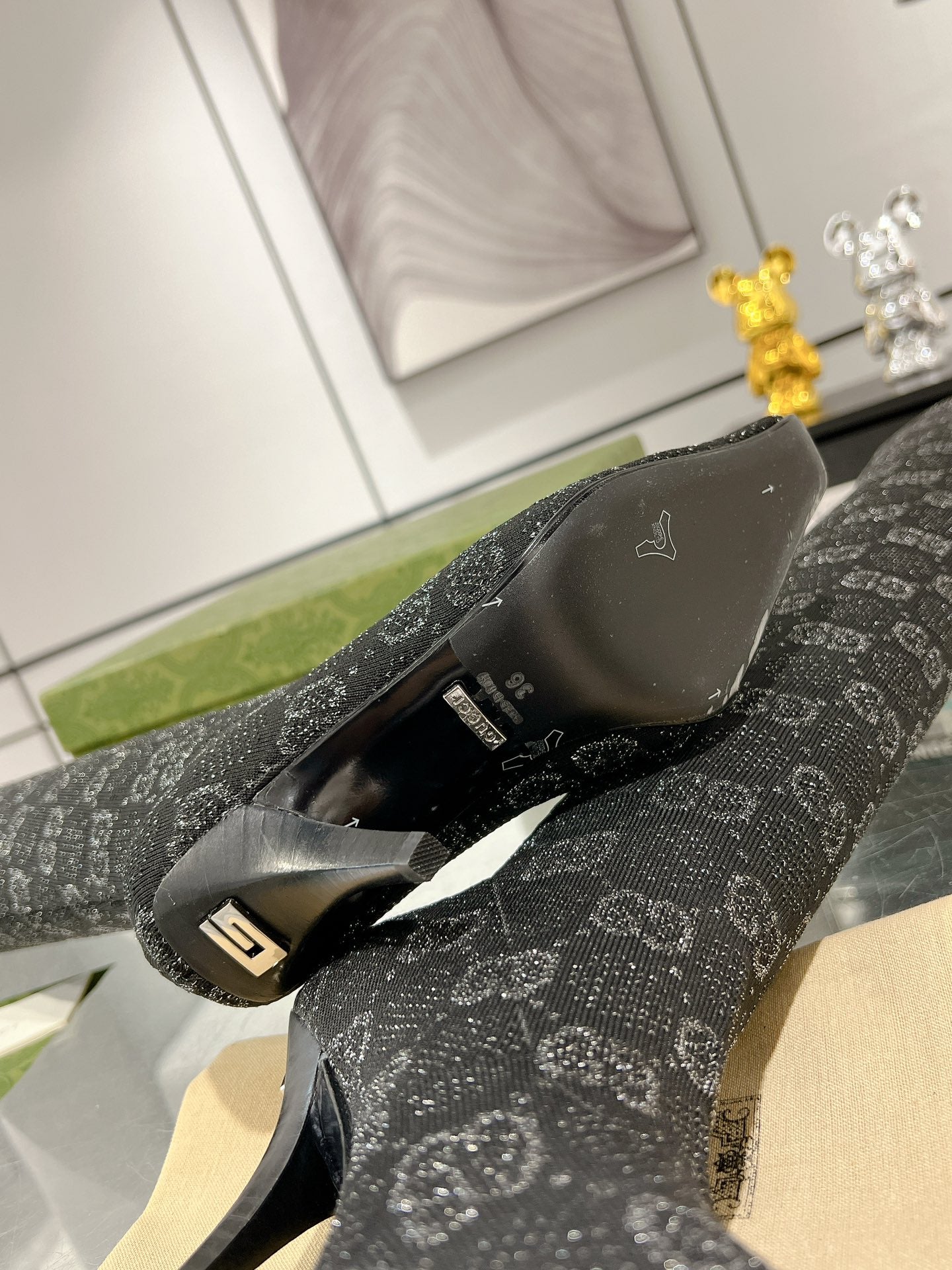 THIGH HIGH BOOTS IN BLACK KNITTED FABRIC
