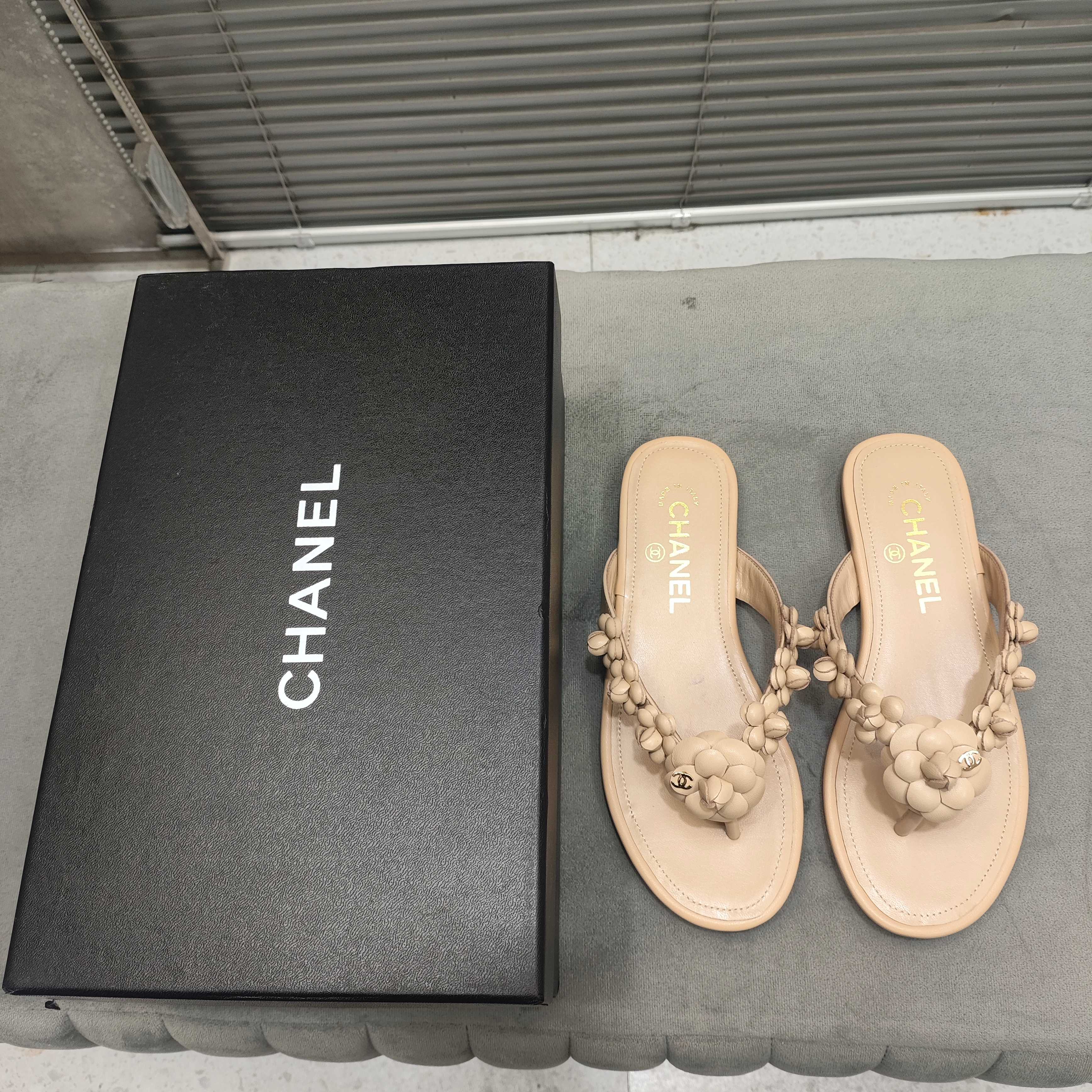 THONG SLIPPERS CAMELLIA IN BEIGE CALFSKIN