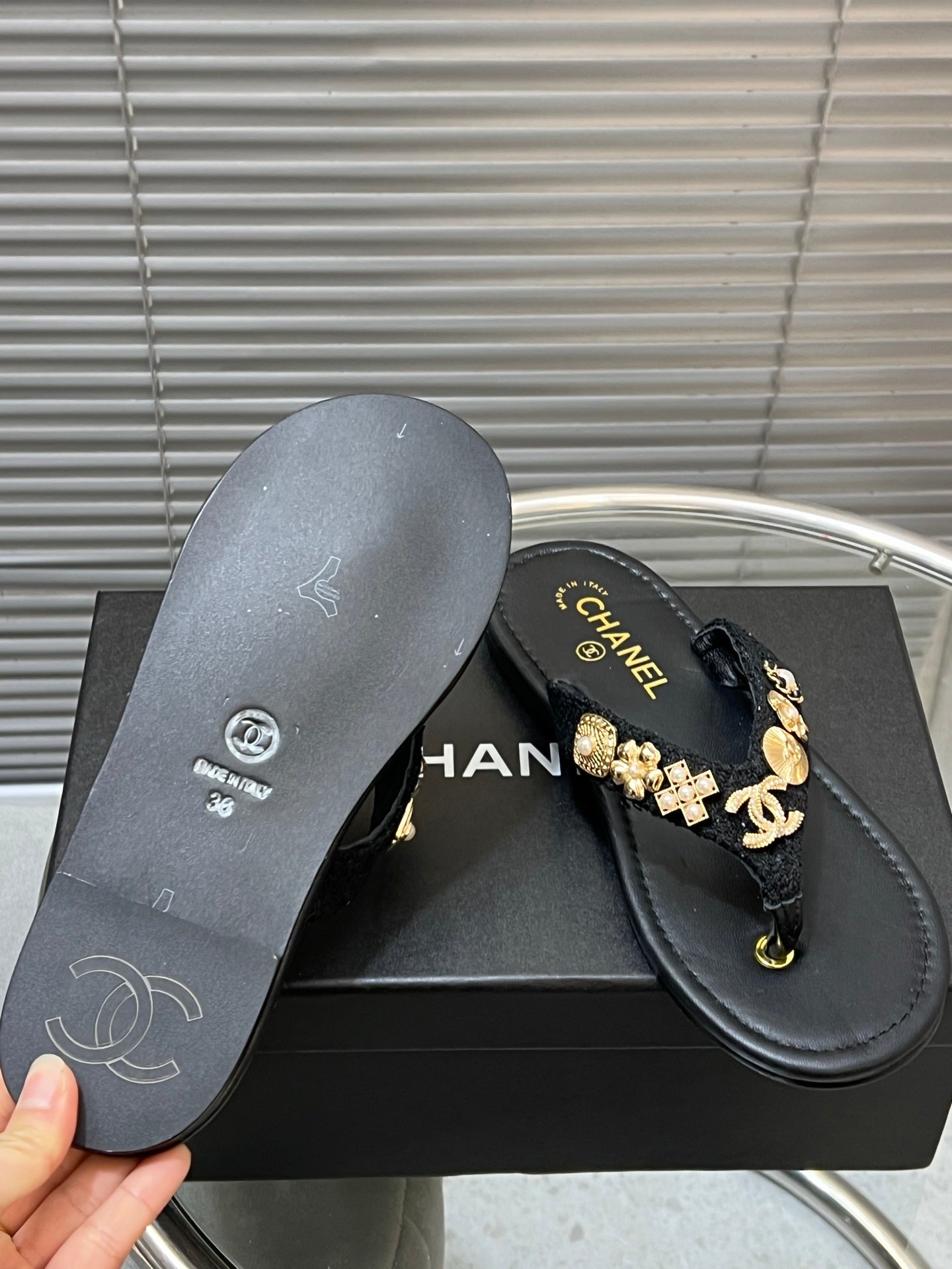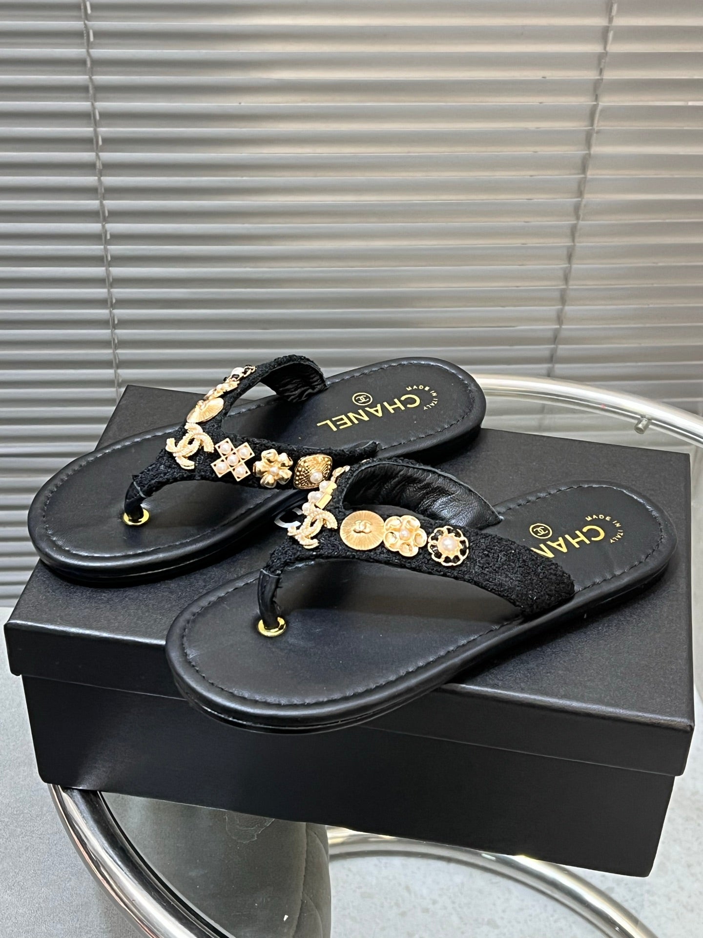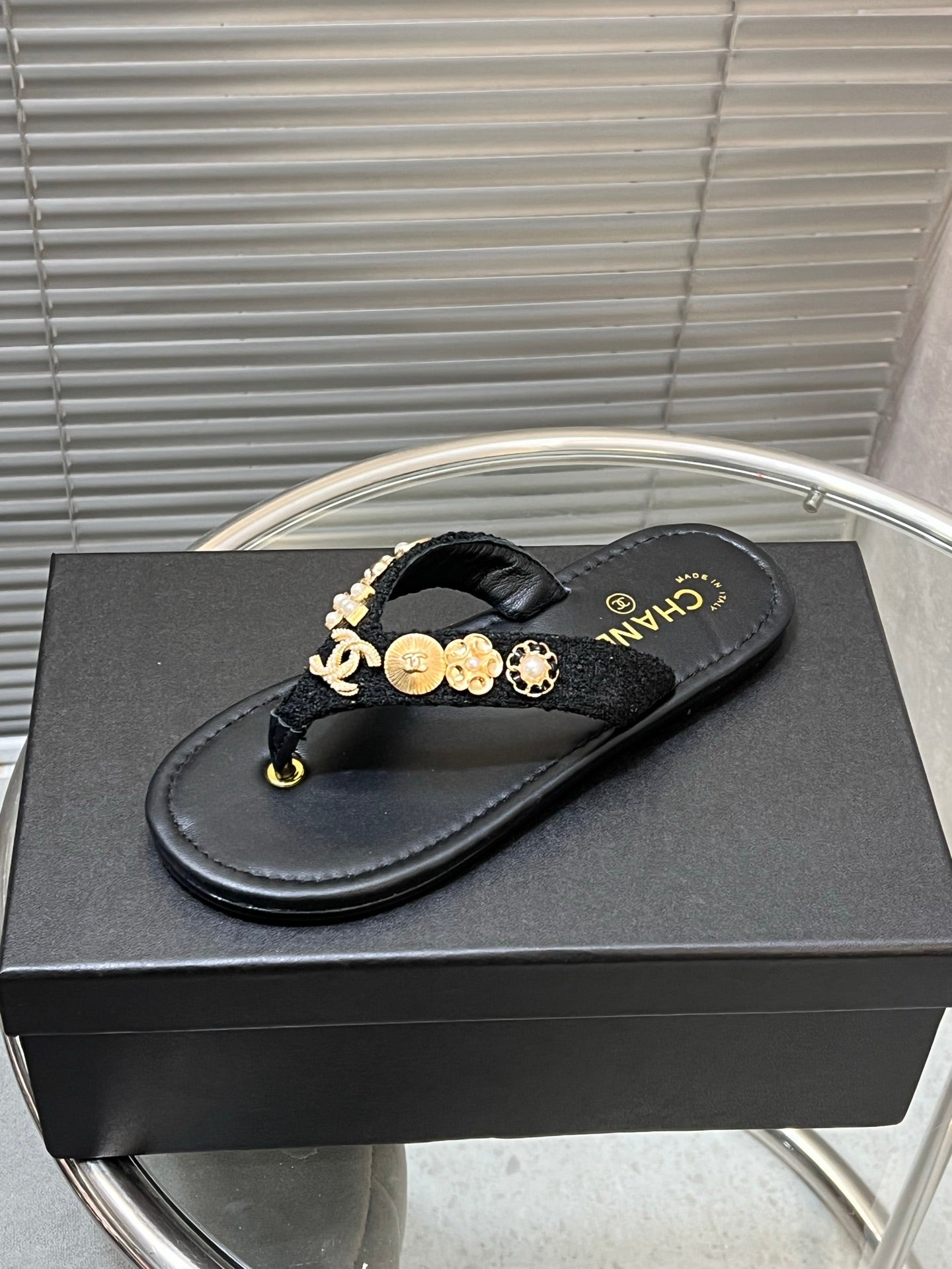 THONG SLIPPERS IN BLACK SOFT LEATHER WITH LOGO STICKER DETAIL
