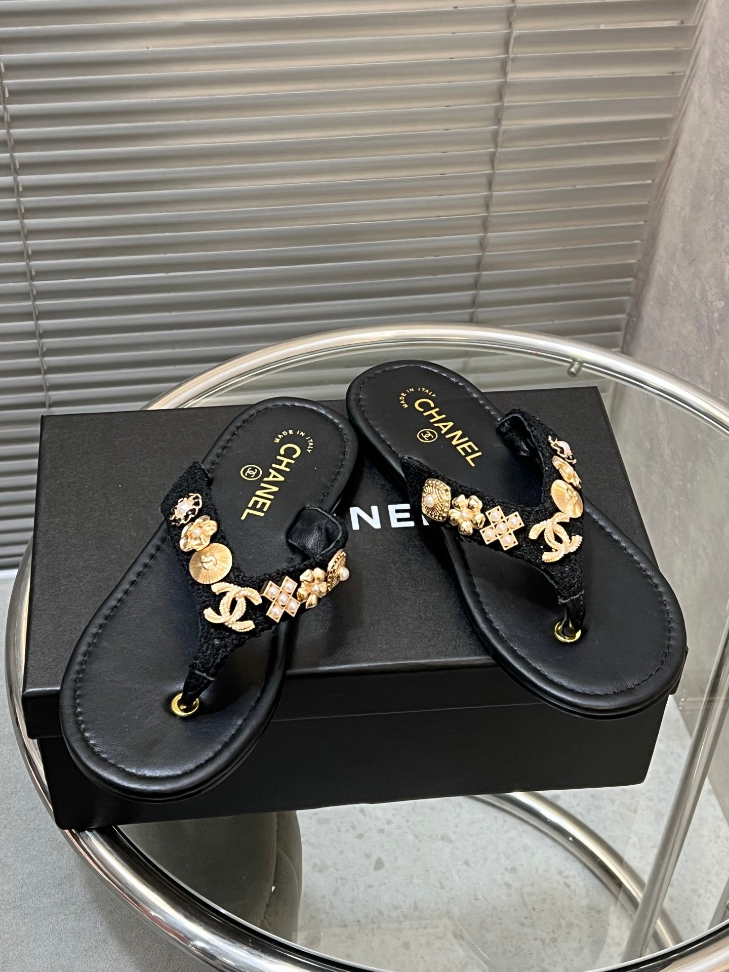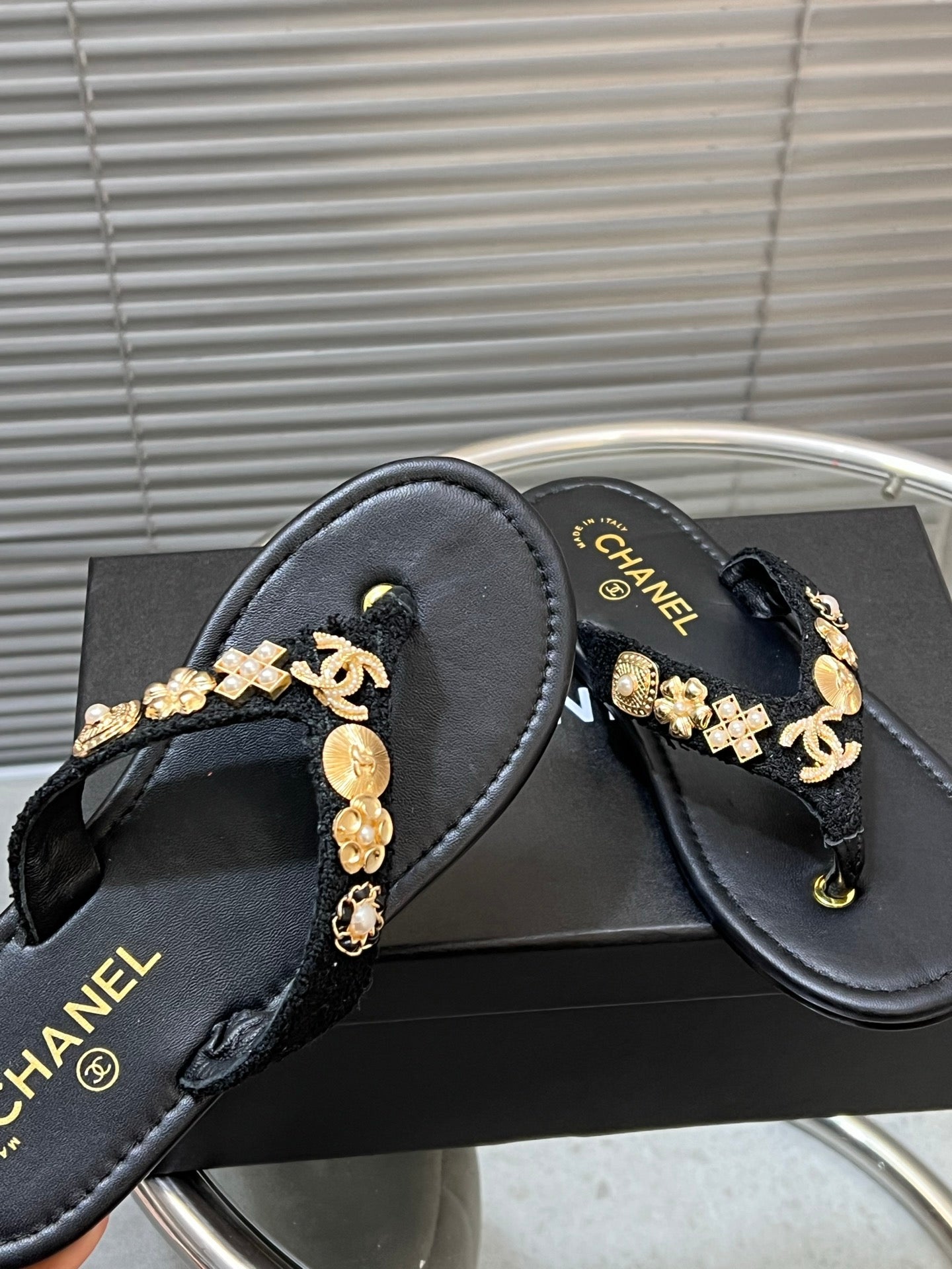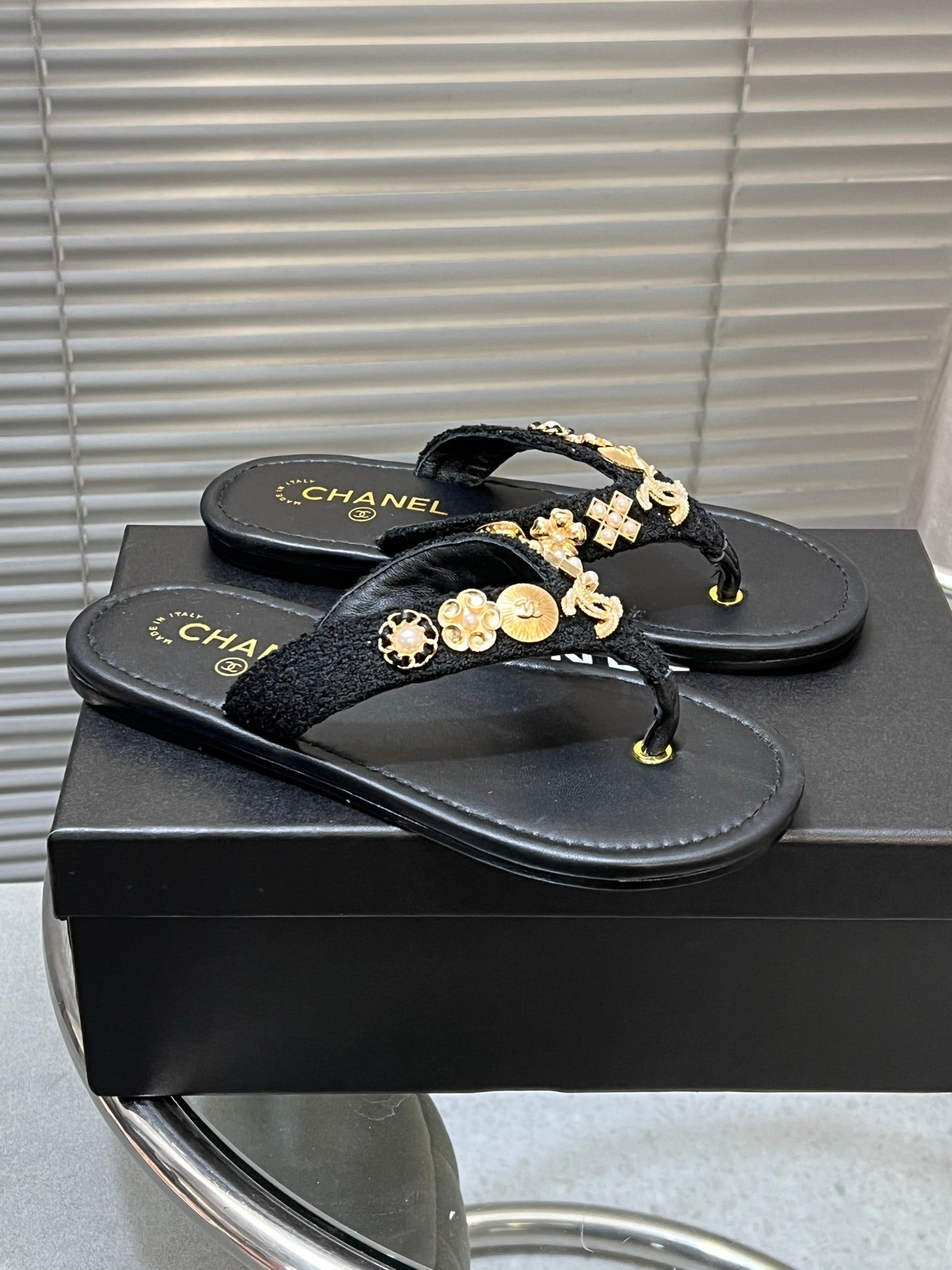 THONG SLIPPERS IN BLACK SOFT LEATHER WITH LOGO STICKER DETAIL