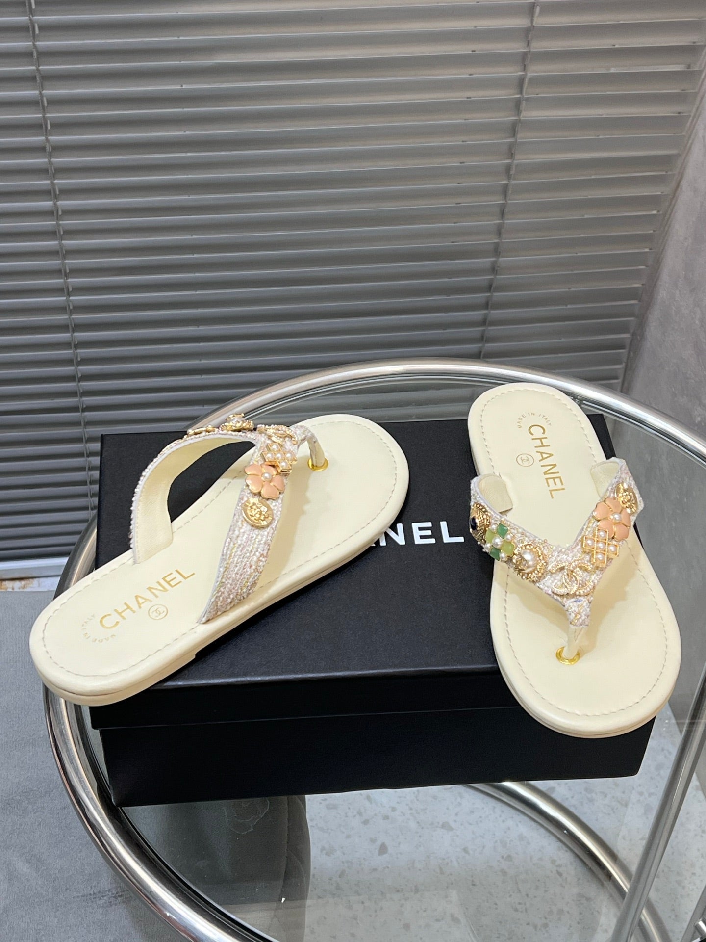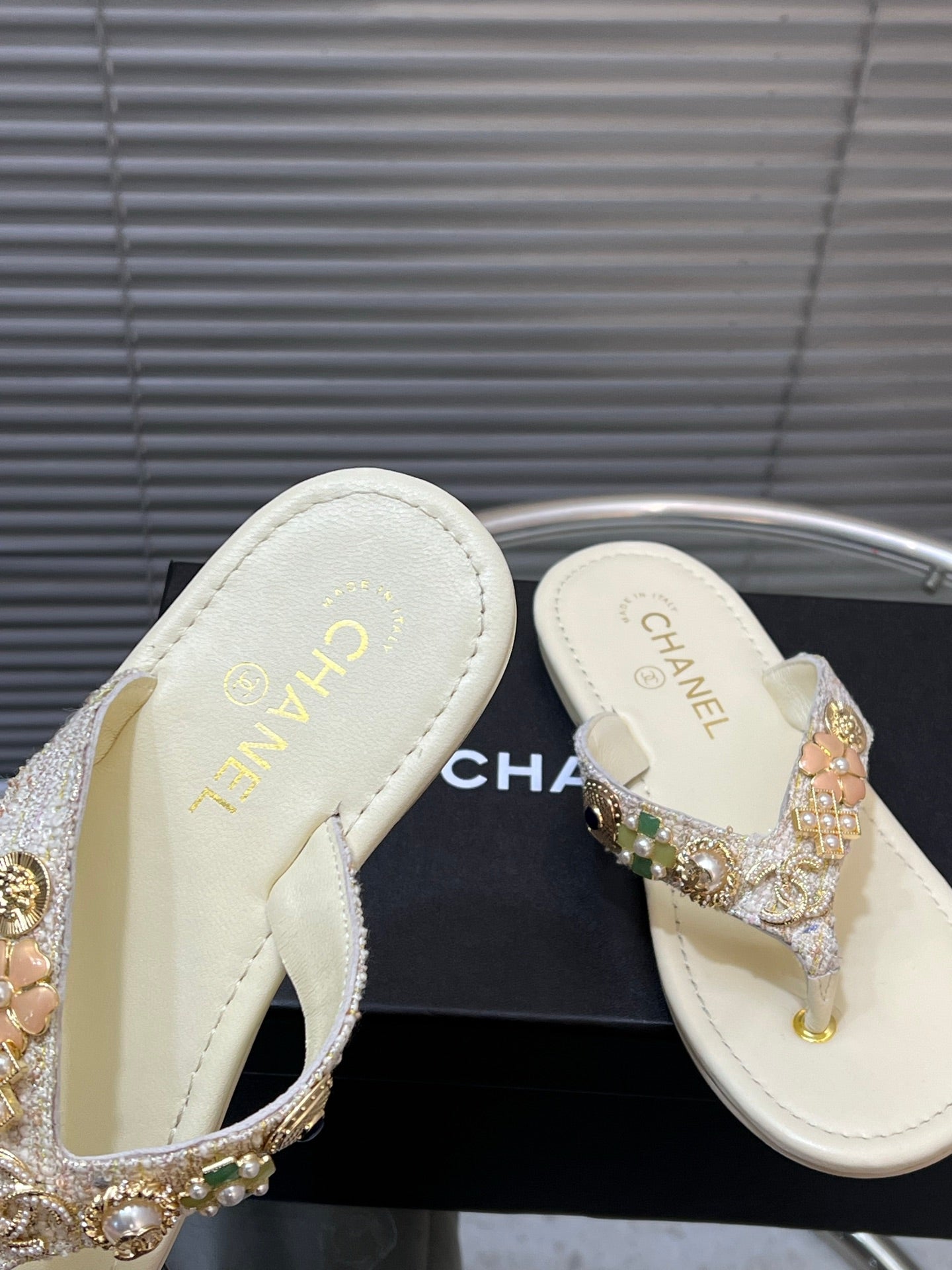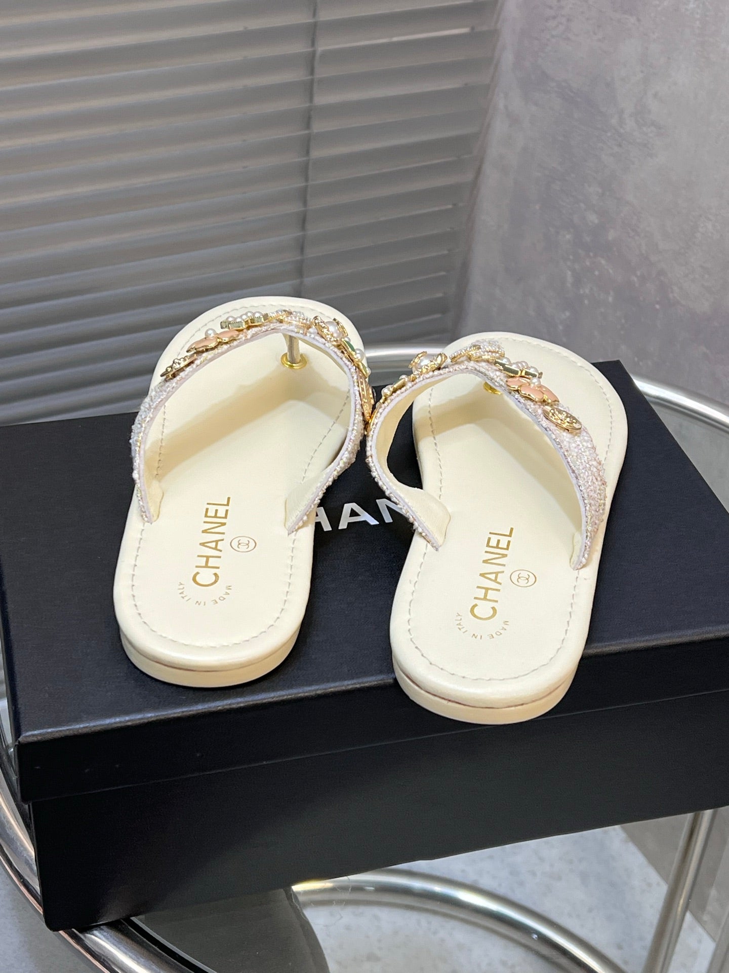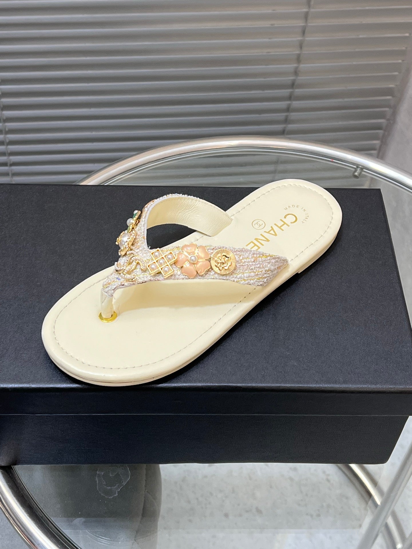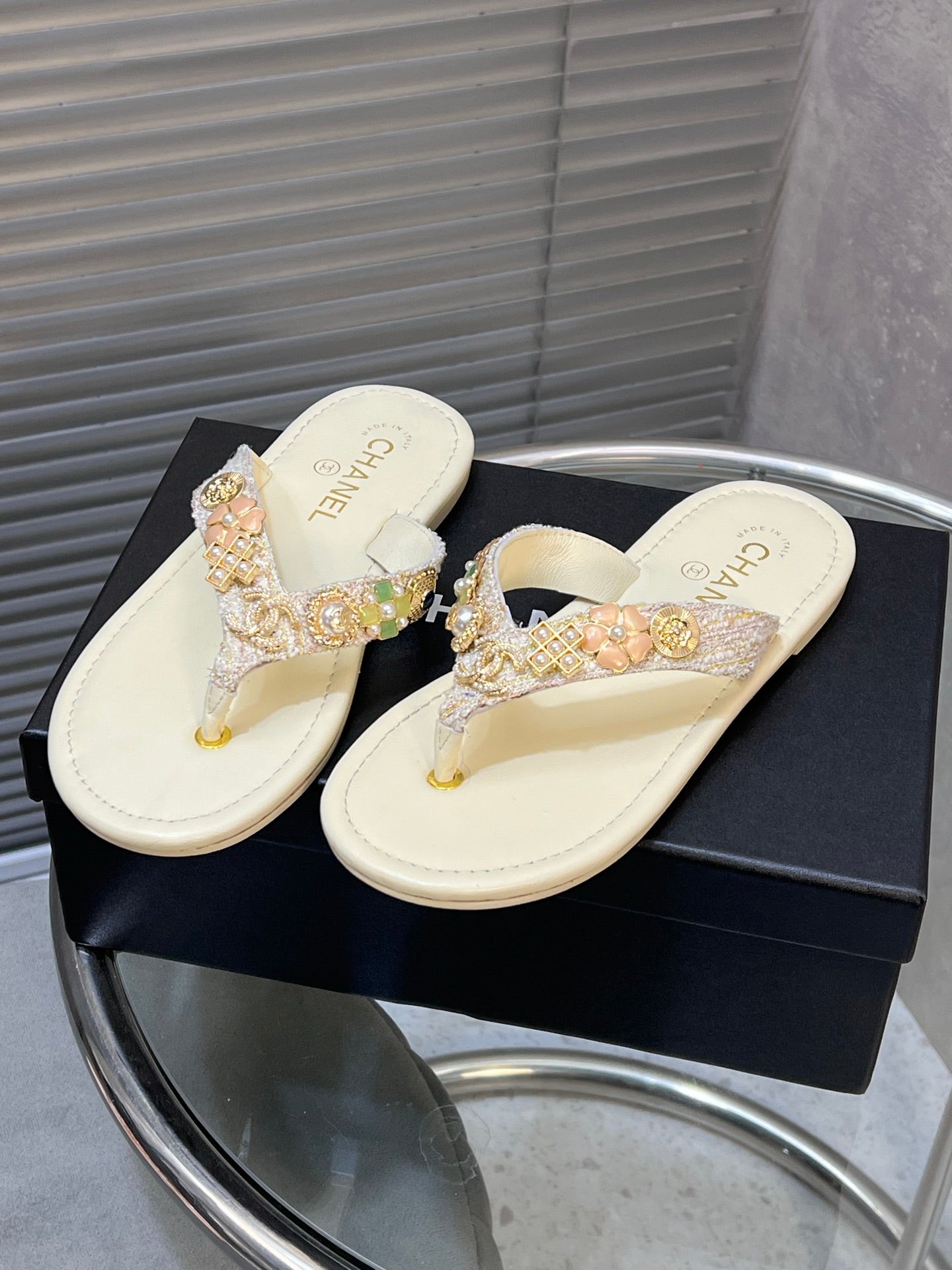 THONG SLIPPERS IN CREAM WHITE SOFT LEATHER WITH LOGO STICKER DETAIL