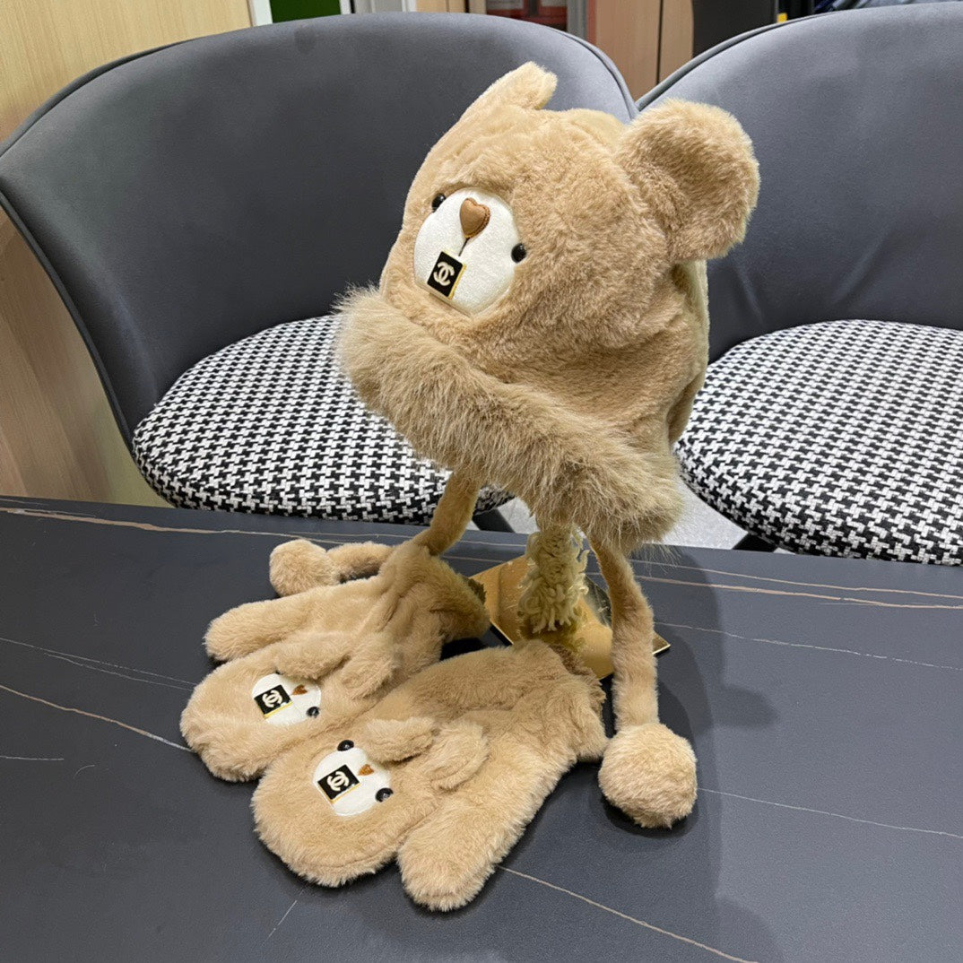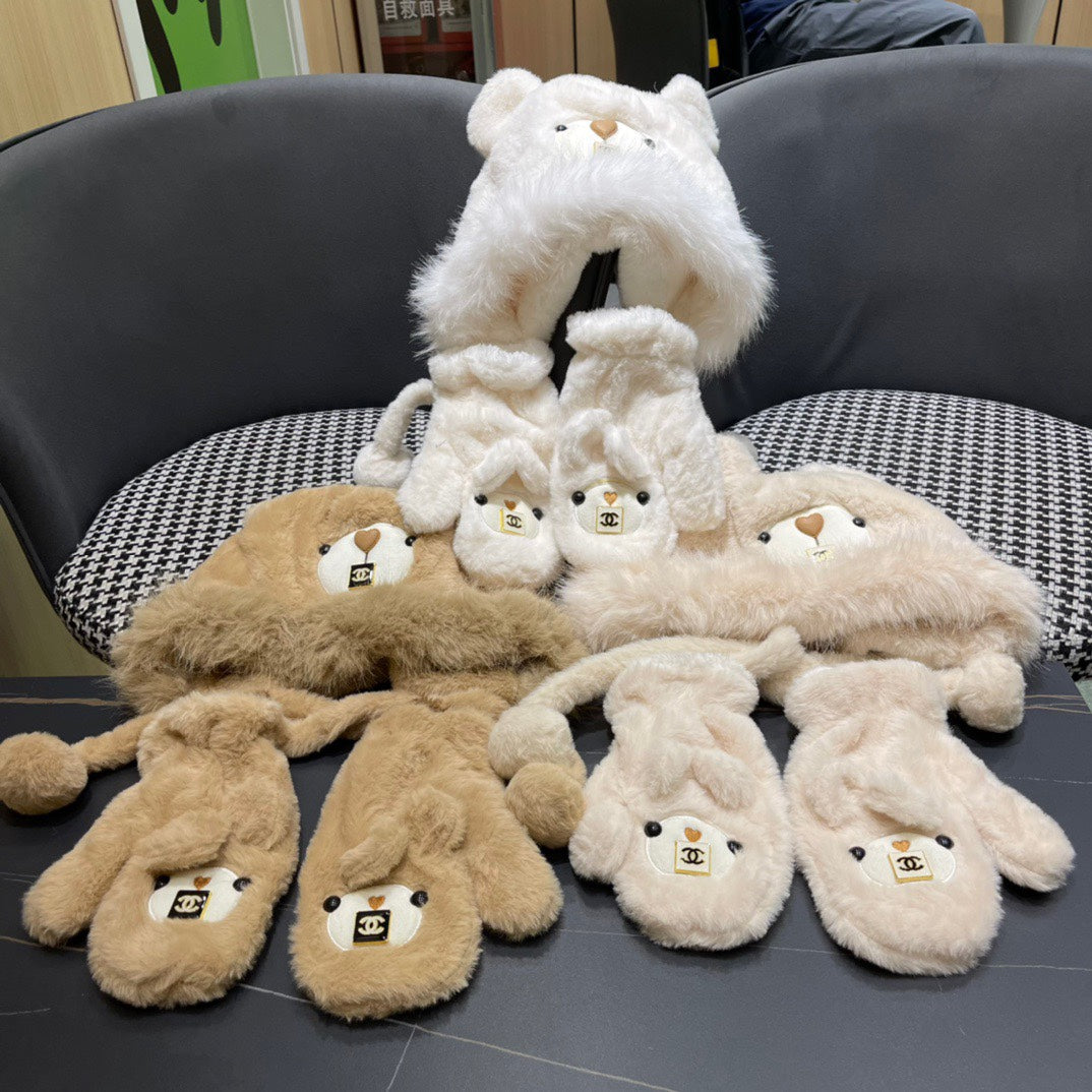 • Three-Piece Set for women, featuring a cute bear-shaped plush hood, scarf, and gloves, ideal for autumn and winter.