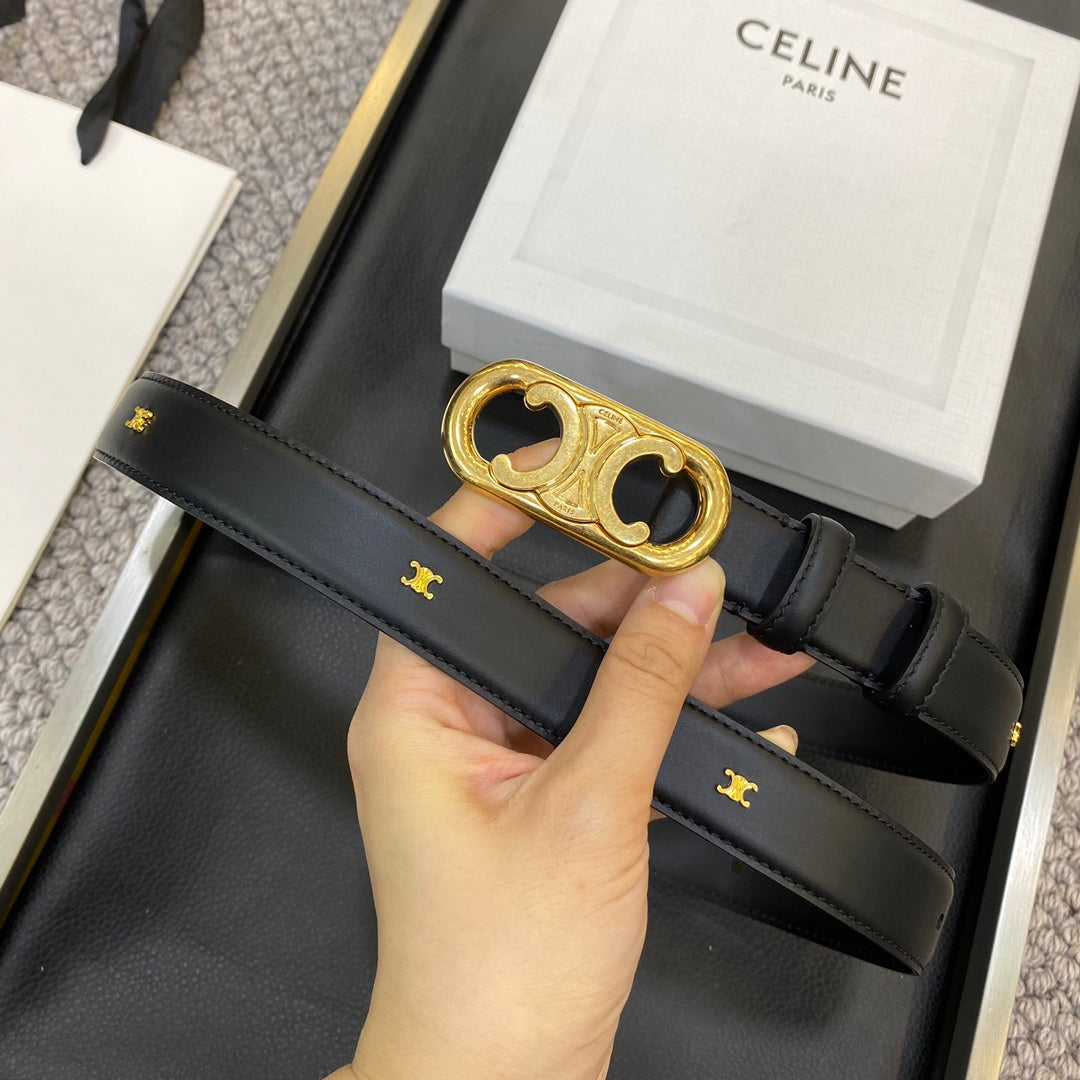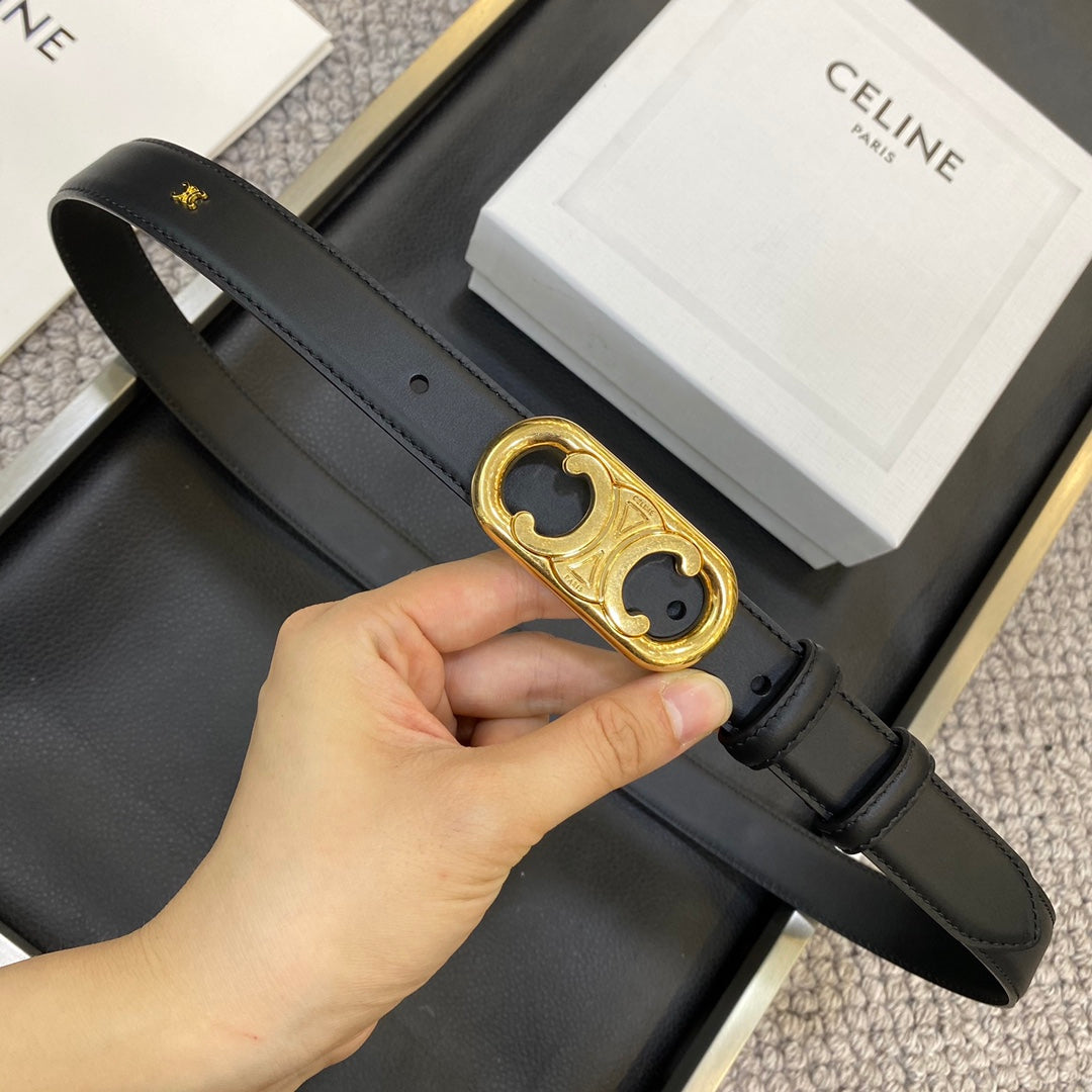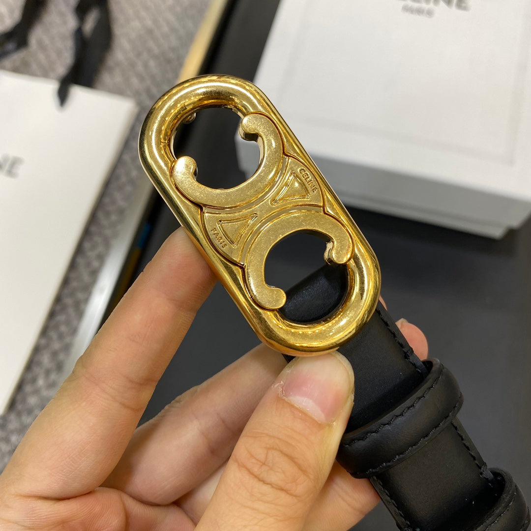 TRIOMPHE BELT 25MM IN BLACK CALFSKIN OVAL BUCKLE AND ENGRAVED LOGO