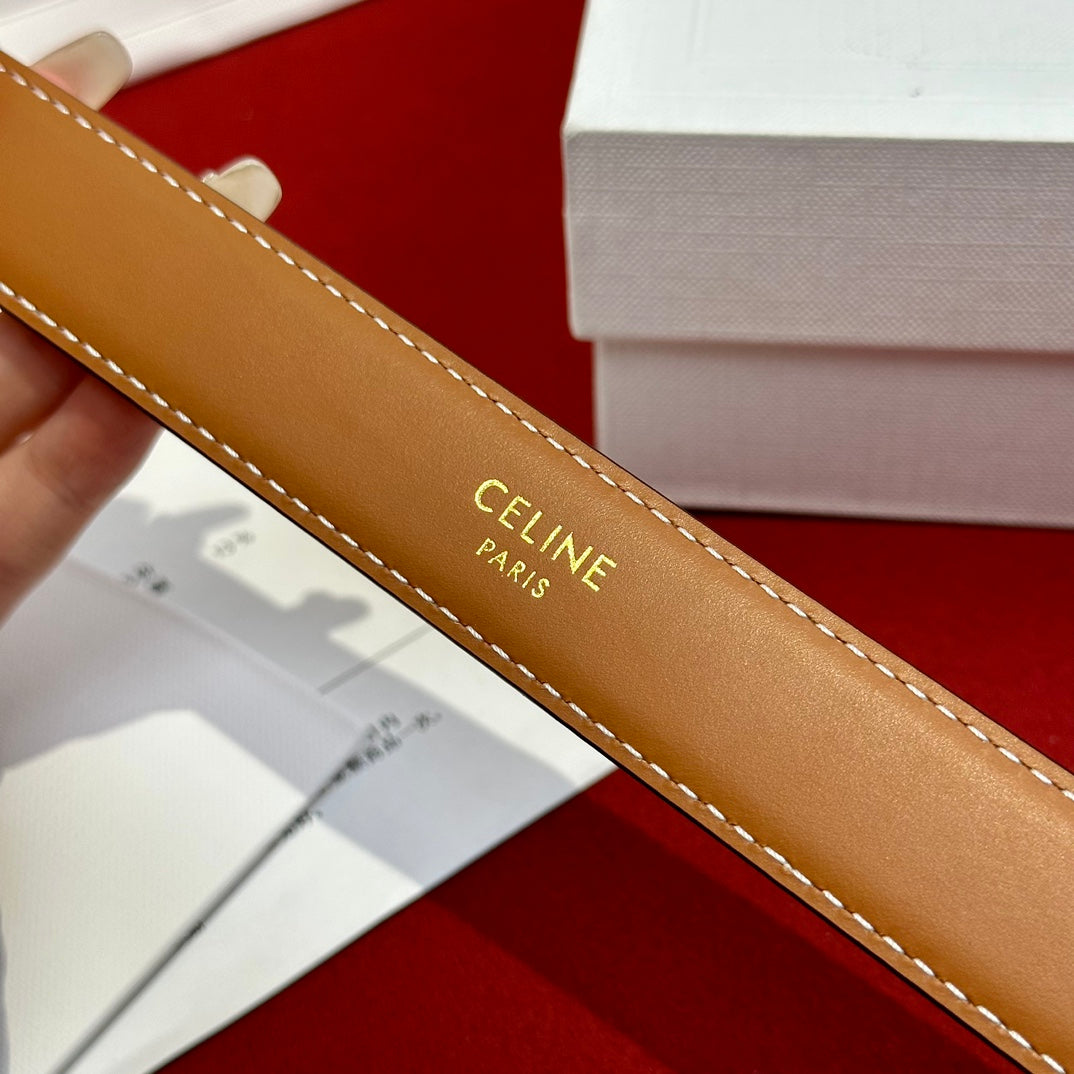 TRIOMPHE BELT 25MM REVERSIBLE IN WHITE LOGO-PRINT AND BROWN CALFSKIN WITH GOLD BUCKLE