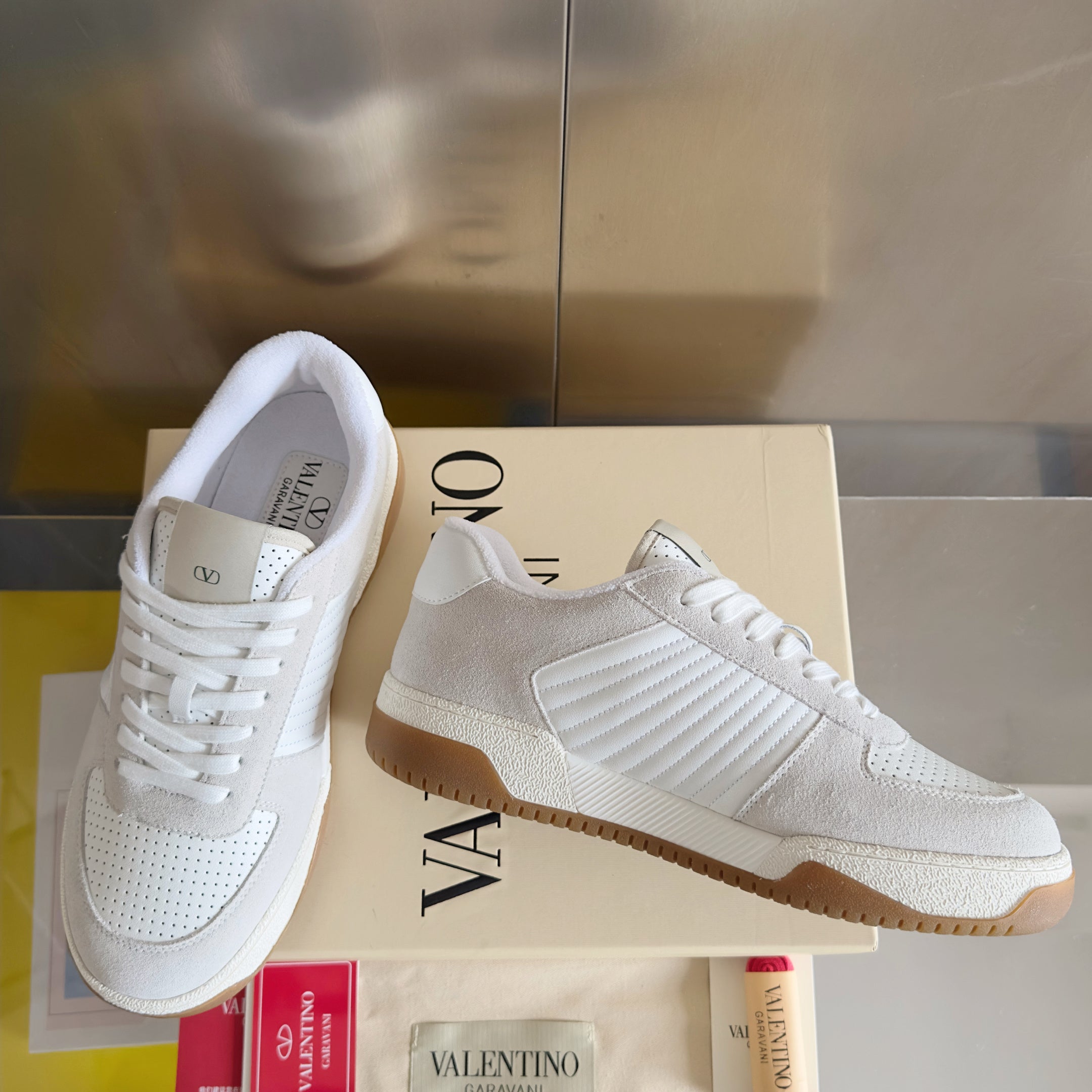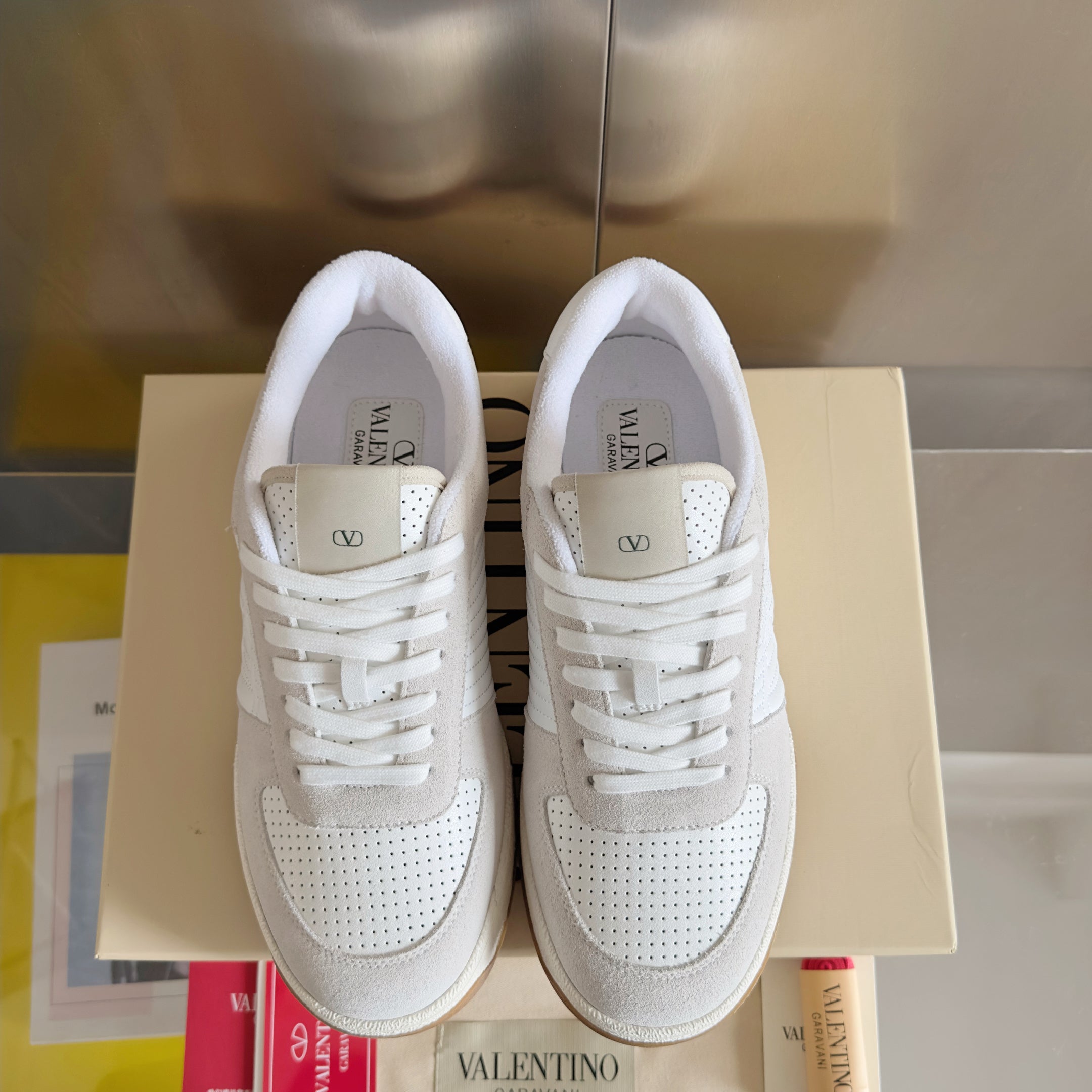 VALENTINO 25S GARAVANI FREEDOTS SNEAKERS IN BEIGE SUEDE AND WHITE LAMBSKIN