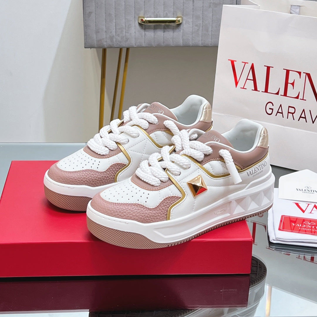 VALENTINO 25S GARAVANI ONE STUD XL PLATFORM SNEAKERS IN WHITE MIX LIGHT PINK LAMBSKIN