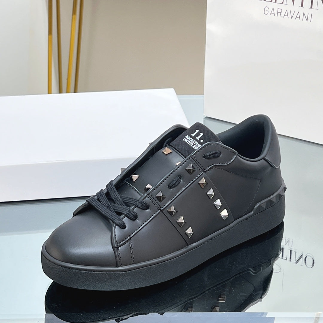 VALENTINO 25S GARAVANI ROCKSTUD UNTITLED STUDDED SNEAKERS IN BLACK LAMBSKIN