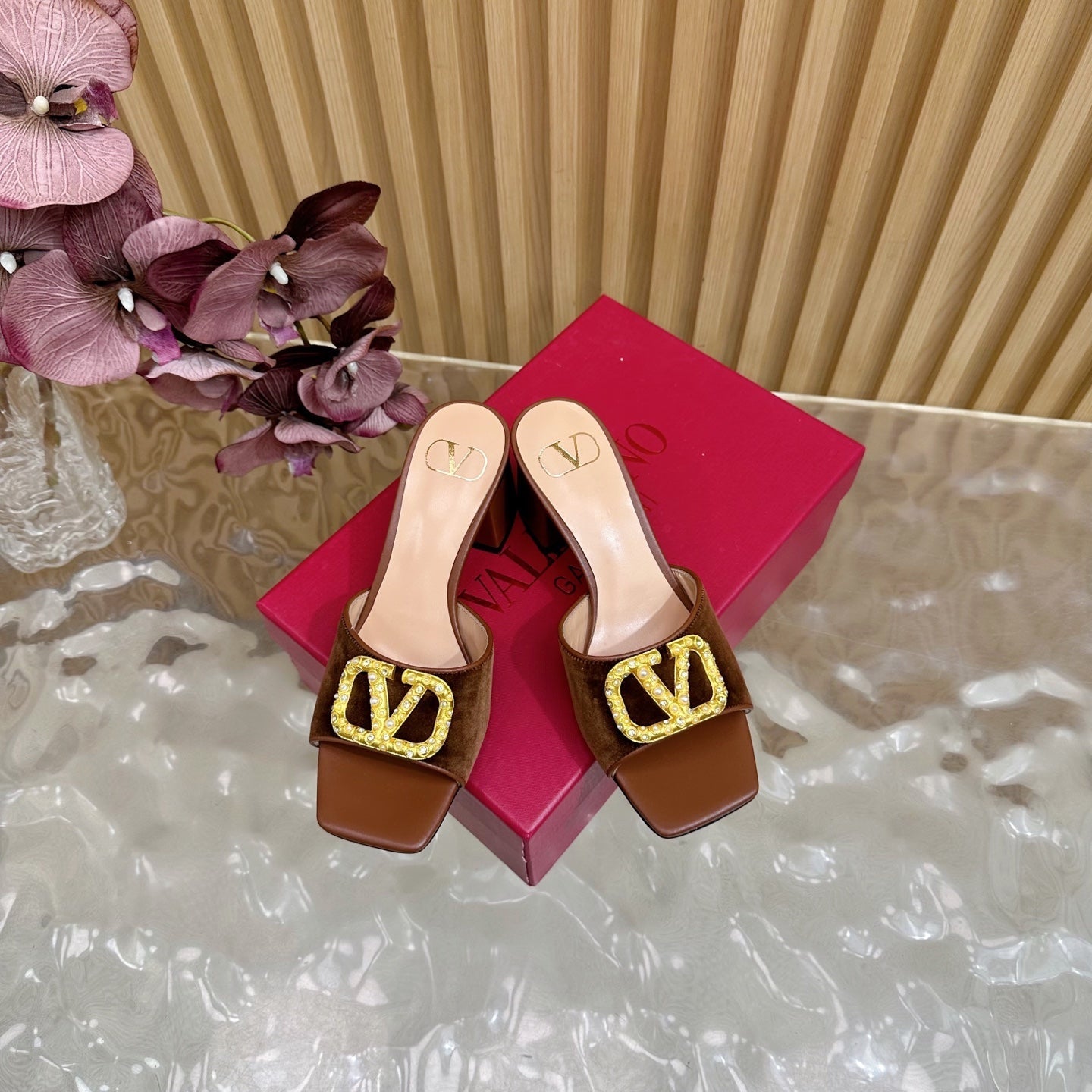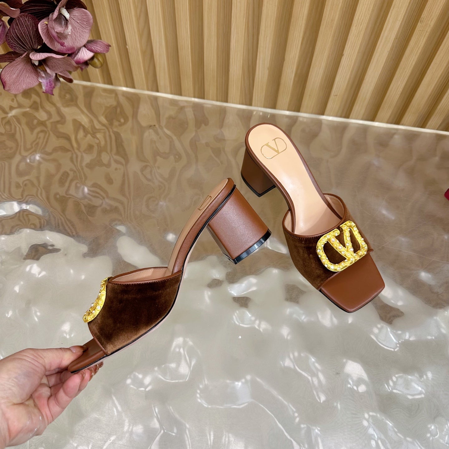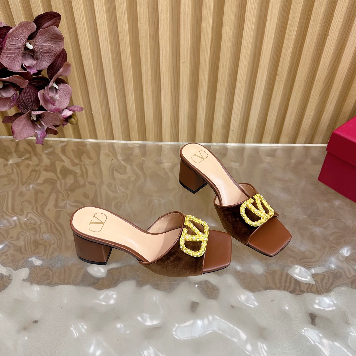 VALENTINO 25S HIGH-HEEL MULES 60 MM IN BROWN VELVET AND CALFSKIN WITH GOLD HARDWARE