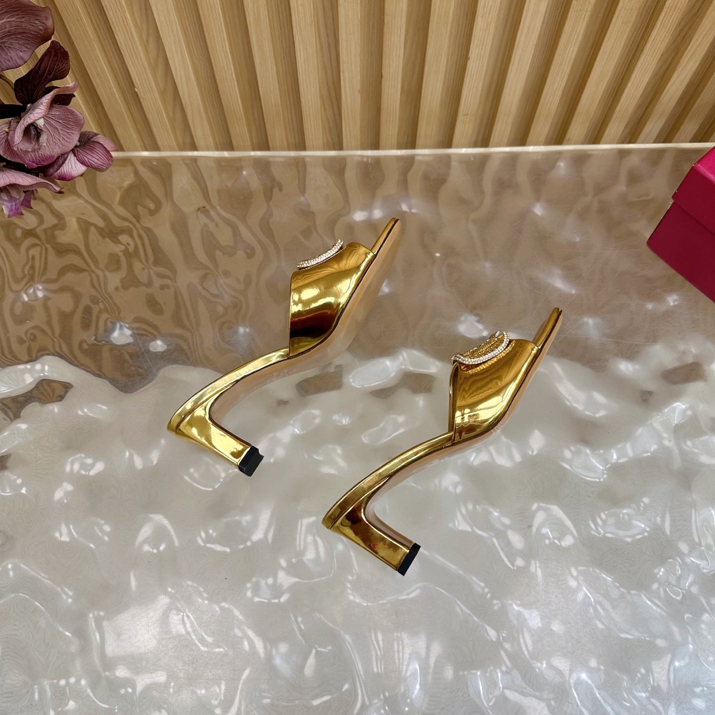 VALENTINO 25S HIGH-HEEL MULES 60 MM IN GOLD PATENT CALFSKIN WITH CRYSTAL-EMBELLISHED STRAP
