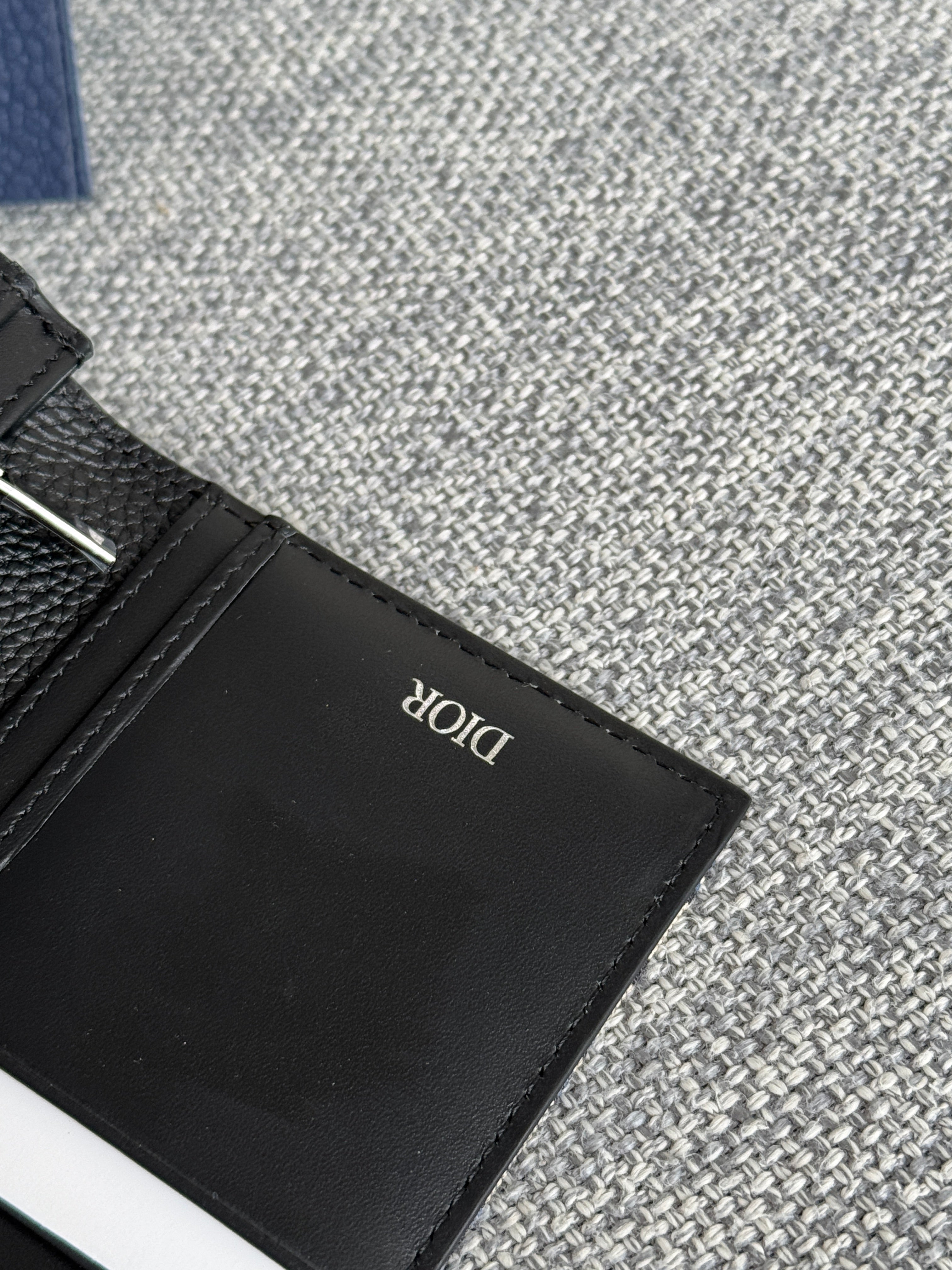 VERTICAL BIFOLD WALLET 19 IN BLACK GRAINED CALFSKIN MIX BLUE MONOGRAM OBLIQUE JACQUARD