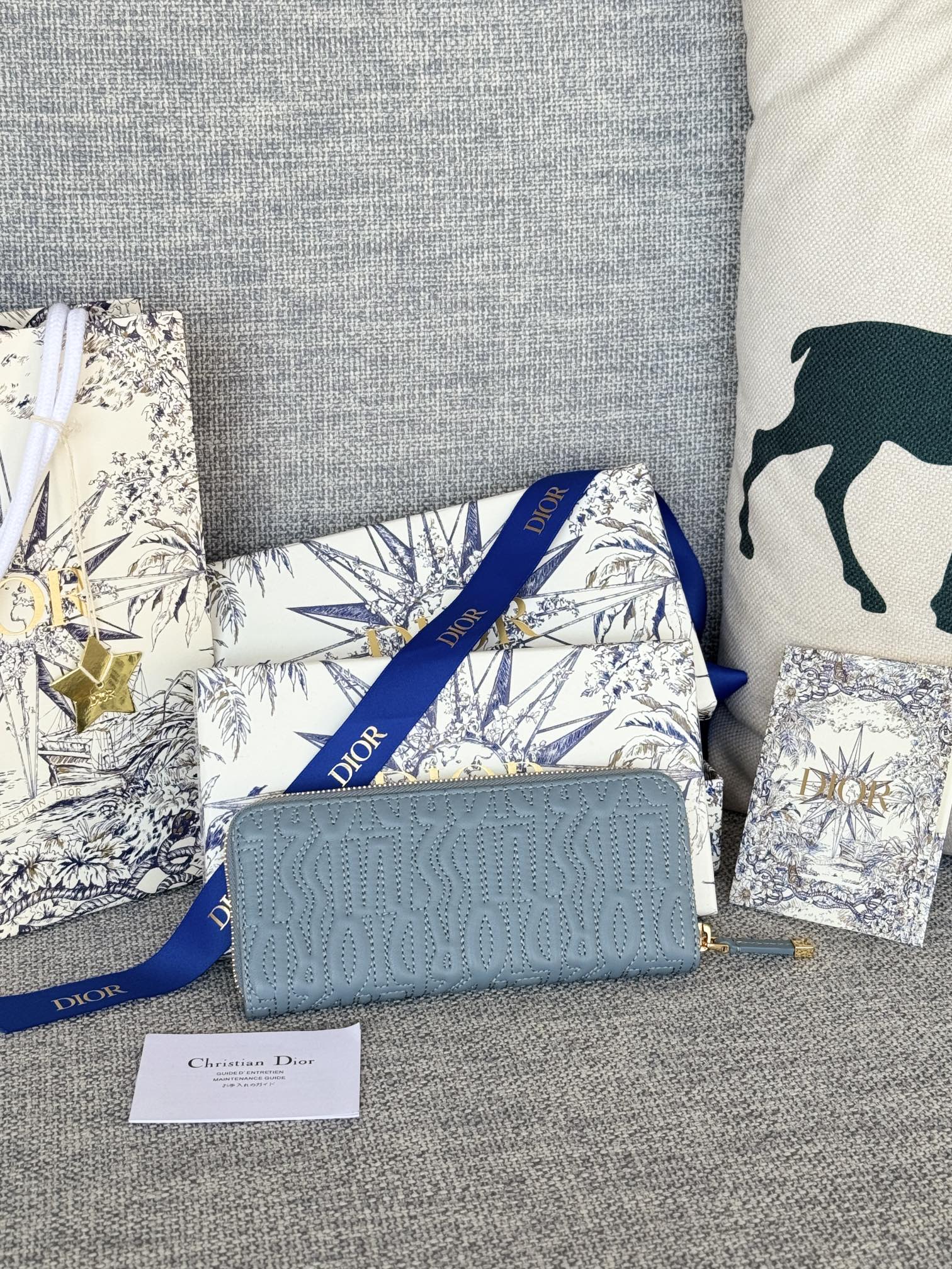 VERTICAL LONG ZIP WALLET 20 IN BABY BLUE QUILTED ALLOVER CALFSKIN