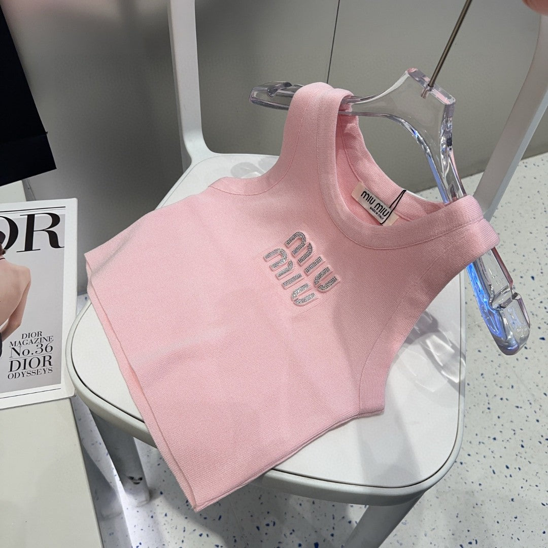VISCOSE TANK TOP 643229 IN PINK COTTON RIBBED KNIT WITH EMBELLISHED LOGO