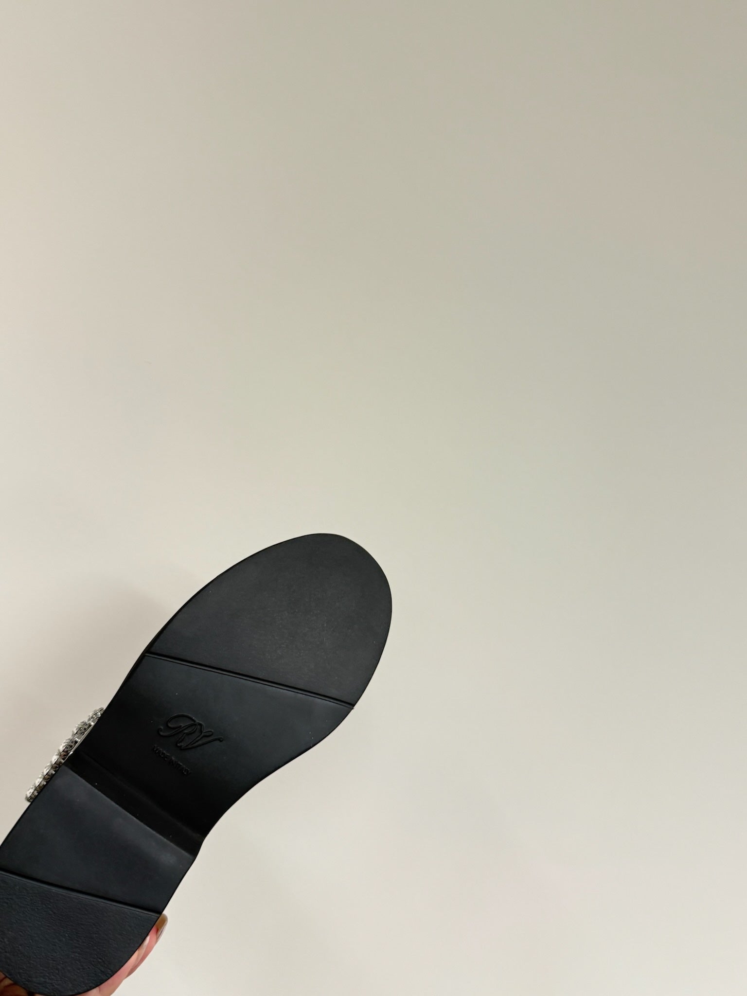 VIV' RANGERS CHELSEA ANKLE BOOTS IN BLACK CALFSKIN WITH SILVER CRYSTAL BUCKLE